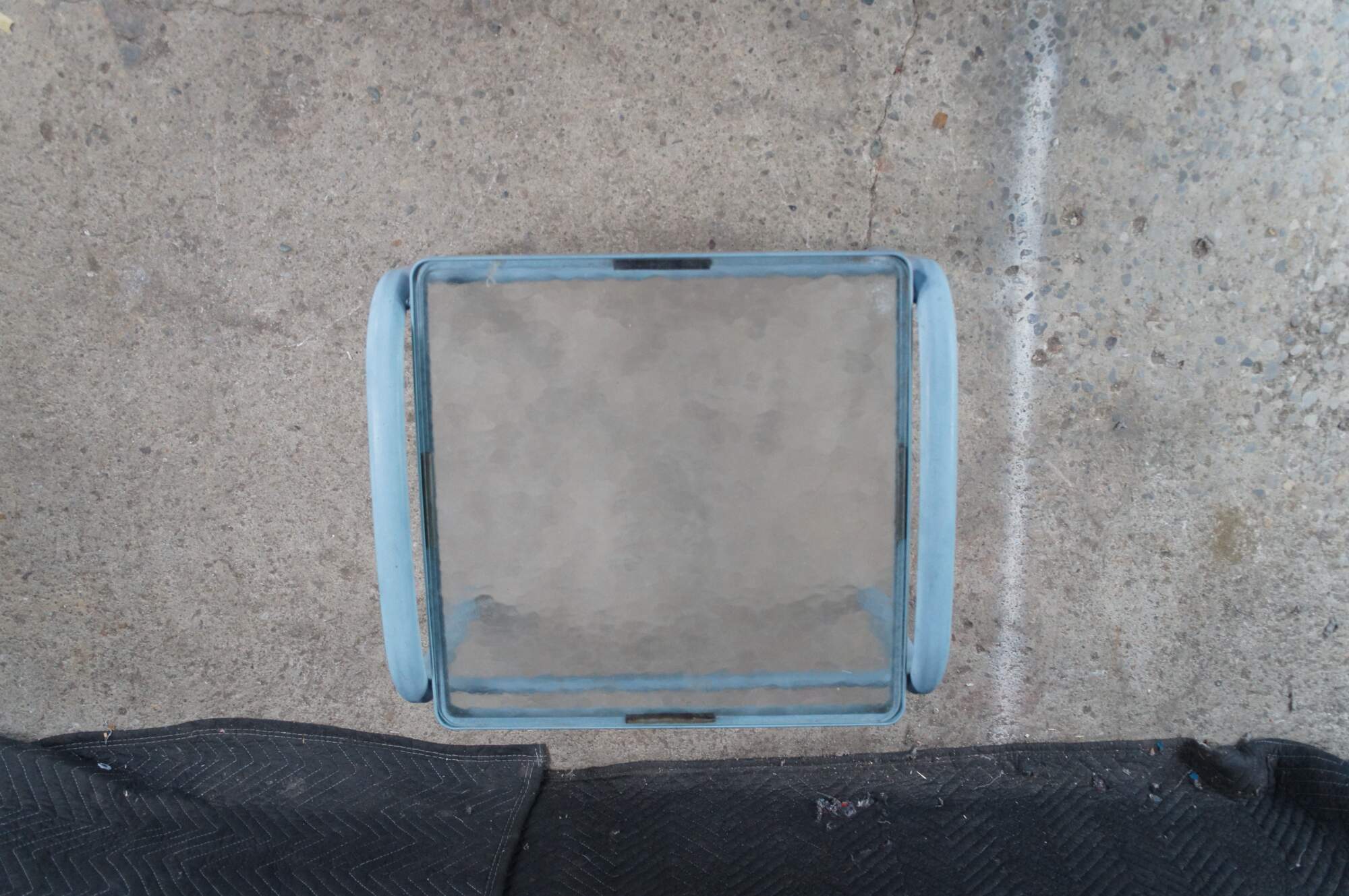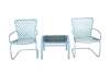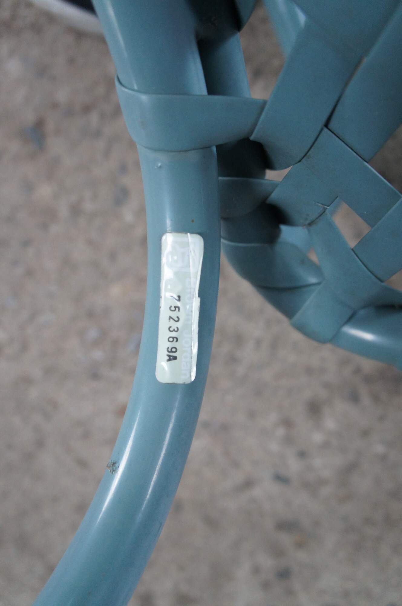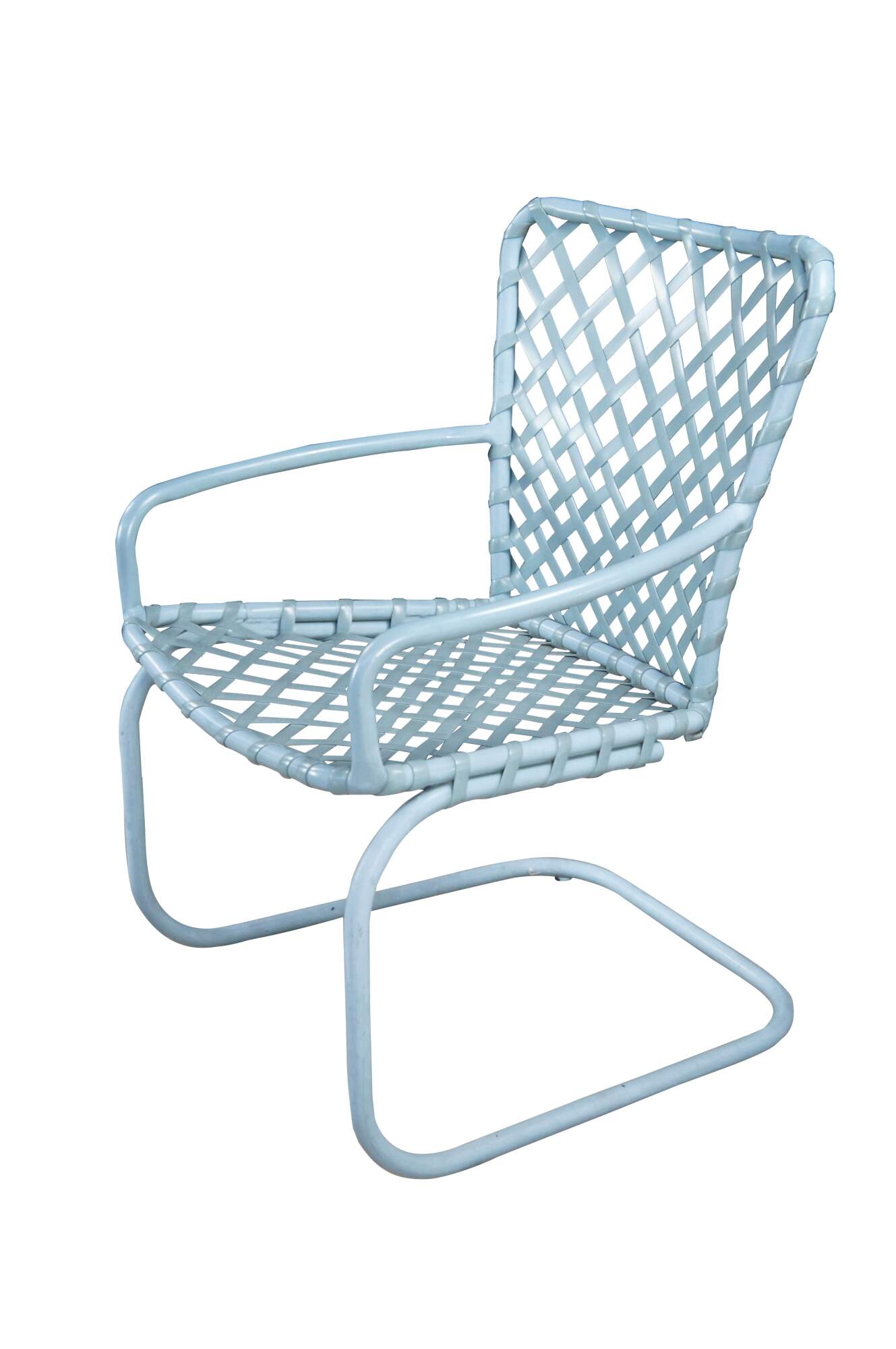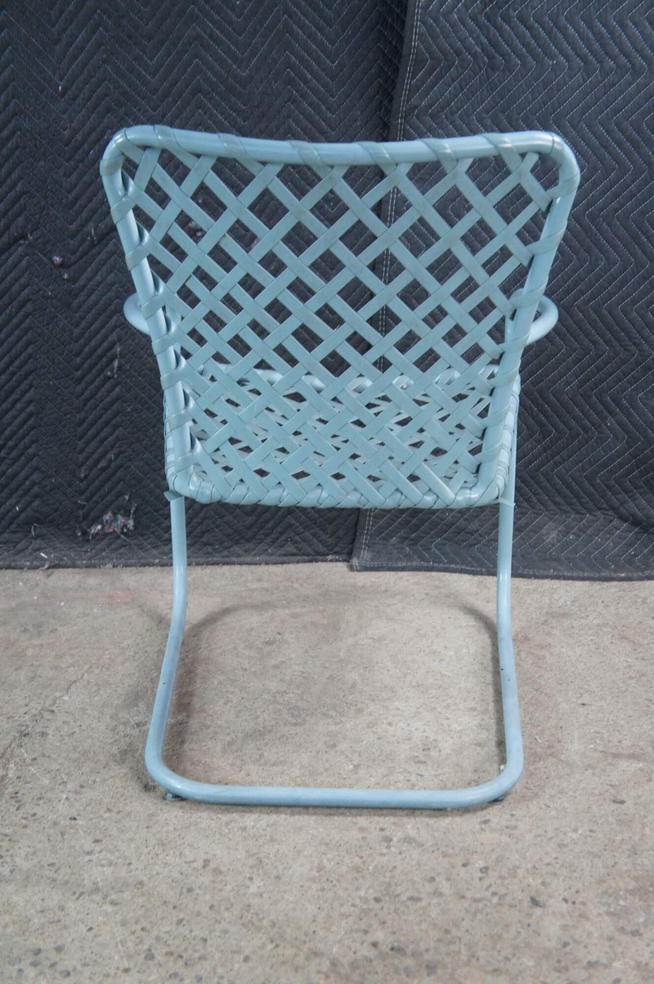Mid century modern Brown Jordan Tamiami outdoor patio / pool lounge set. Made with sturdy aluminum tube frames and original vinyl lace. Includes two arm chairs and side table with glass top. 752369A.