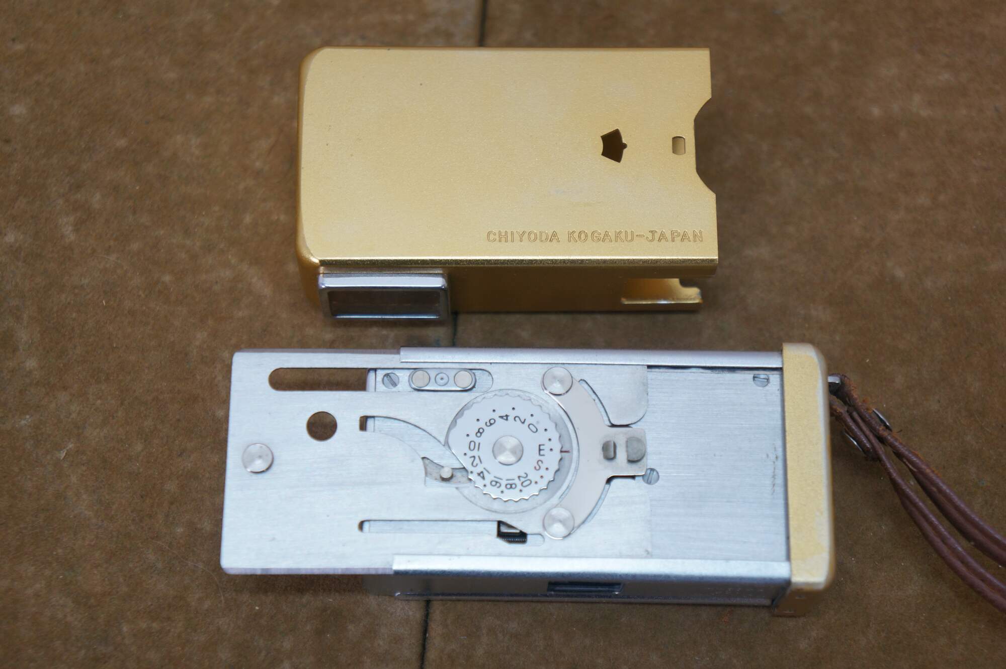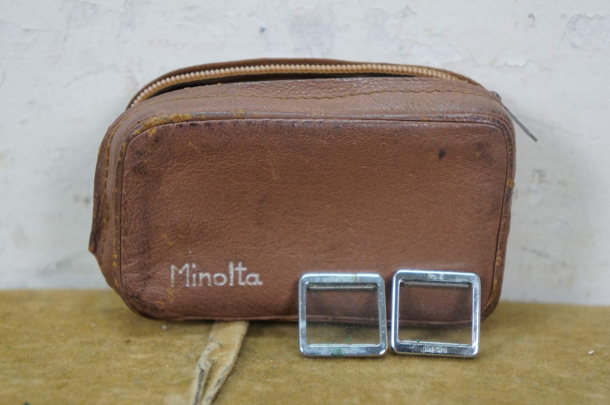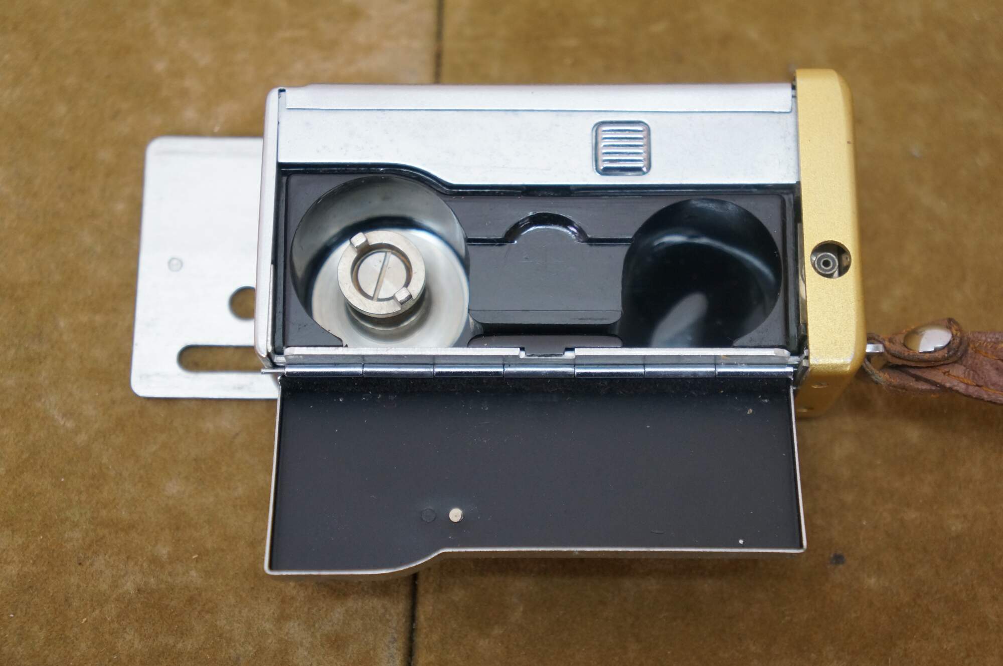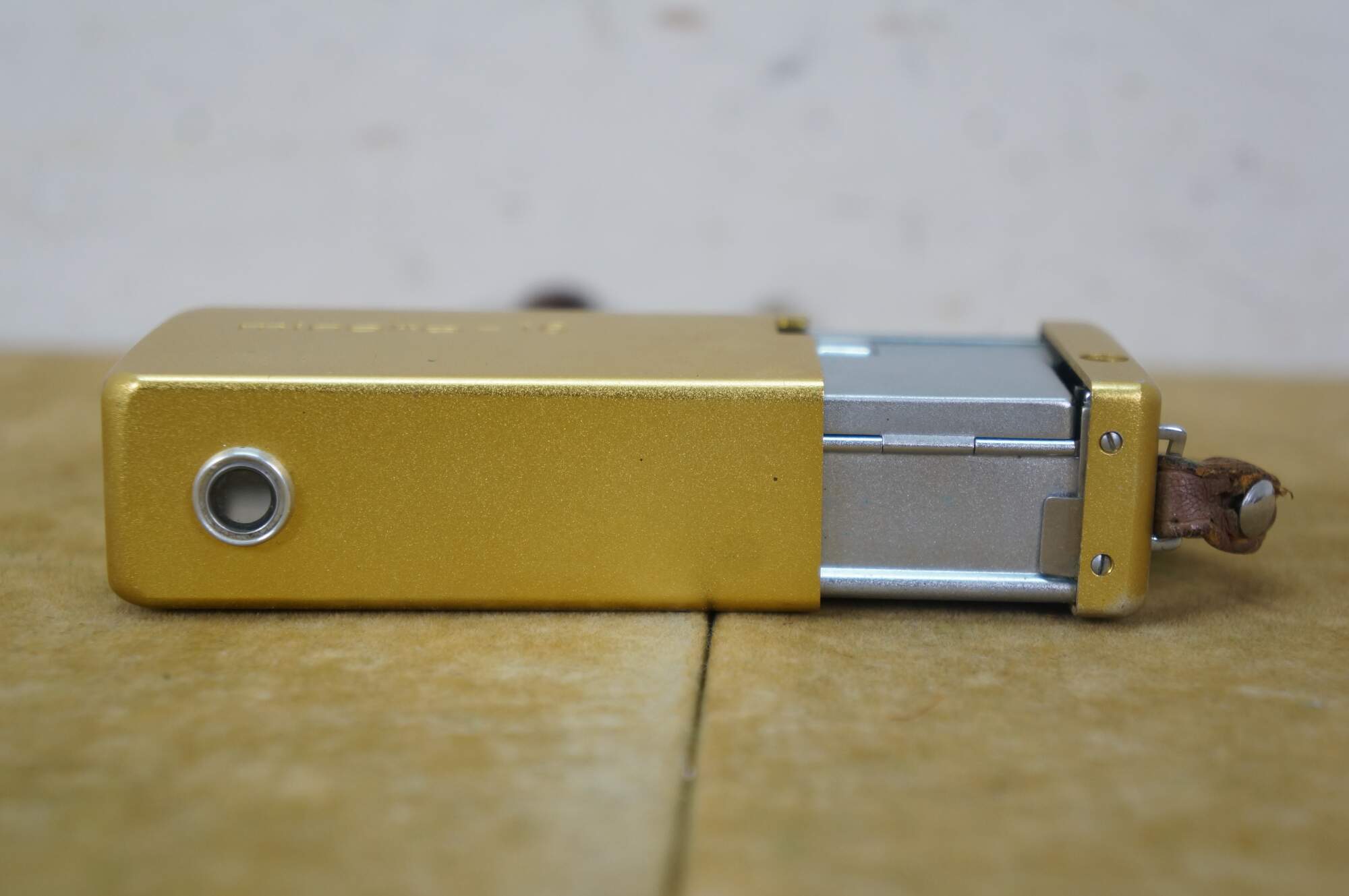 1960's Minolta 16 II subminiature "spy" camera - gold finish with brown leather case and wrist strap. 16mm film. Rokkor 1:28 F=22mm lens. Serial Number 466797. Chiyoda Kogaku - Japan. Includes 2 spare lenses and Owner's Manual.