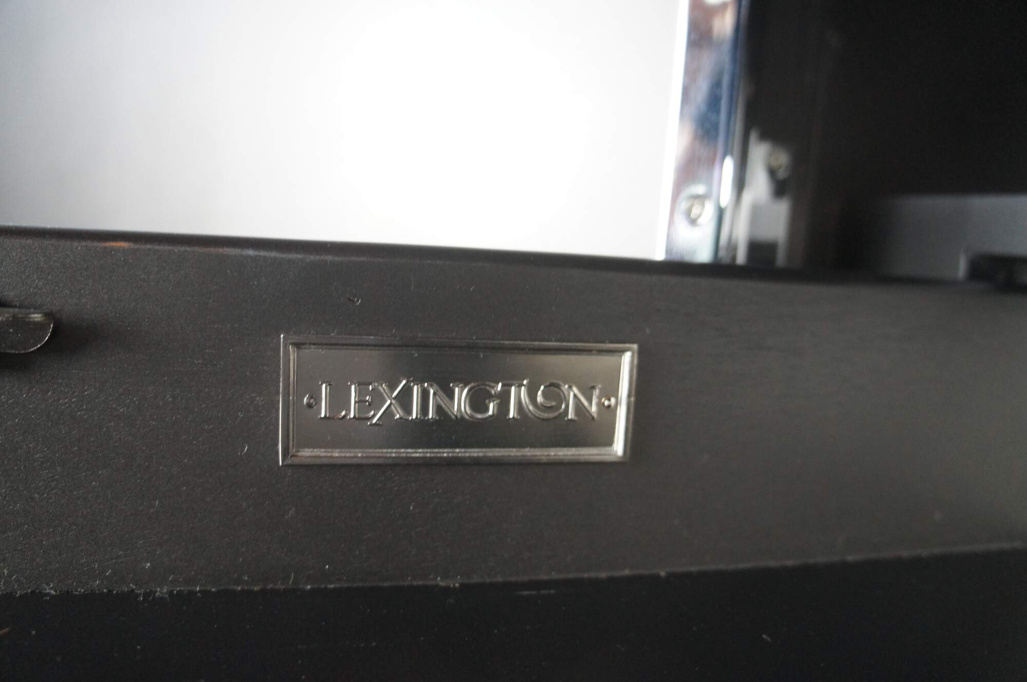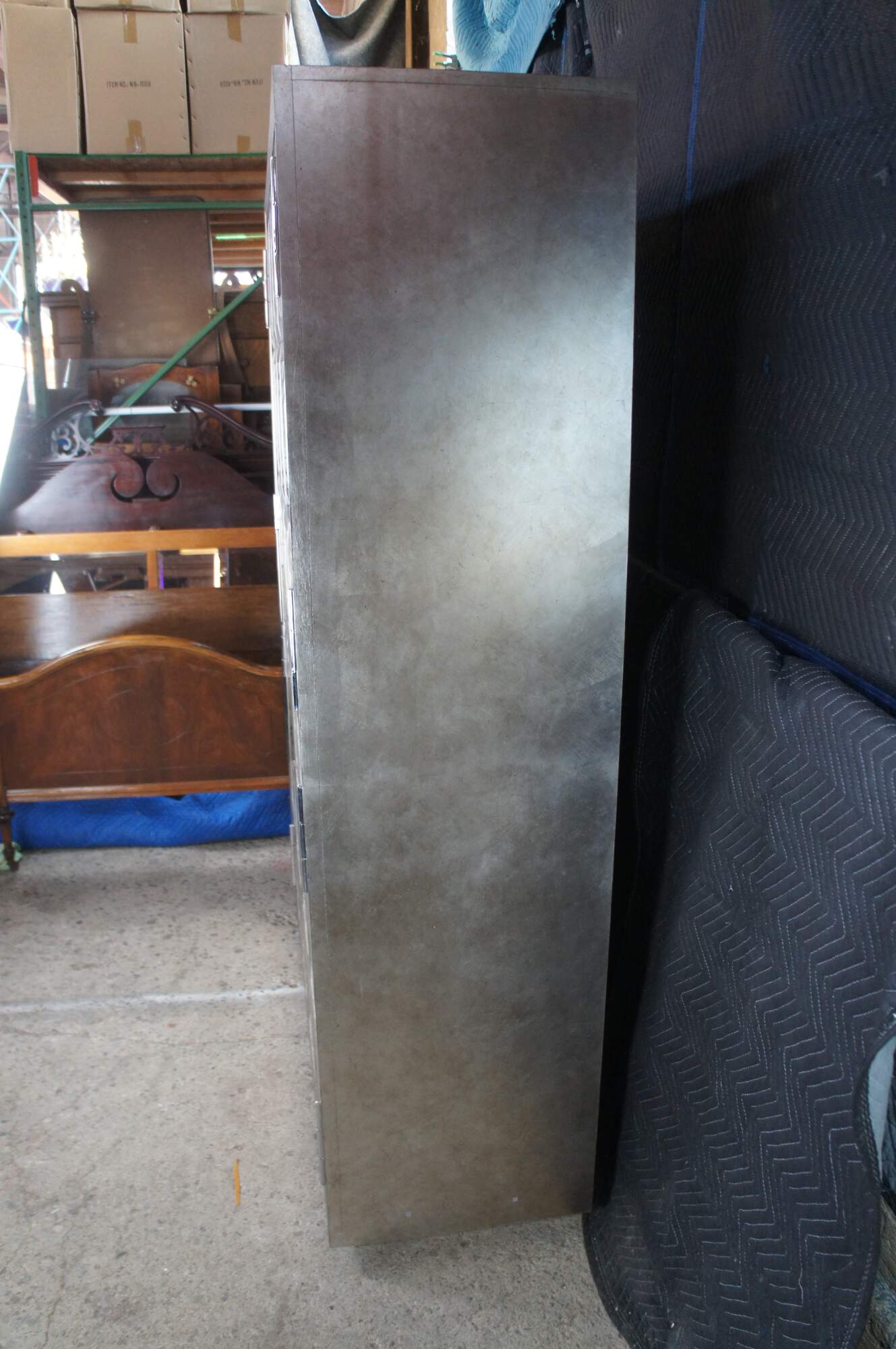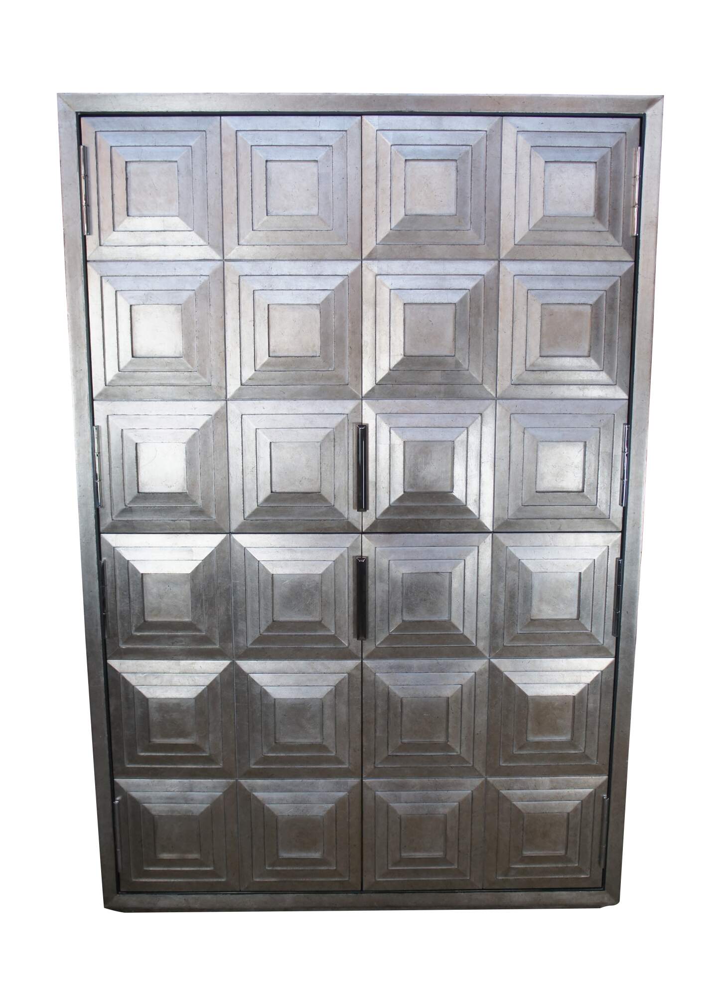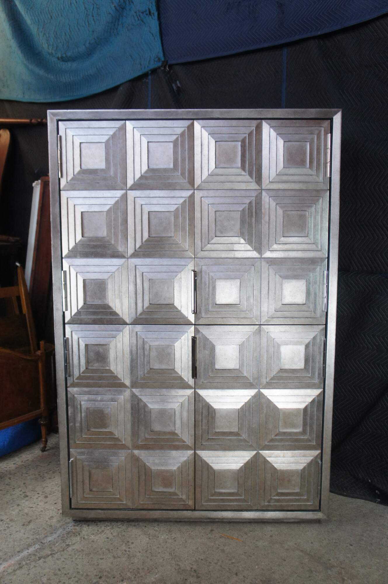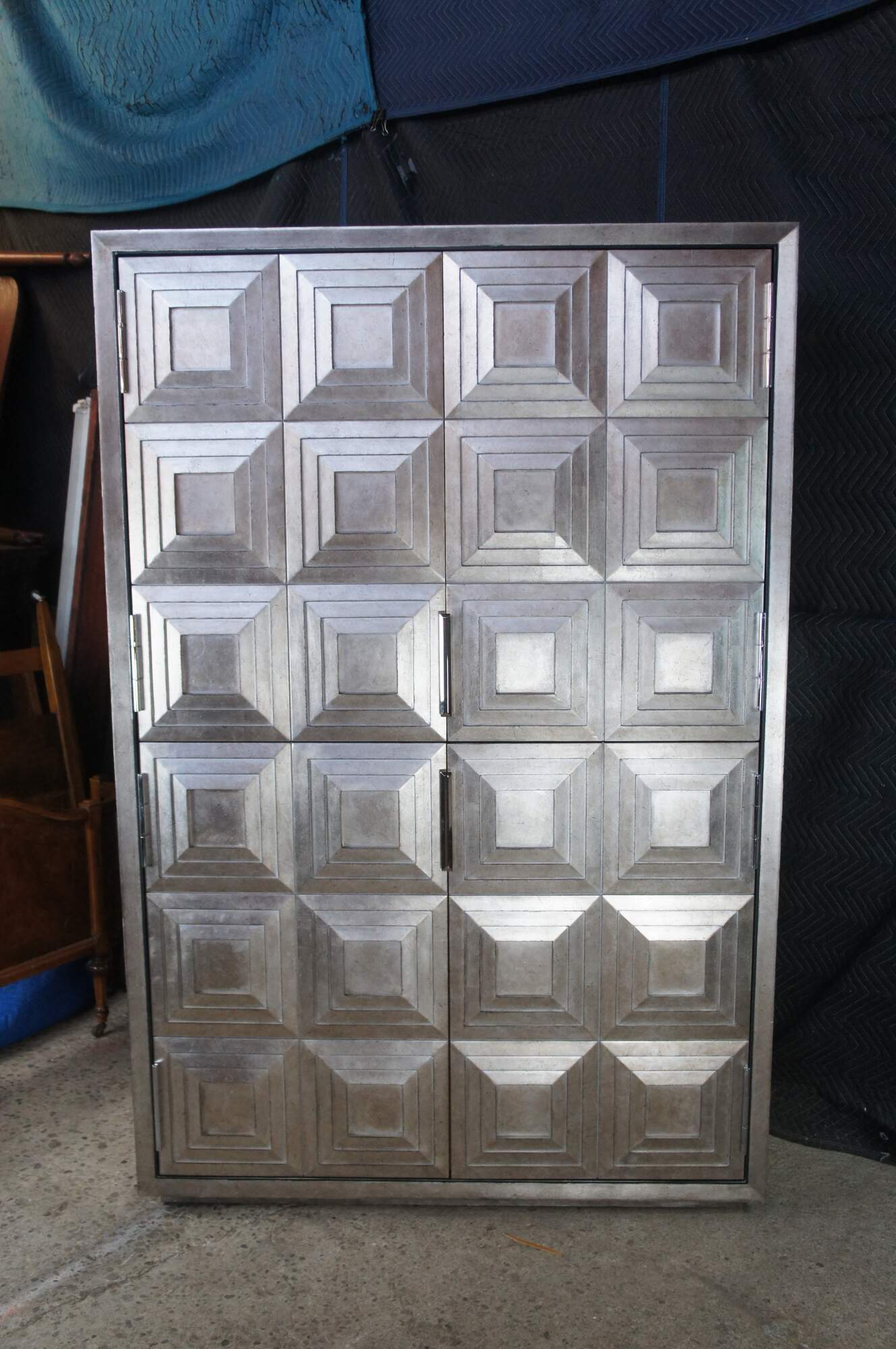 Vintage Lexington Furniture Ariana Sanremo silver leaf 4 door cabinet / linen press / drybar / armoire / closet / secretary desk / tv media console. Circa 2017.