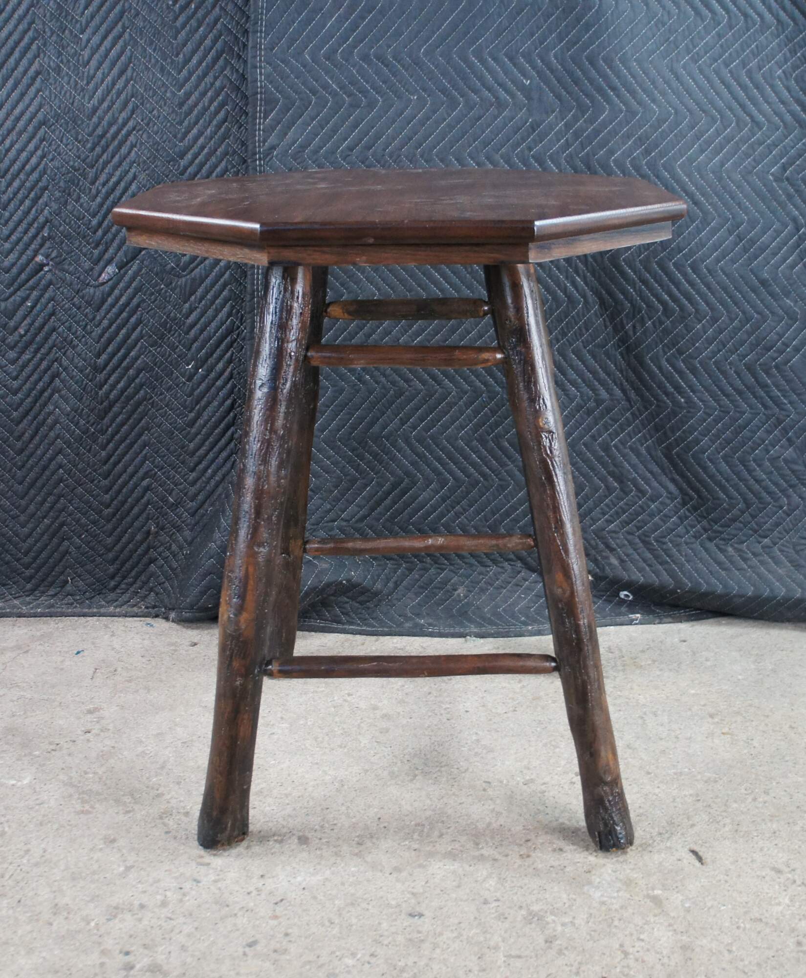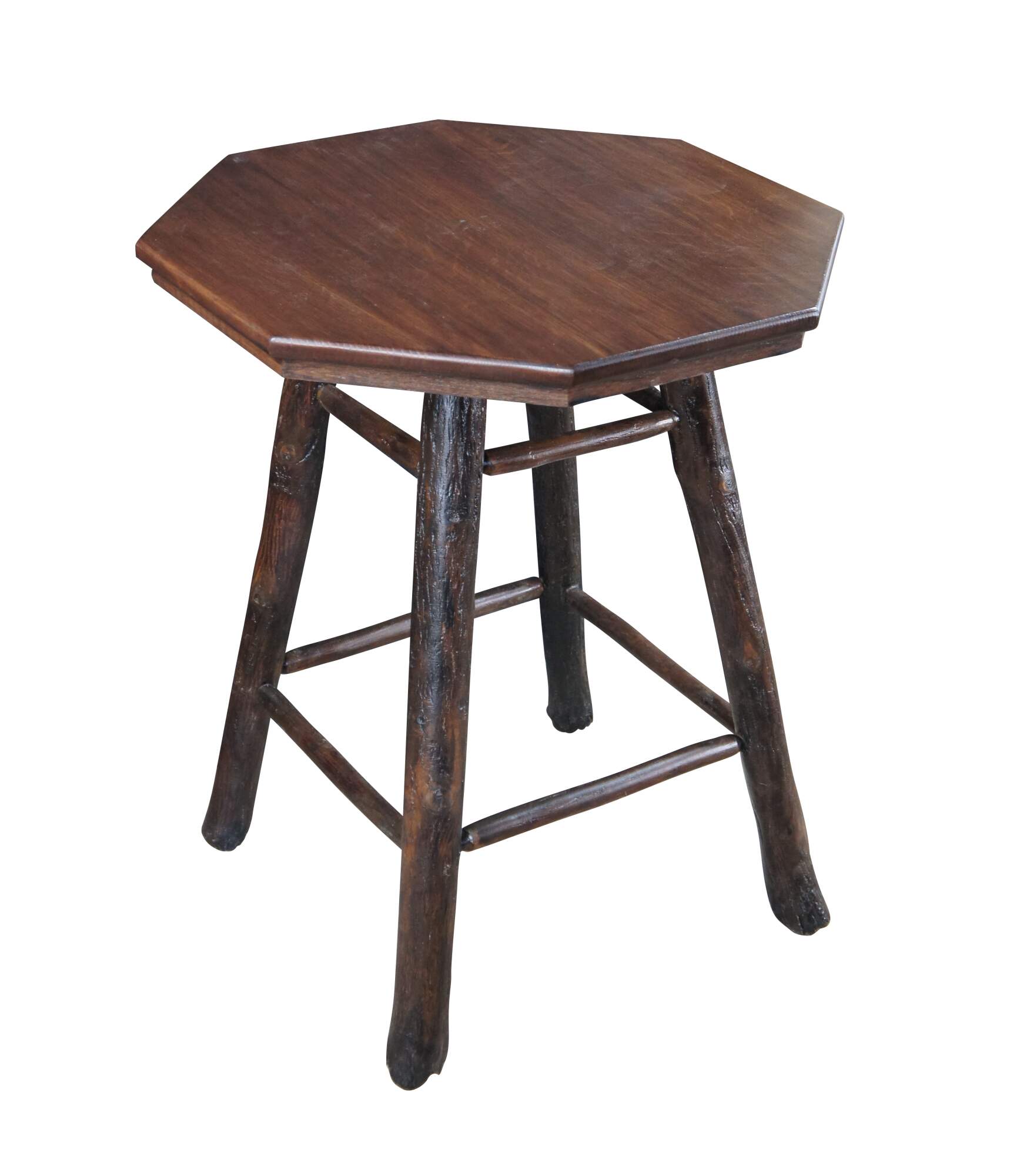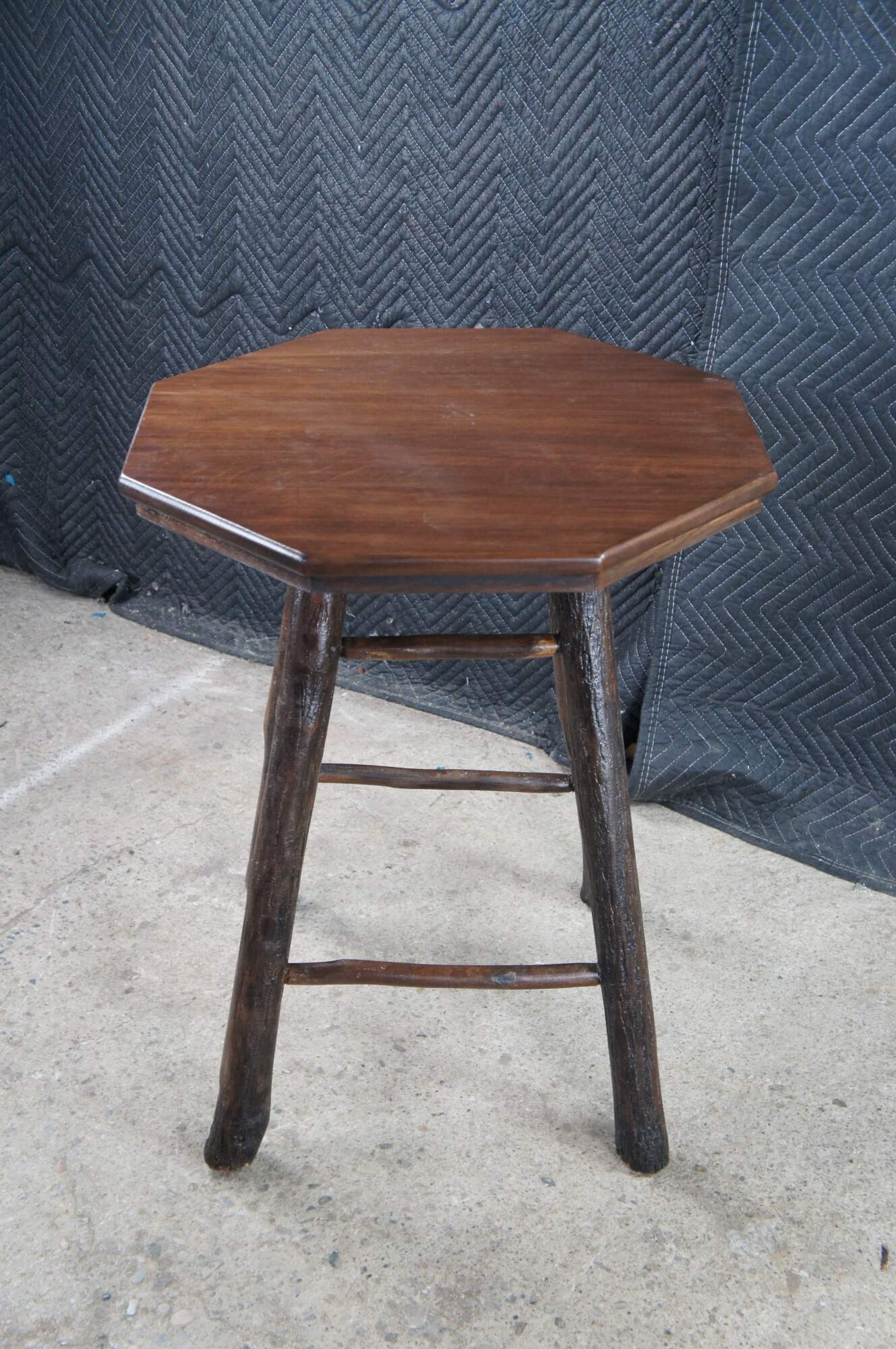 Rustic Old Hickory Style Octagonal Oak Adirondack Log Side Table Pedestal Stand