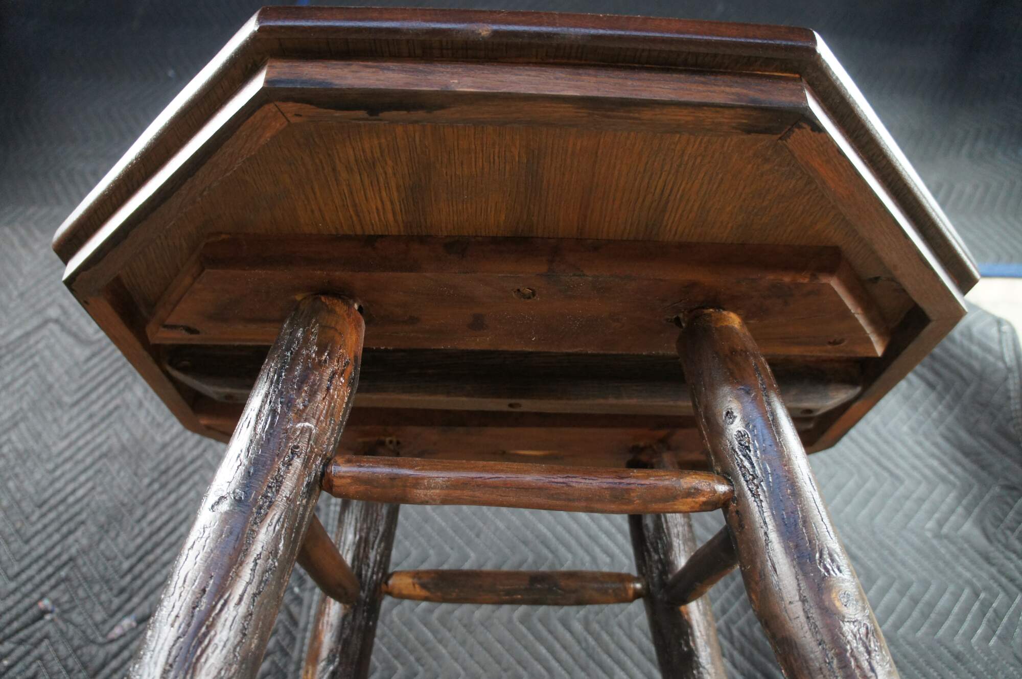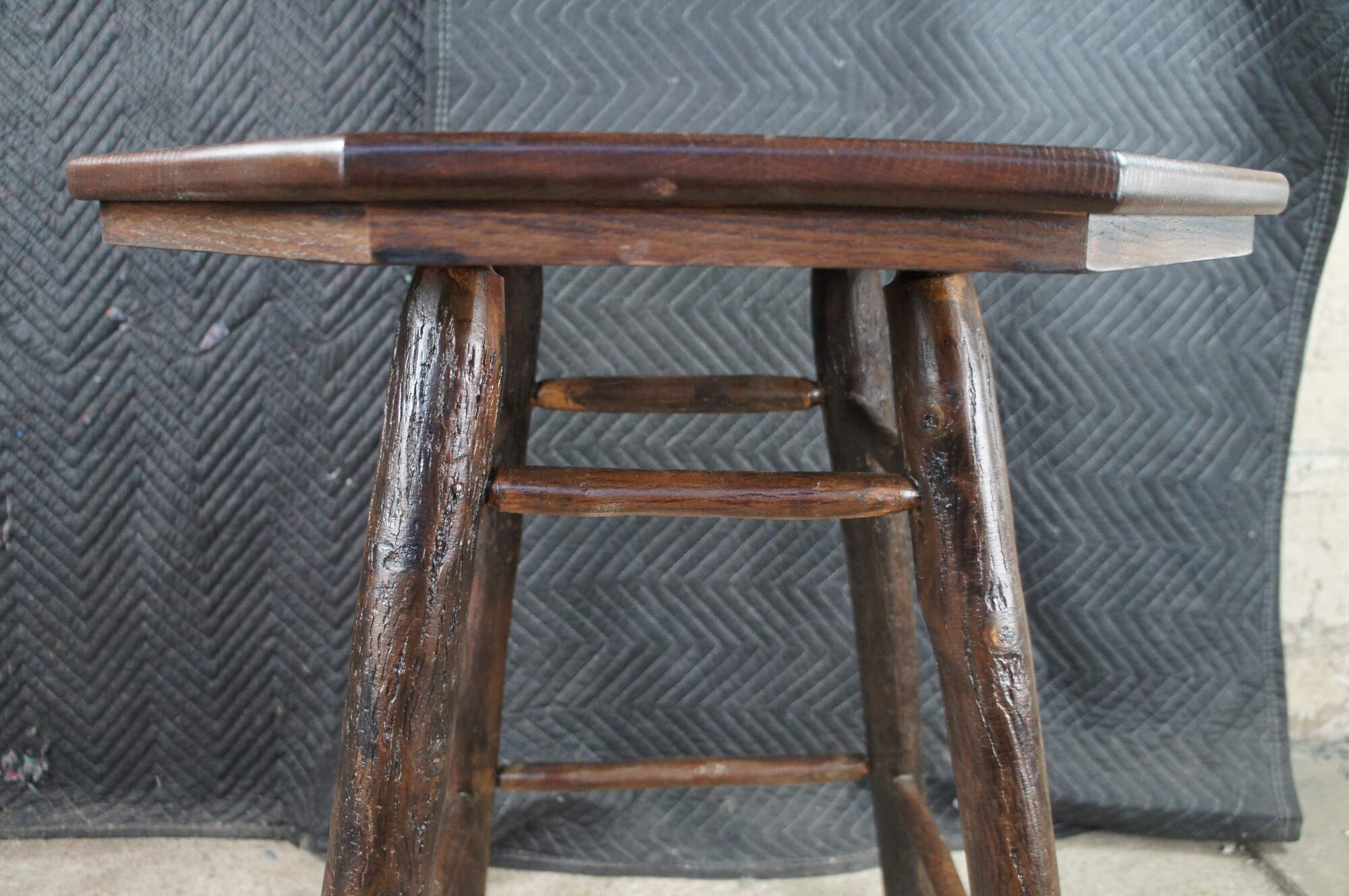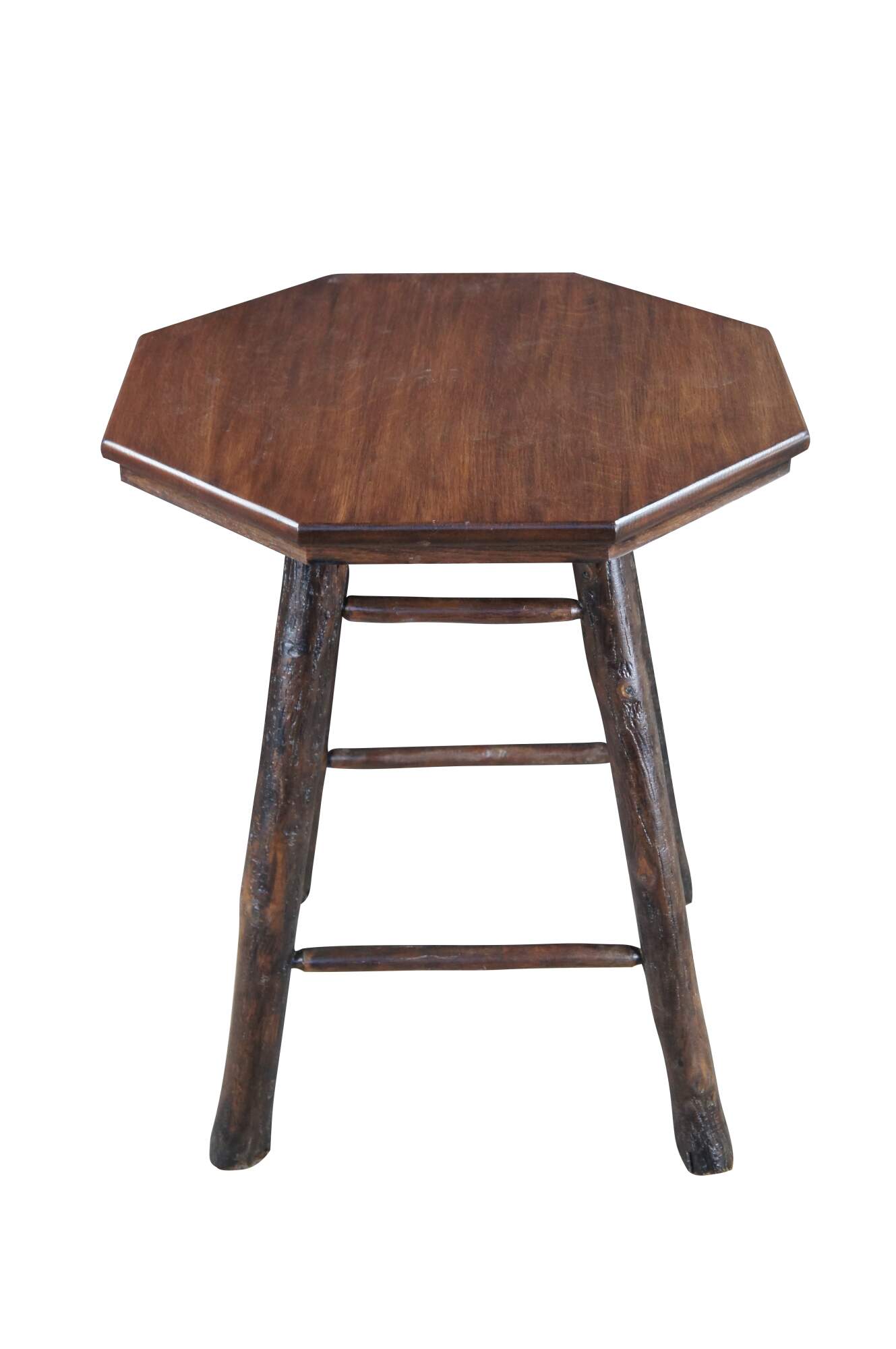 Rustic Old Hickory Style Octagonal Oak Adirondack Log Side Table Pedestal Stand
