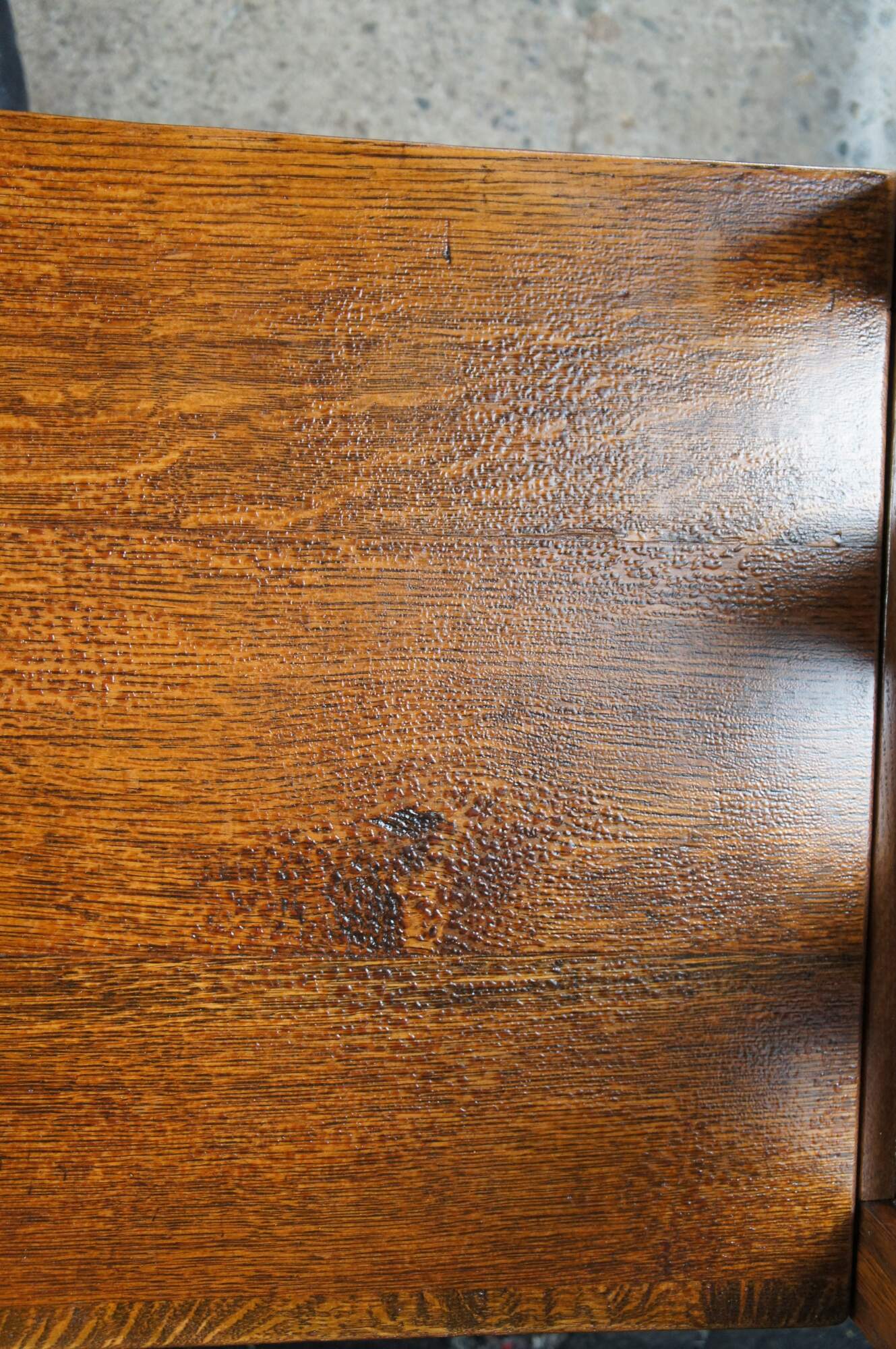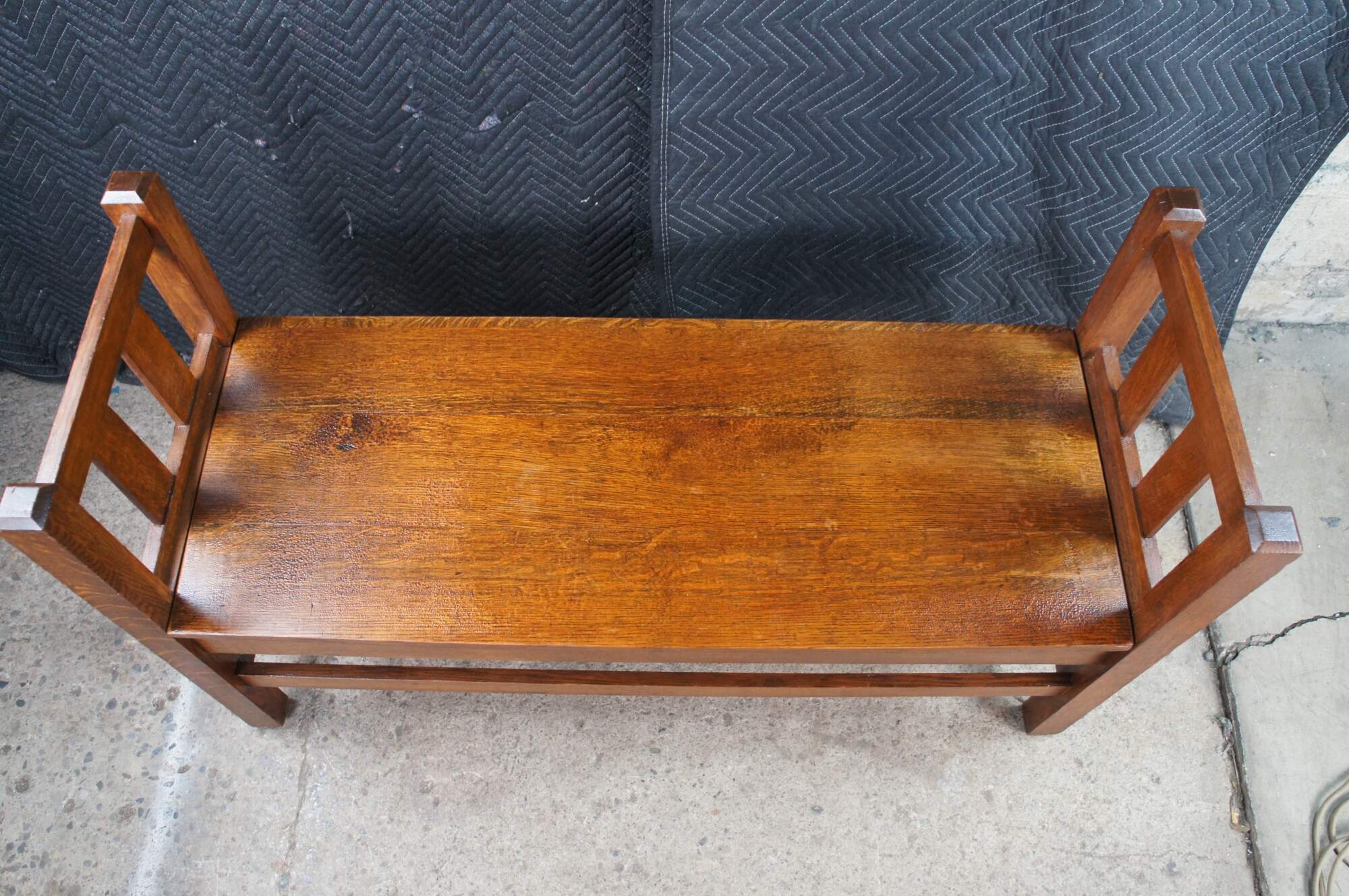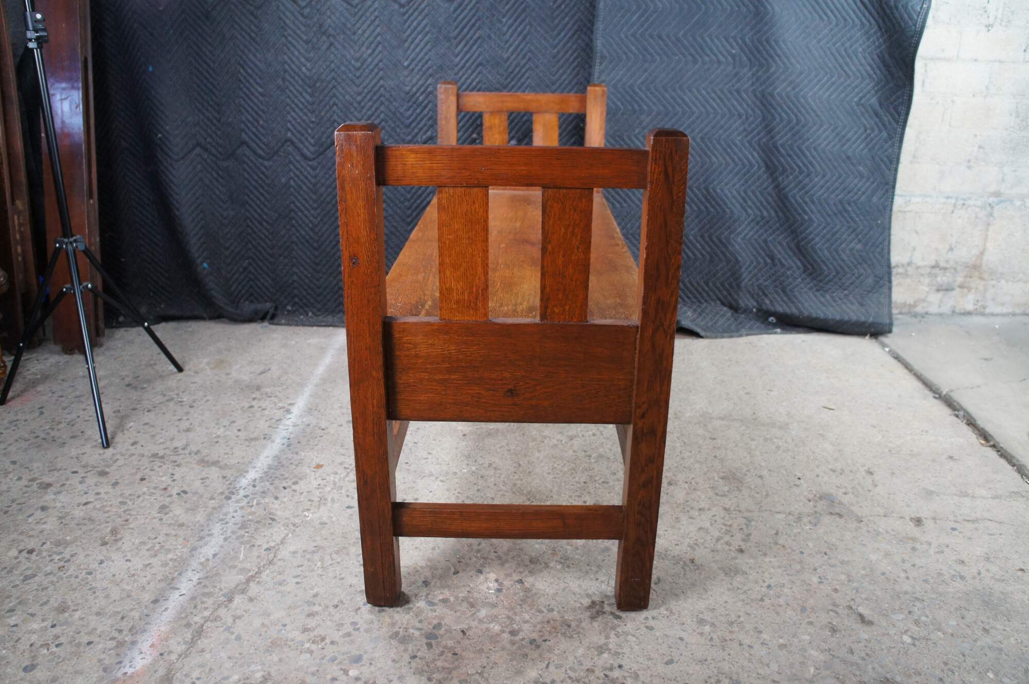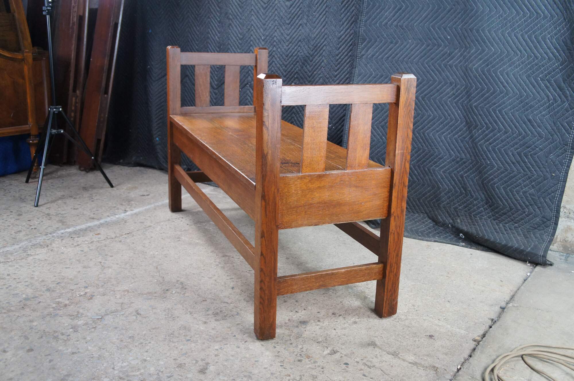 Antique storage bench featuring traditional Mission / Arts & Crafts styling with slatted sides and large hinged compartment under the seat.