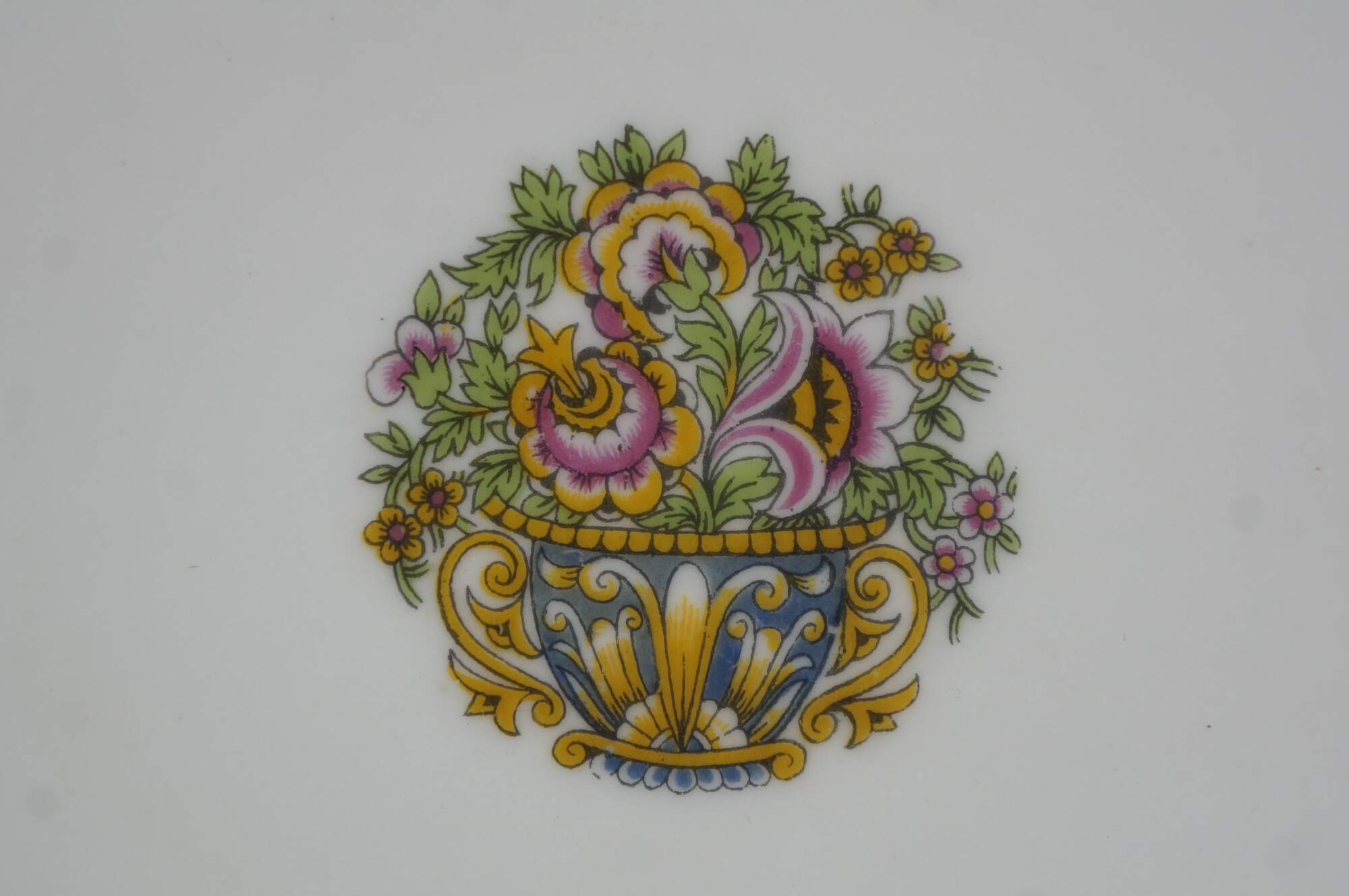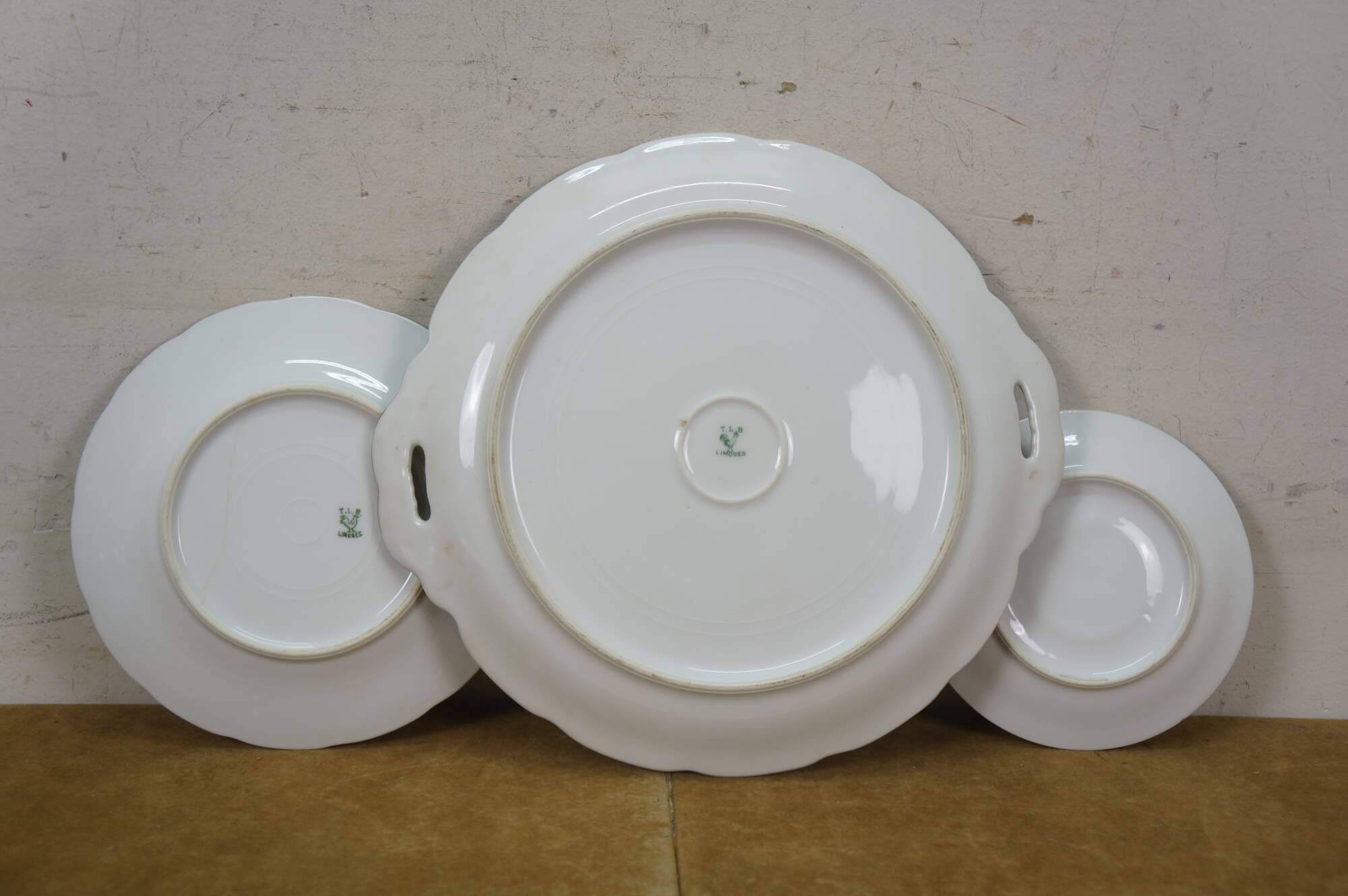 "The story of the Touze family in the porcelain business dates back to 1863 when Michel Touze and his associate Soudanas founded a decorating studio in Limoges at the boulevard des Petits Carmes which Touze continued alone from 1869, moving to brand new facilities the following year. In 1878 his widow took charge of the family business, followed by their son a few years later. The mark J.B.T & Cie was used from 1901 to 1913. During World War I the company ceased activity. T.L.B. (Touze, Lemaître Frères & Blancher) was created after the war, in 1918. The manufacture produced tea, coffee and table sets in several shapes. Some patterns were entirely hand painted. The manufactory participated in the 1925 Modern Decorative Arts Exhibition, in the 1931 Colonial Exhibition and in the 1937 International Exhibition. Like many other factories in the Limoges region, the company ceased activity during World War II. From 1950 onwards the former facilities of T.L.B. were used by the porcelain decorators Georges Jammet and Henri Seignolles who founded J. Seignolles, a factory that still produces high quality porcelain manufactured and decorated exclusively in Limoges. " (Art Deco Limoges Porcelain)