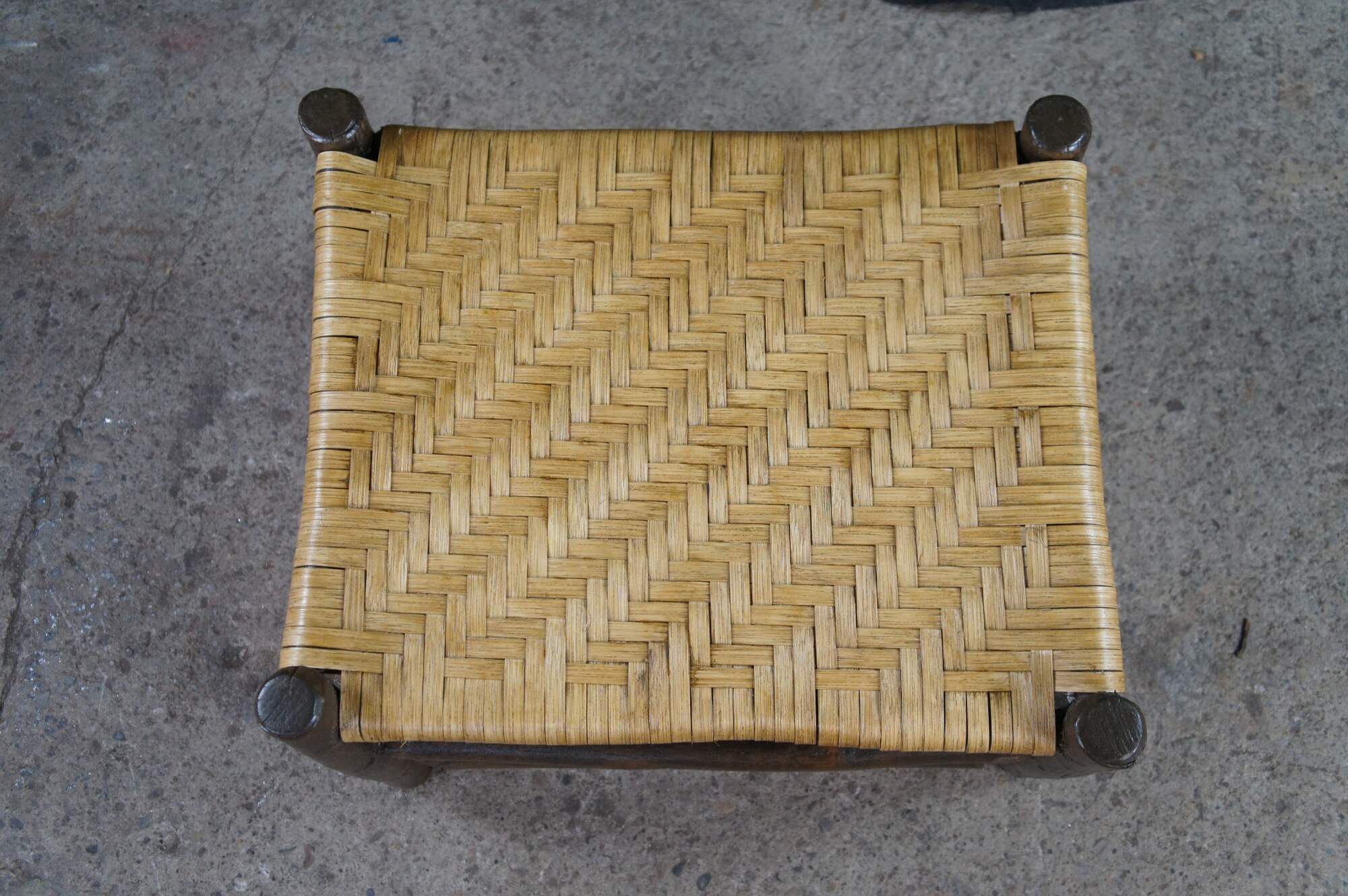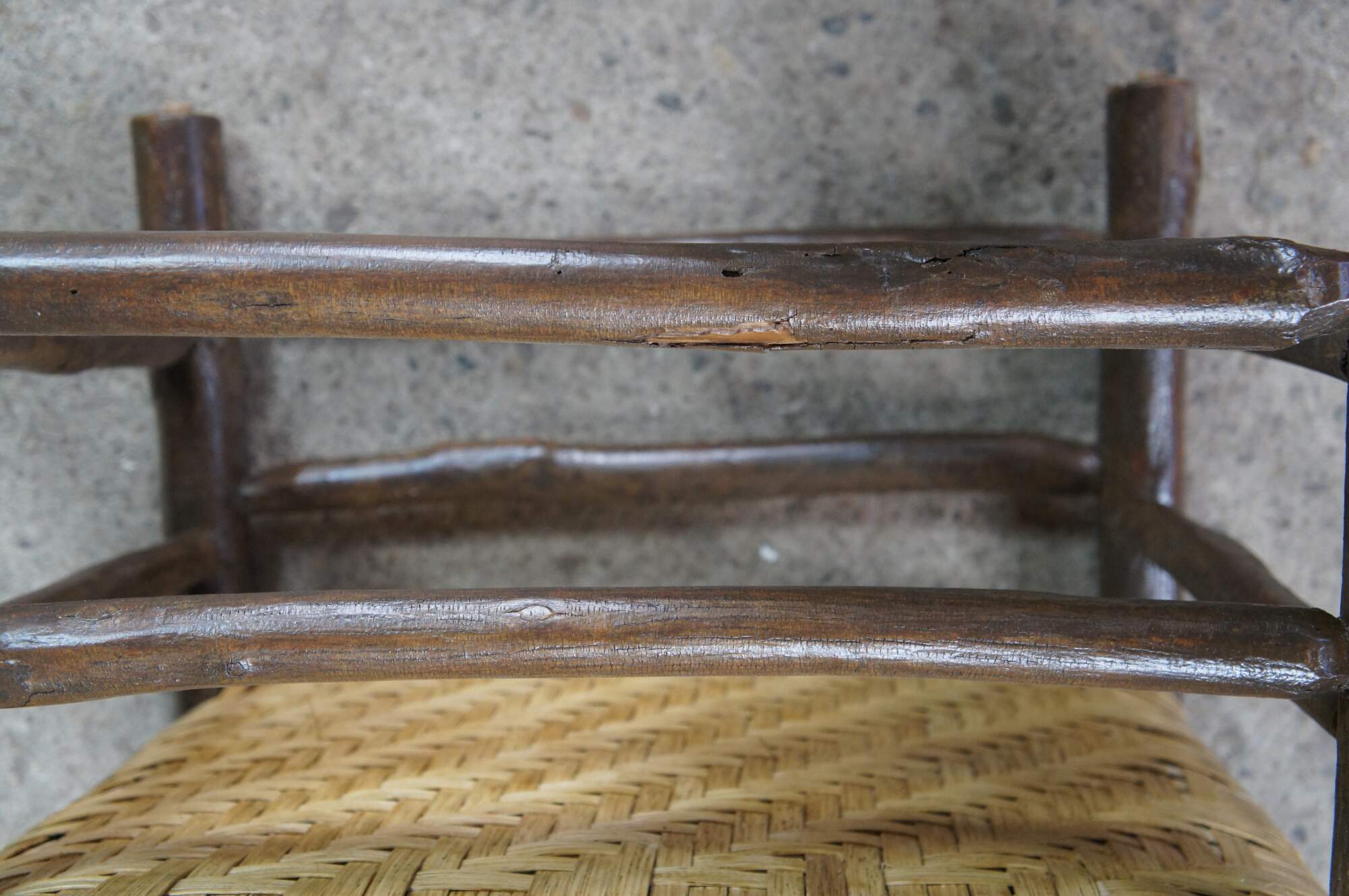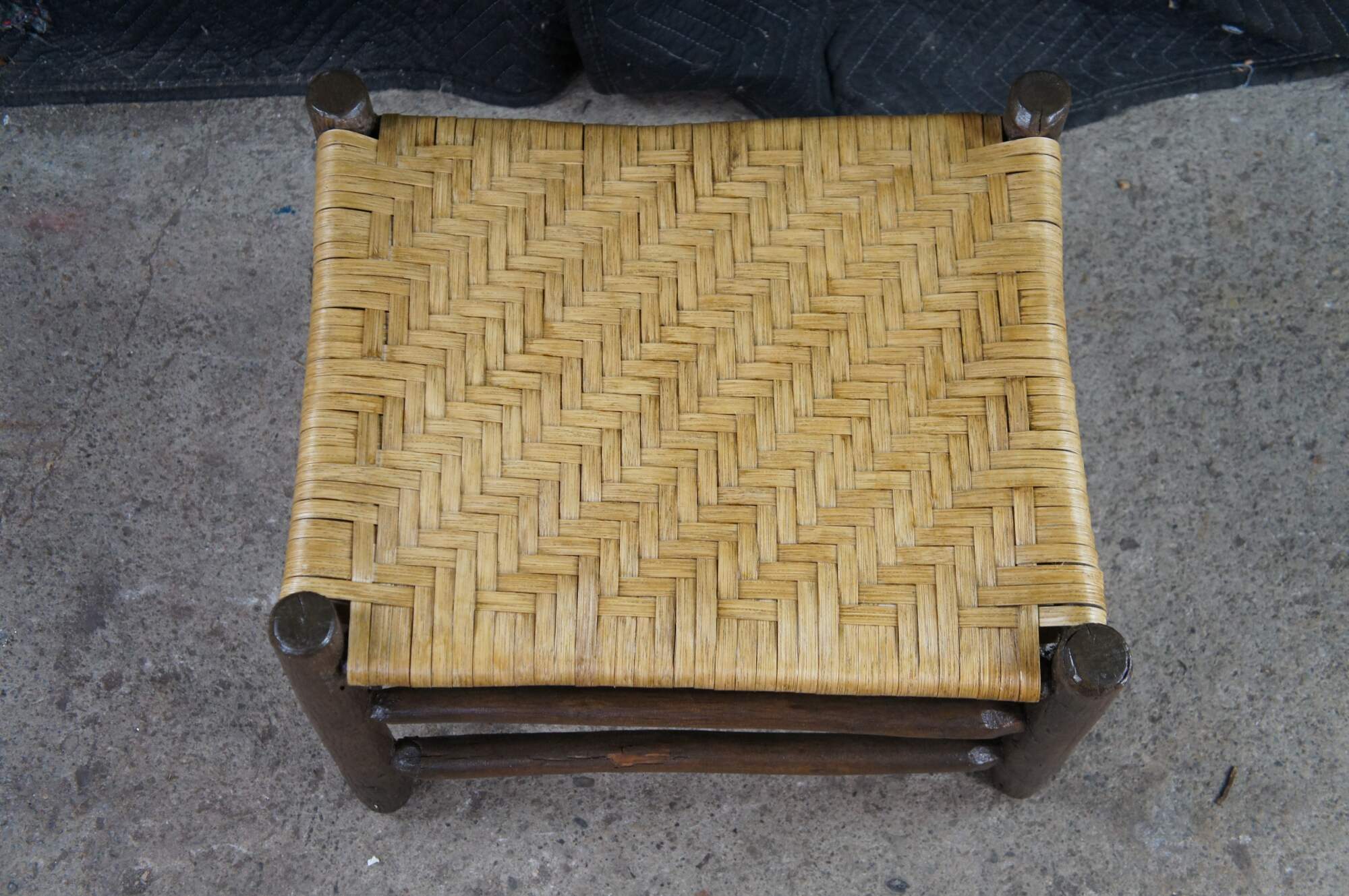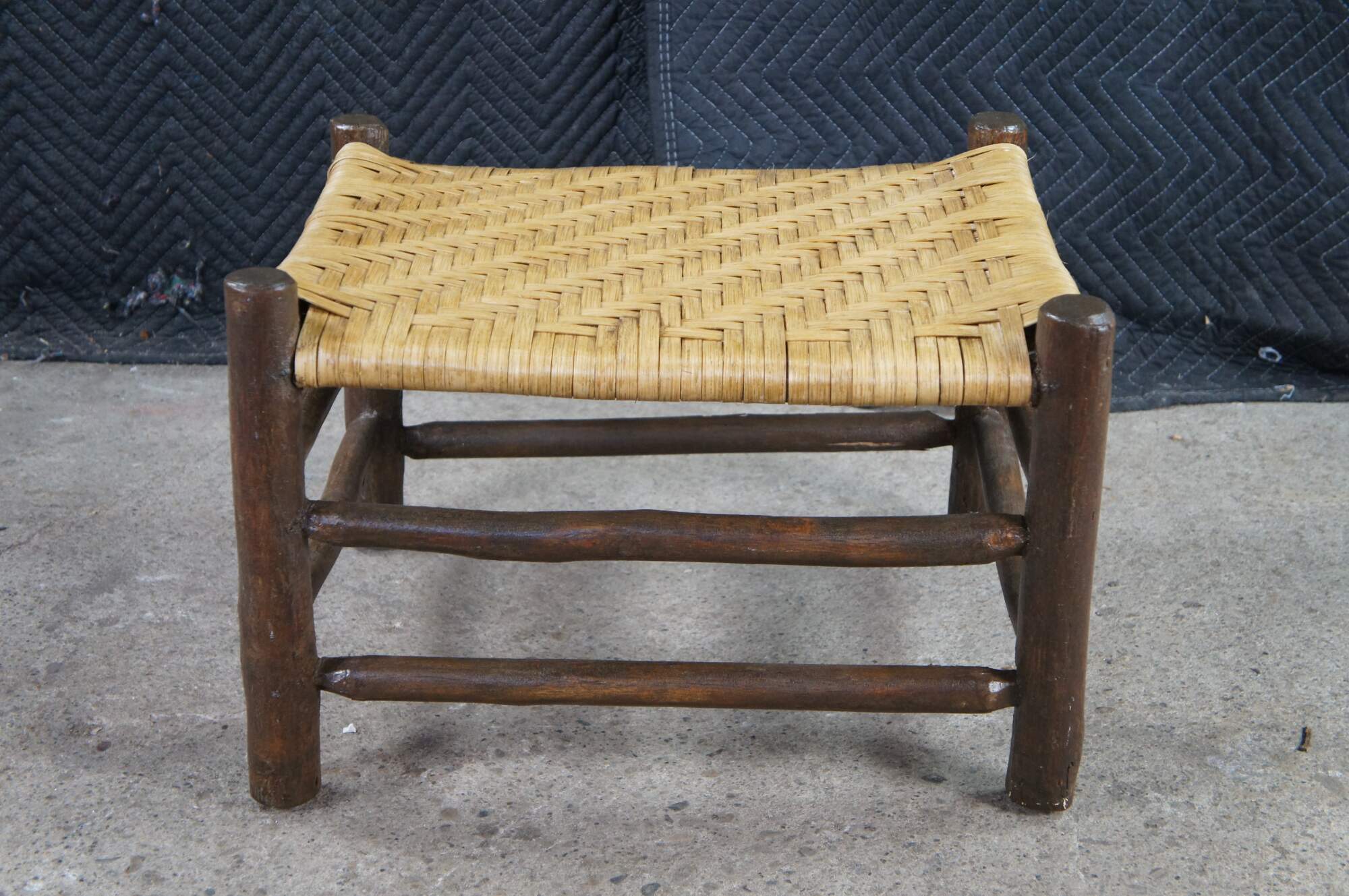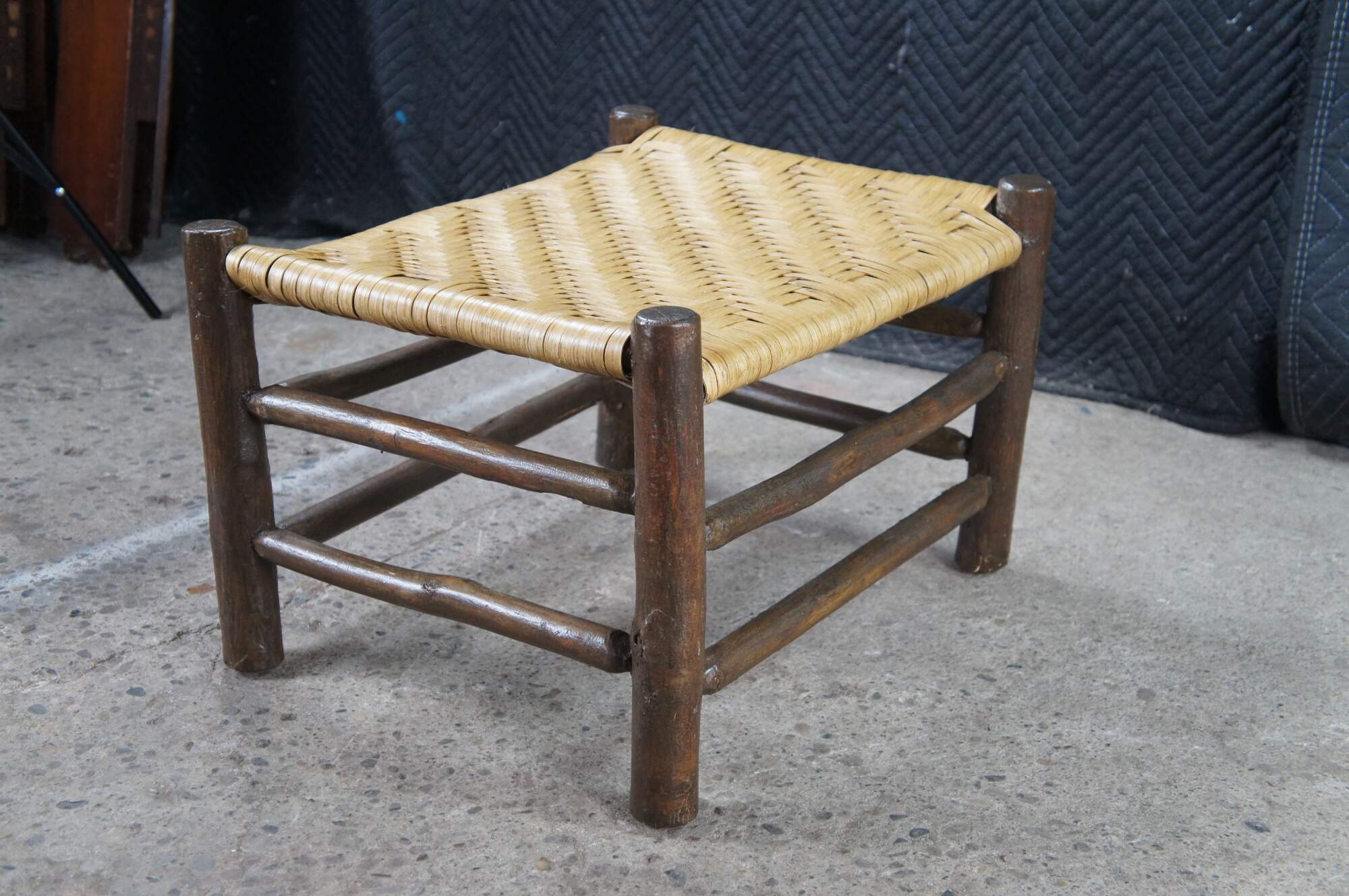 Antique Old Hickory style farmhouse / lodge footstool / bench seat / ottoman. Made from rustic natural tree branch / logs with woven rattan seat.