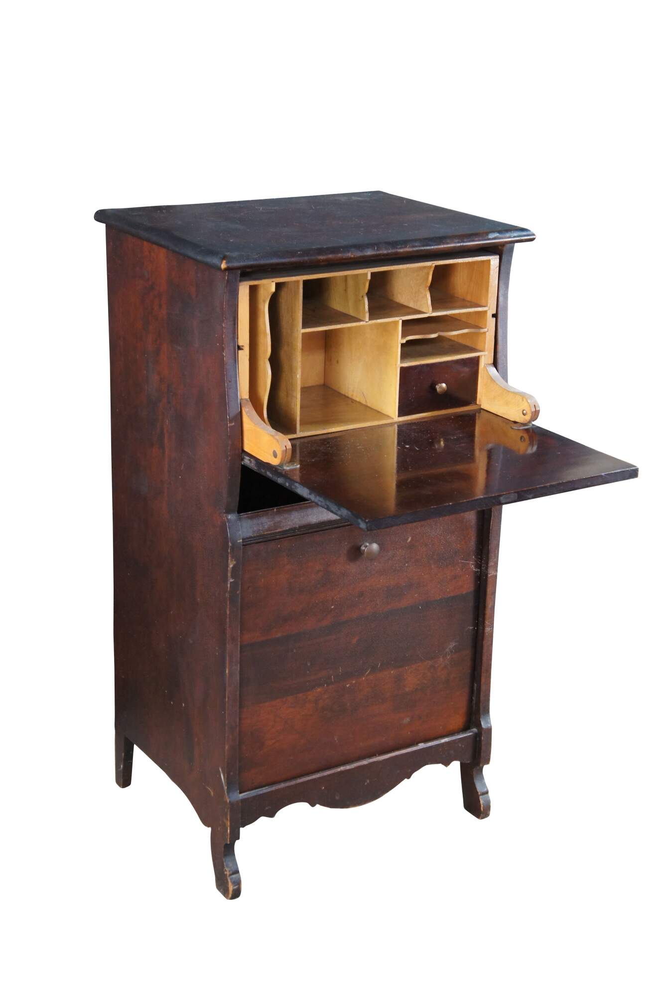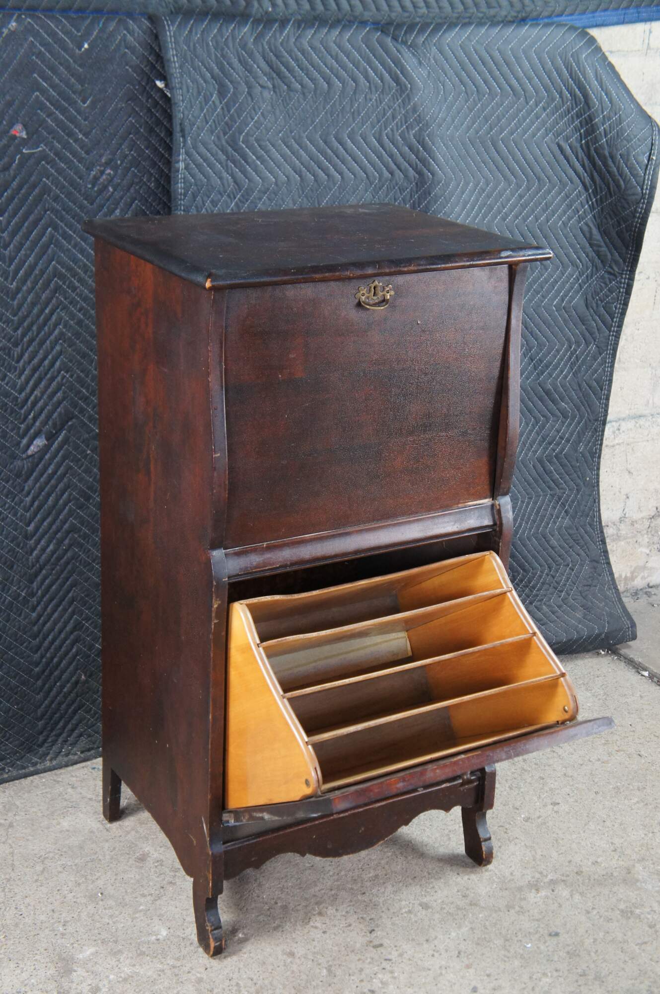 Rare Antique Edwardian filing cabinet secretary desk / console / music stand. Made of mahogany featuring a unique stacked design with upper secretary and lower filing cabinets. Patented Dec. 22, 1908.