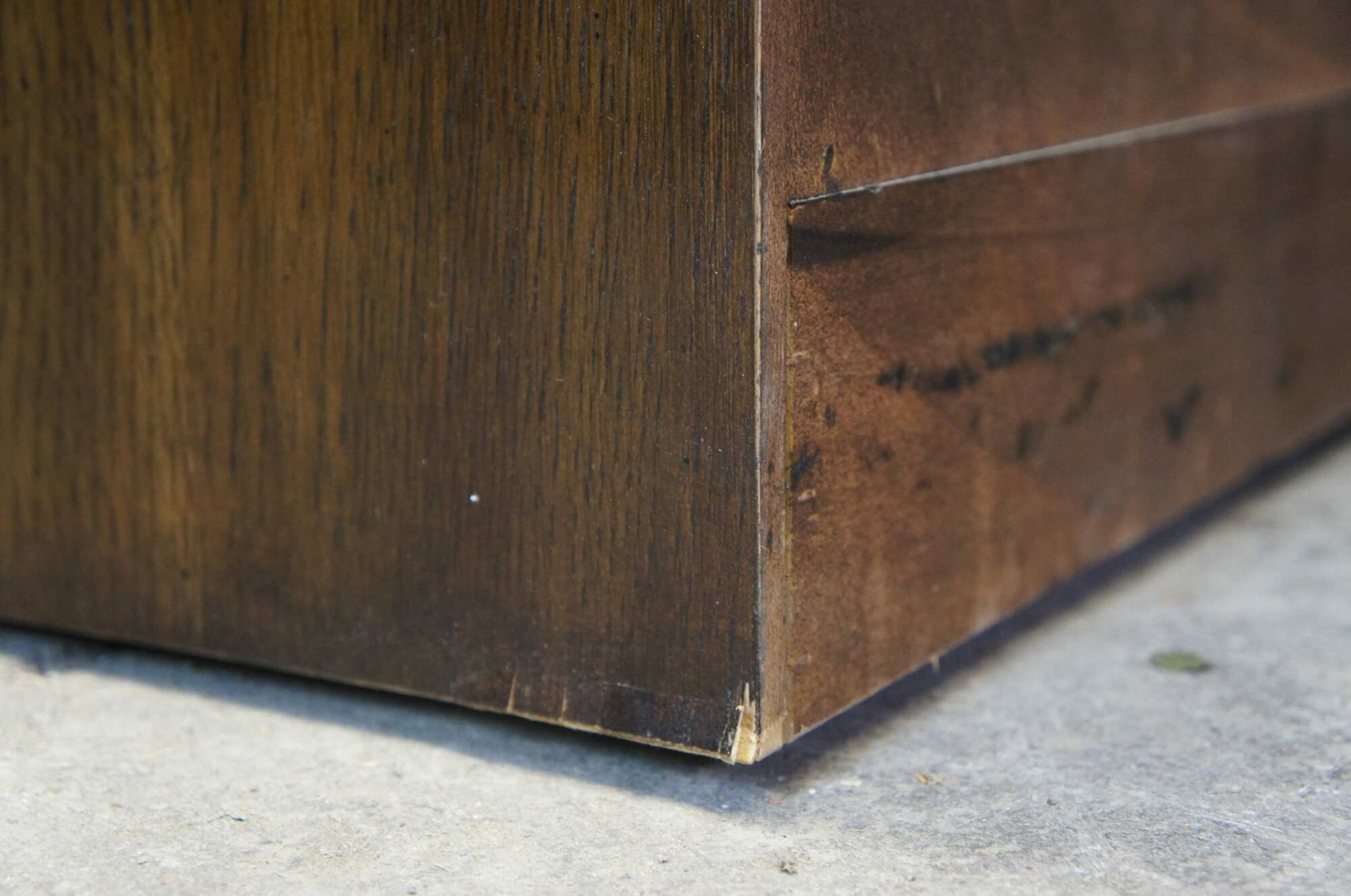 Structurally solid, wear and distressing from use, marking, scuffing, finish loss, fading, edge wear to back corners.