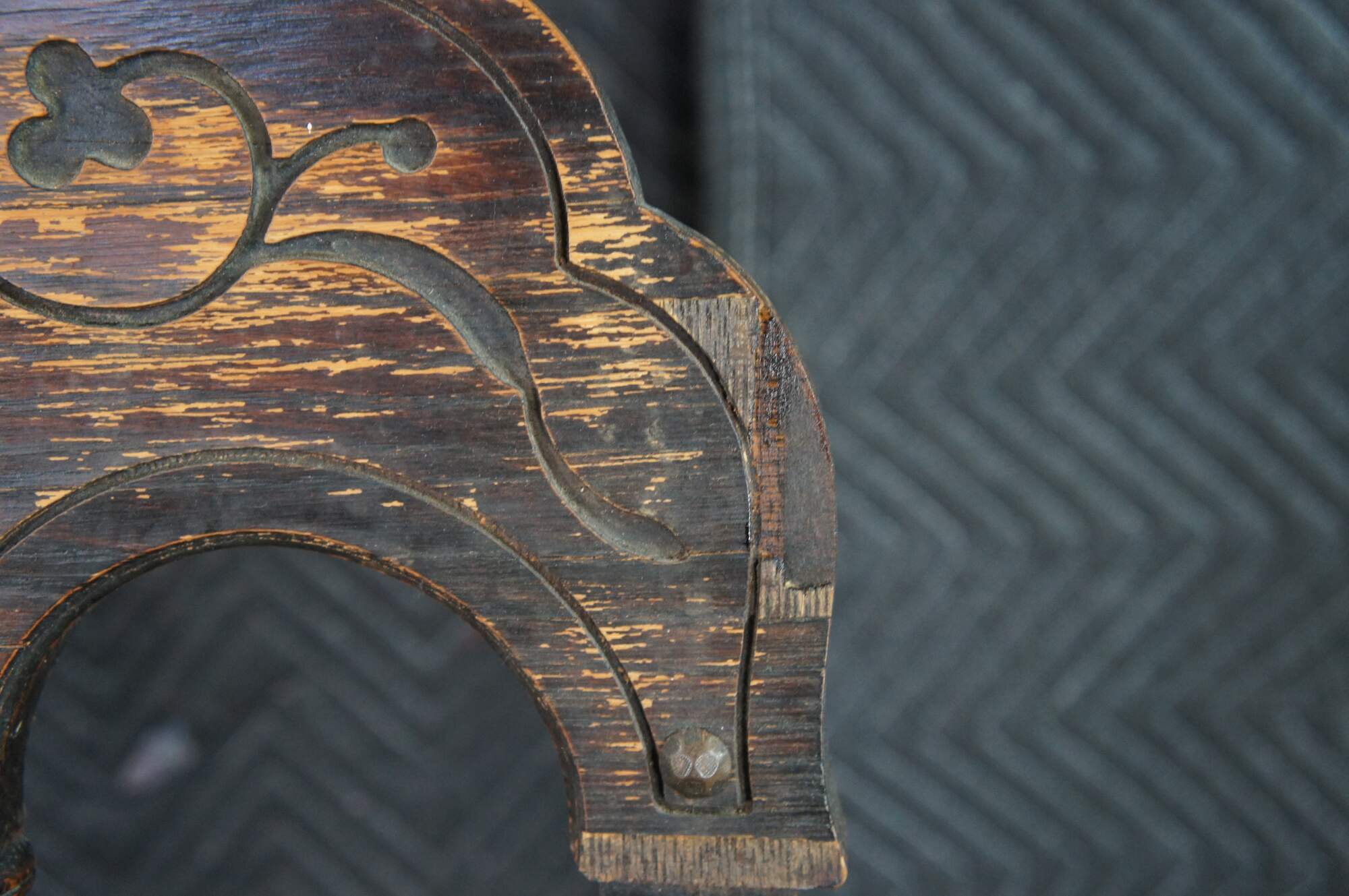 6 Antique Jacobean Spanish Revival Oak Dining Chairs Gothic Arched Back