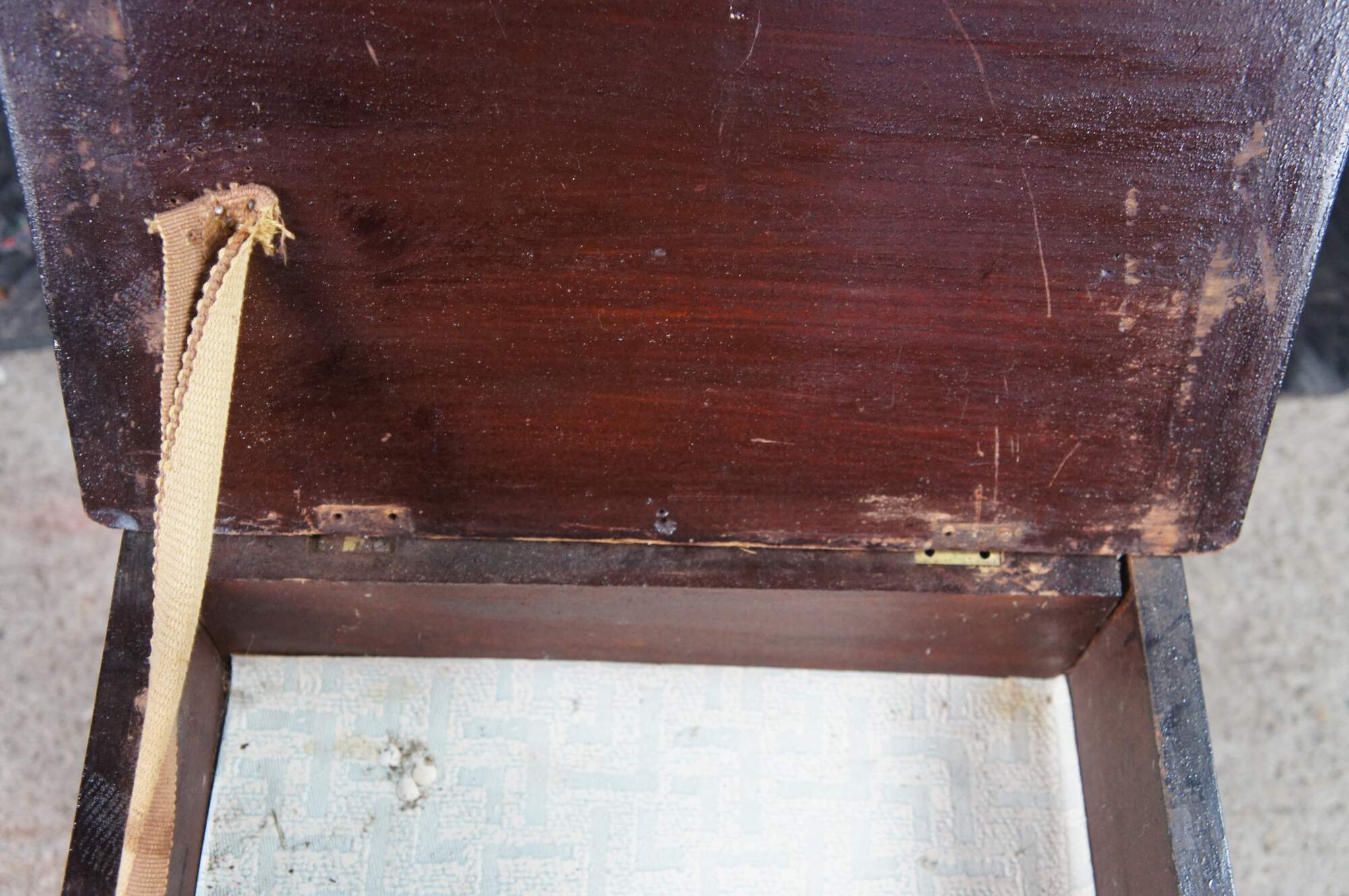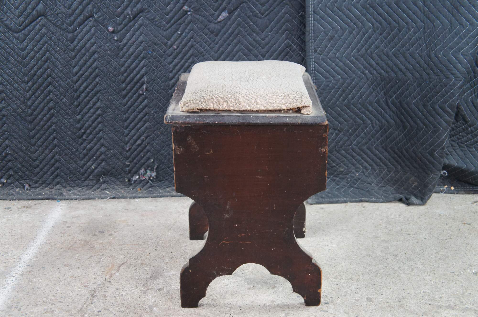 Antique slipper bench / piano trunk / foot rest / stool / sewing ottoman. Made from mahogany featuring Victorian / Eastlake styling with padded seat that opens to a storage compartment.