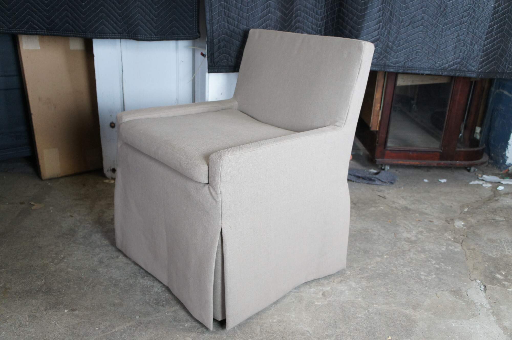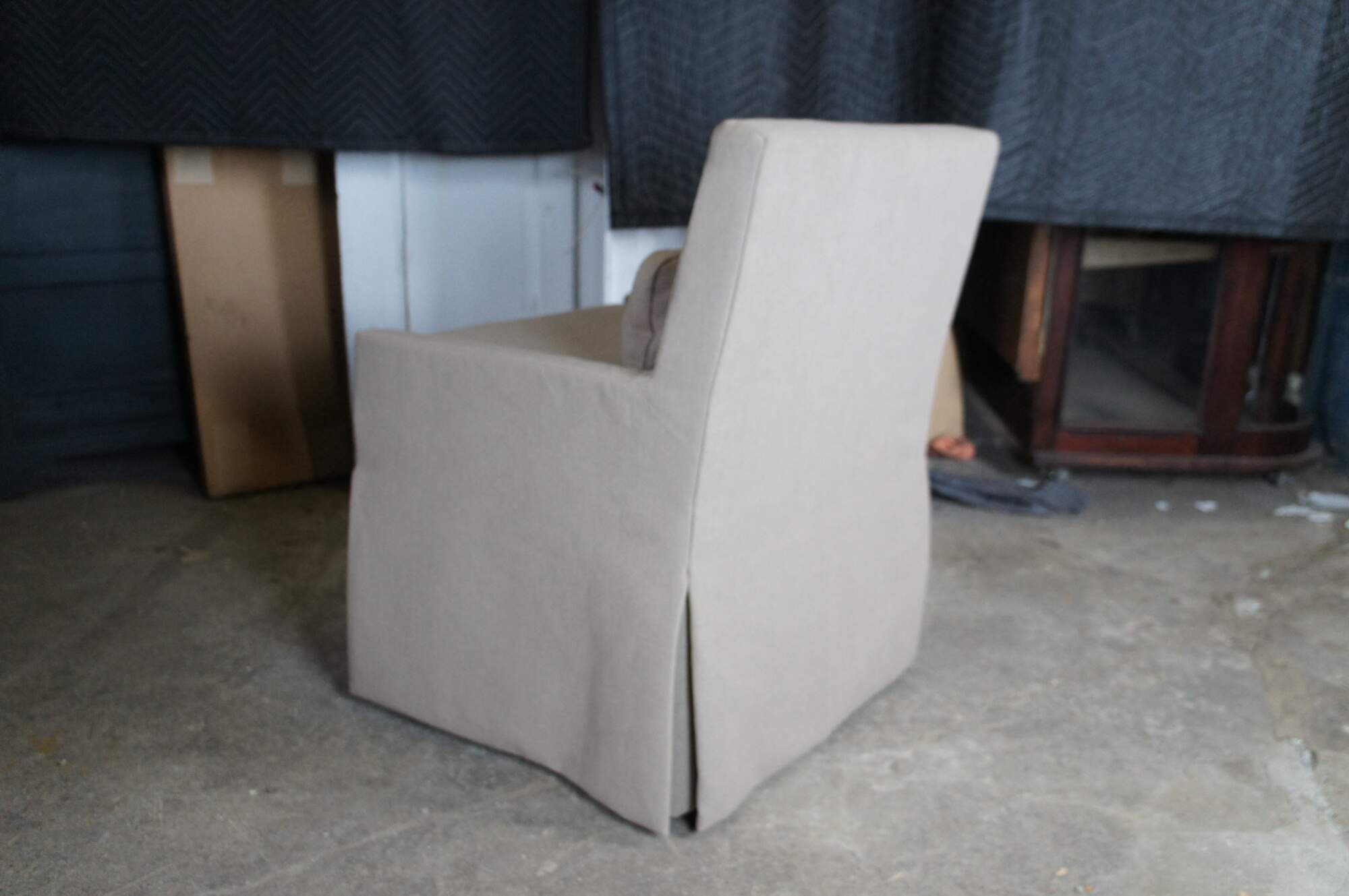 6 Low Belgian Slipcovered Track Arm Dining Side Chair