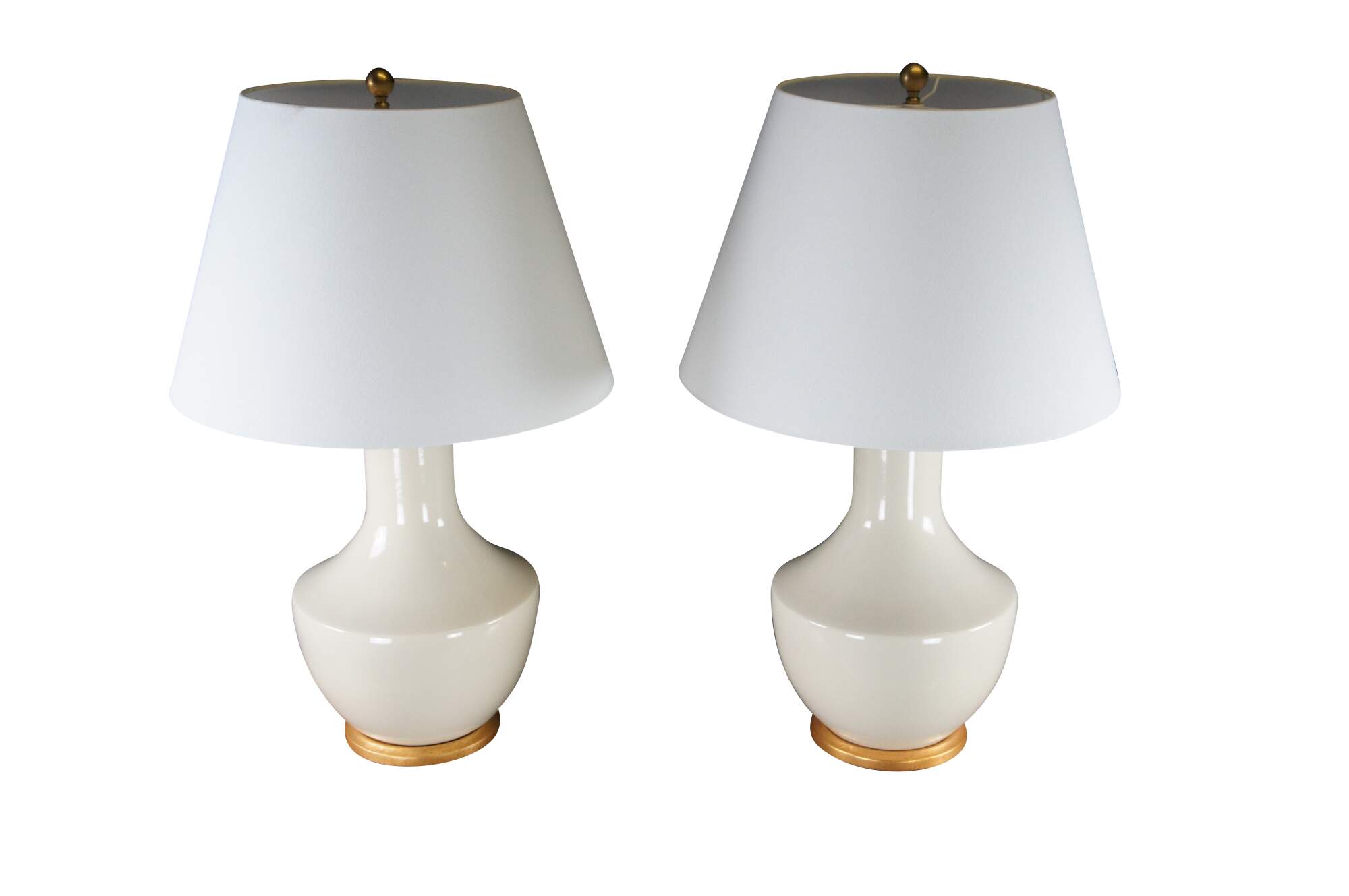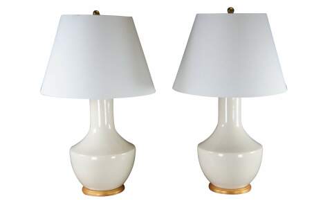 2 Visual Comfort Lambray Lamps. Drawing inspiration from Chinoiserie Gourd Shapes with a modern design. Constructed of ceramic with an ultra shapely silhouette, the Lambay Table Lamp from Visual Comfort Signature comes close to delivering a glam-inspired touch of coastal charm.