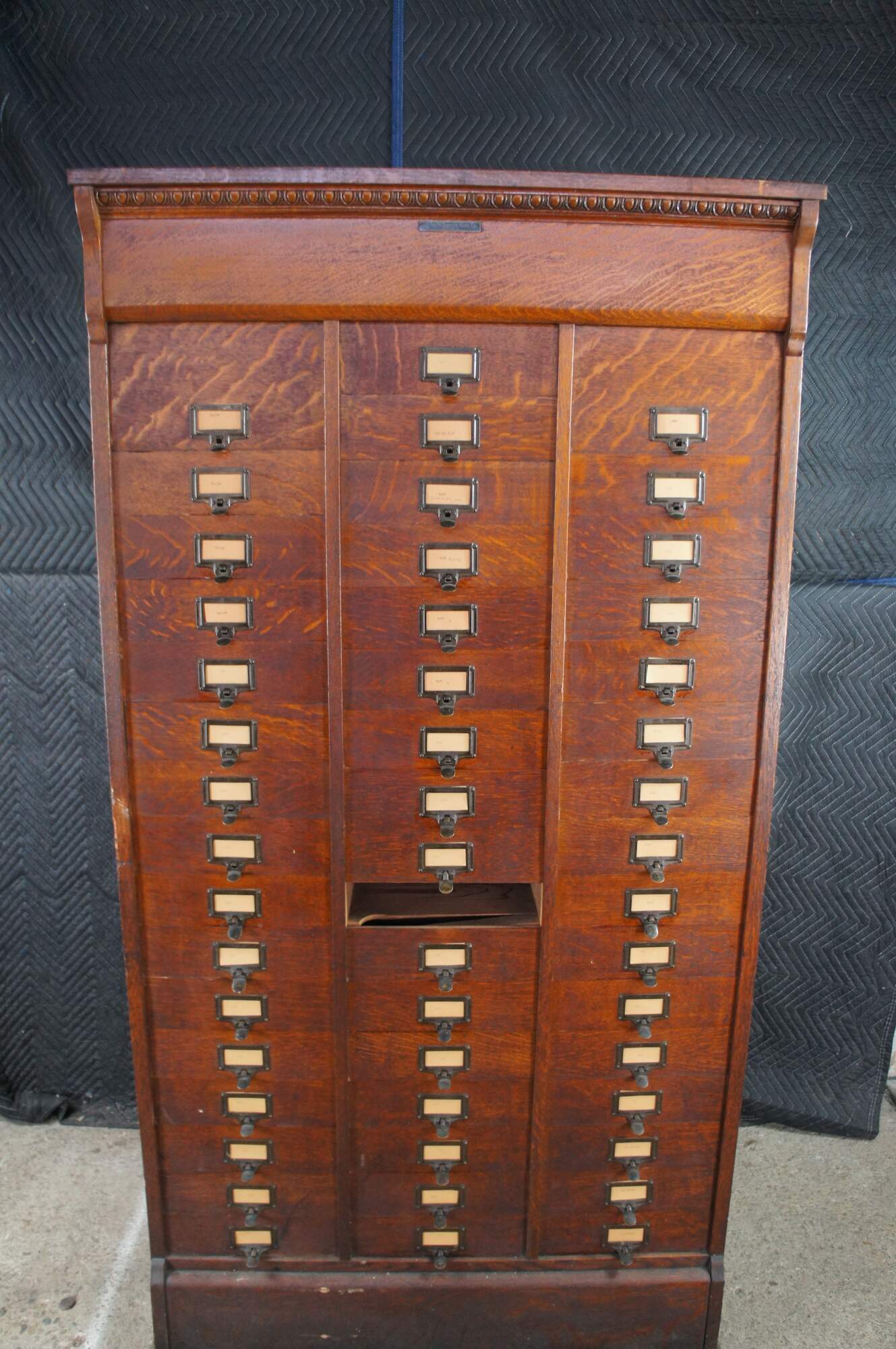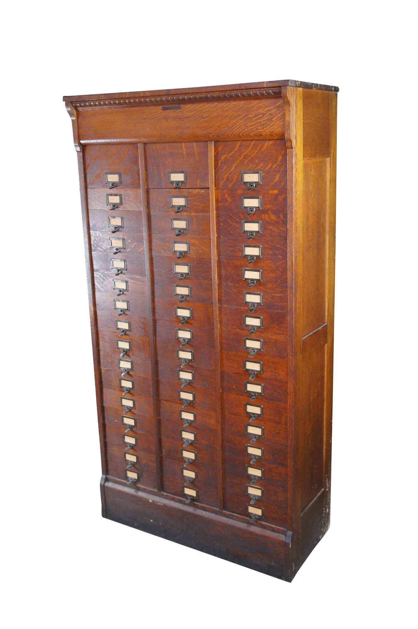 Antique Ohmers Sons 48 Drawer Oak Industrial Apothecary Amberg Filing Cabinet