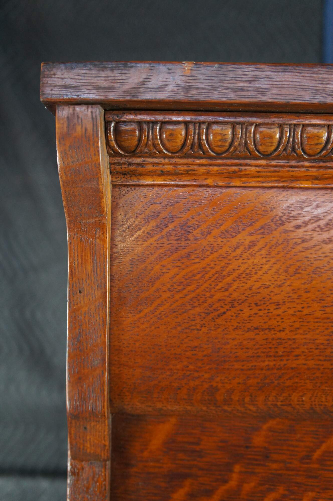 Antique Ohmer's administrative industrial apothecary office filing cabinet. Made of quartersawn oak featuring 48 slide up drawers for storage of index cards, letters and documents. The sides are paneled and the top has egg and dart molding. Previous users of this cabinet have labels reading Police, Ammo, Maps, and Dates. Manufactured by The M. Ohmers Sons Co., Dayton Ohio. Circa 1920s.