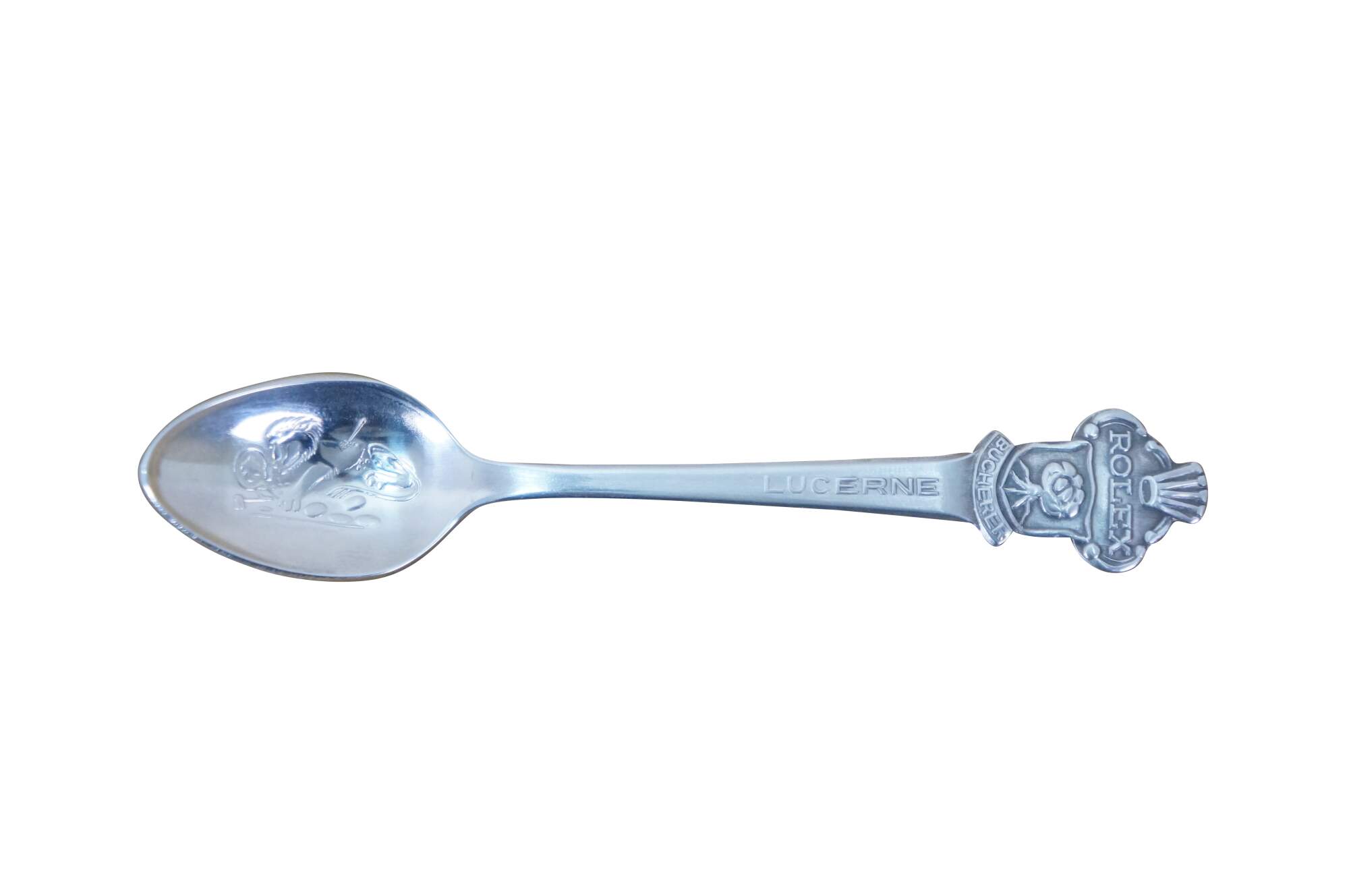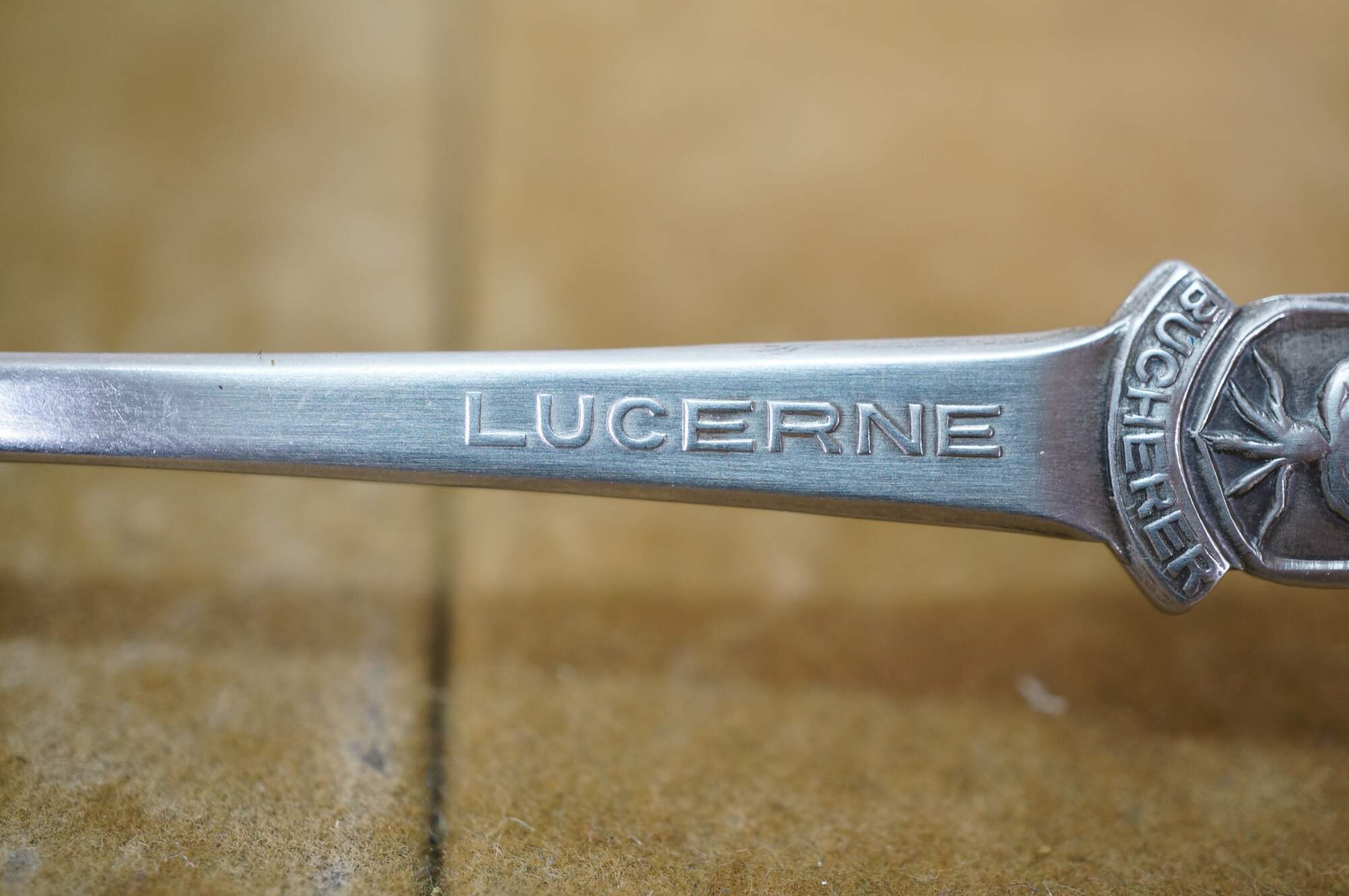 Late 20th century Rolex Bucherer of Switzerland Lucerne souvenir spoon with sleeping lion in the bowl. Marked CB.