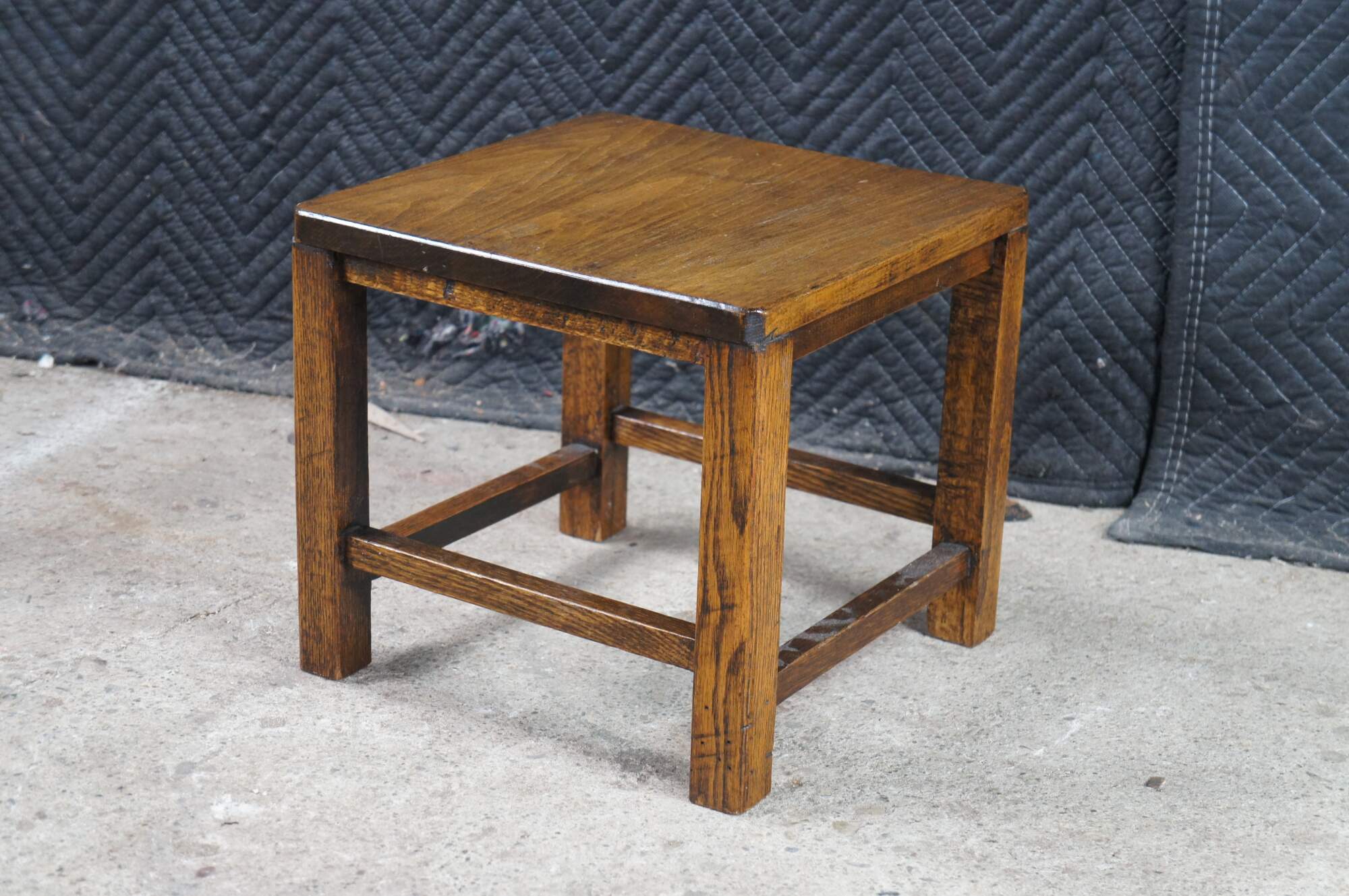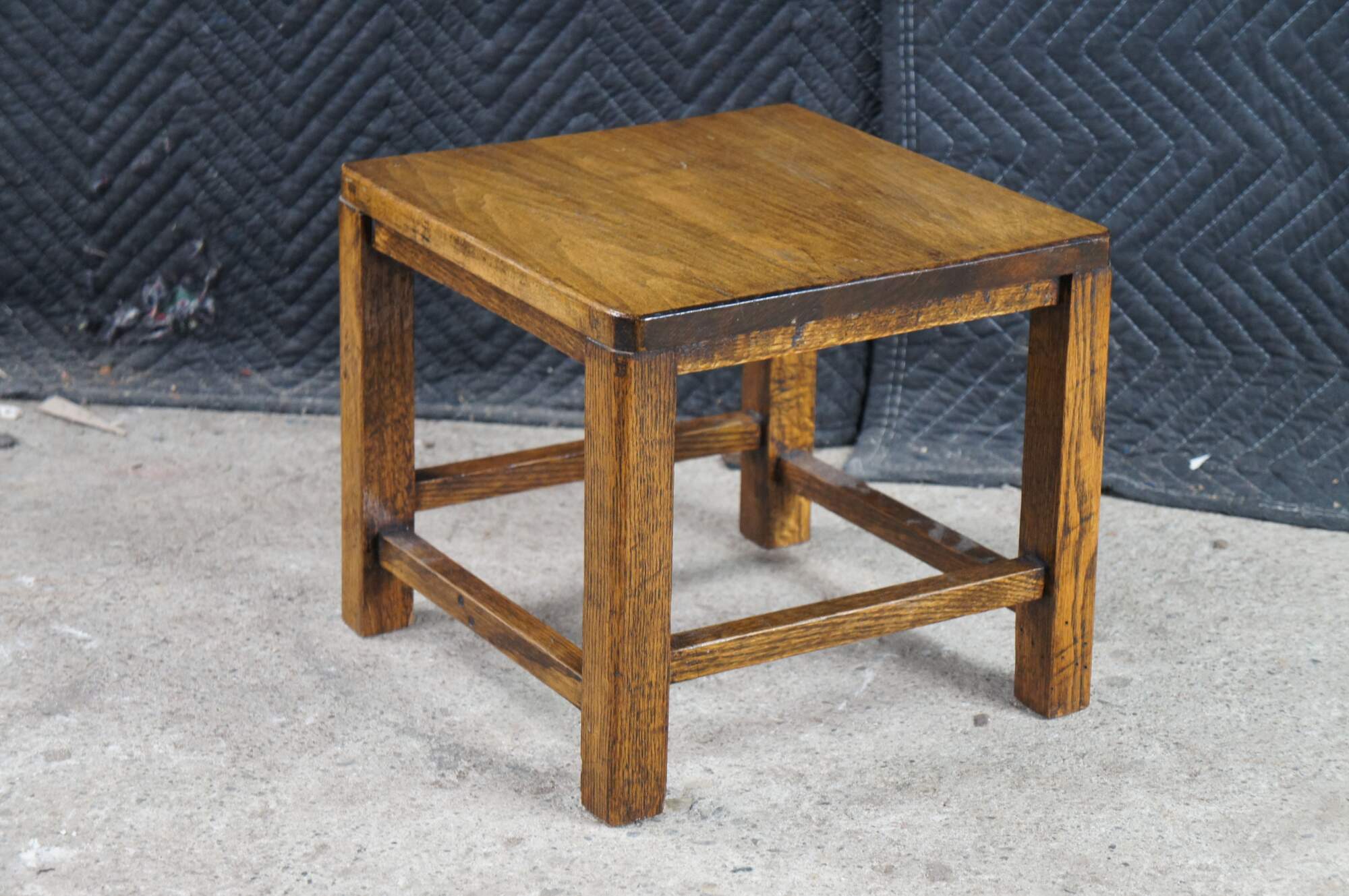 Antique 1920s Mission Arts & Crafts Oak Stool Side Table Plant Sculpture Stand