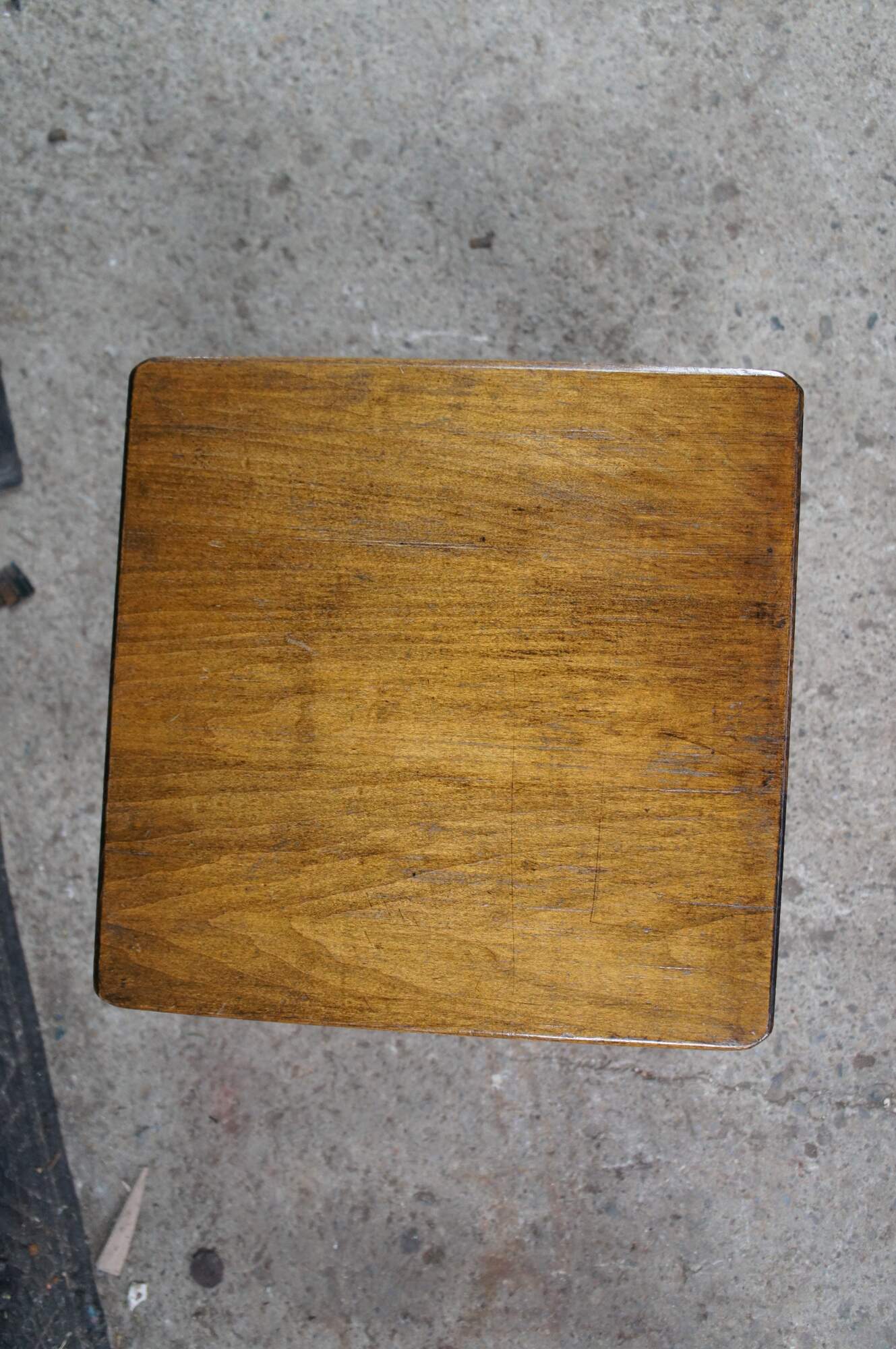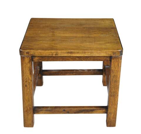 A Mission oak stool, table or stand. Made from oak with jointed legs. Given as a gift in 1929.