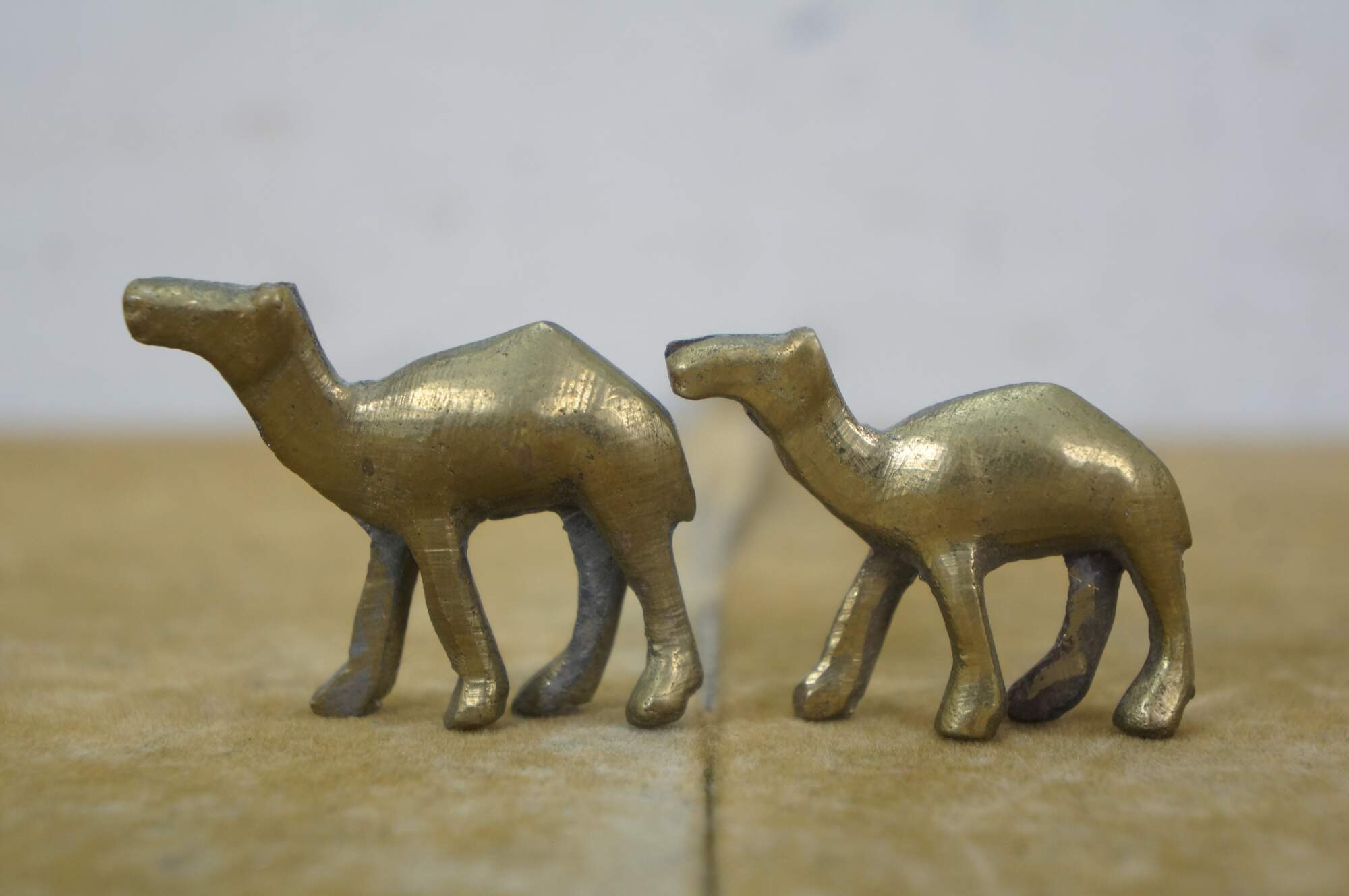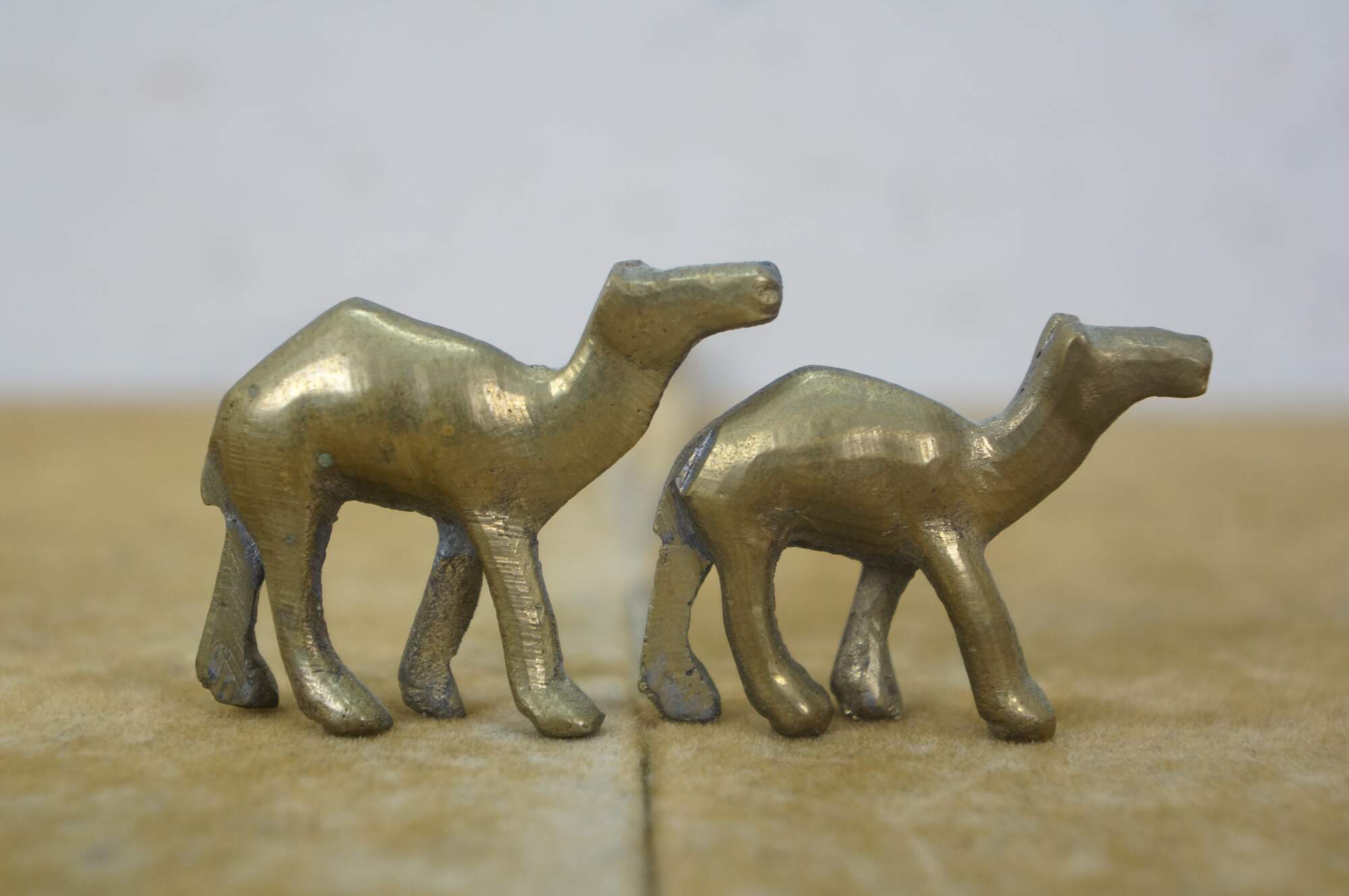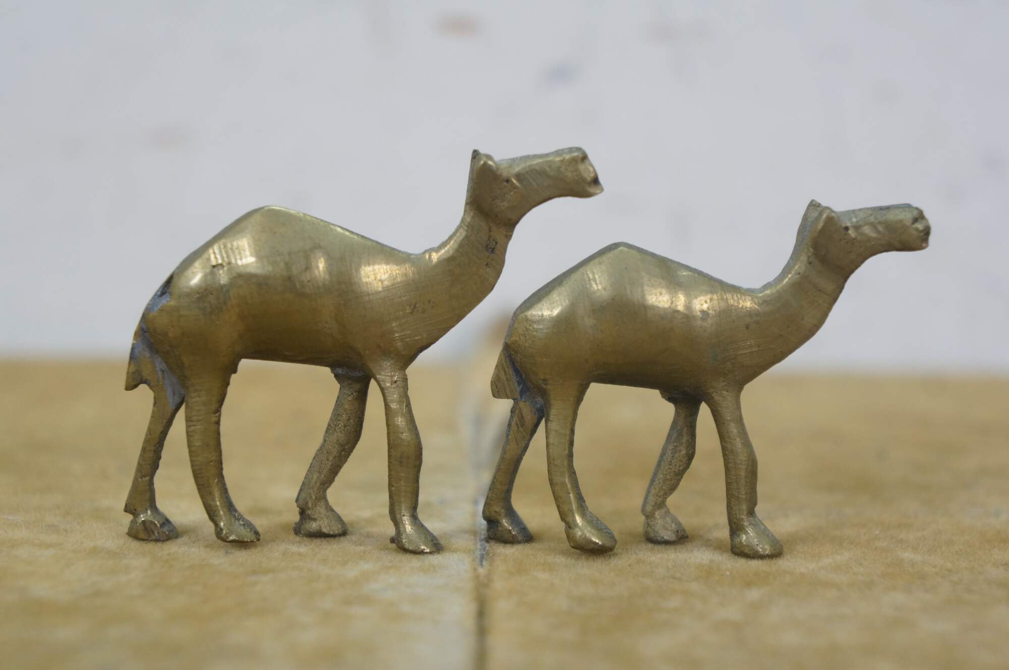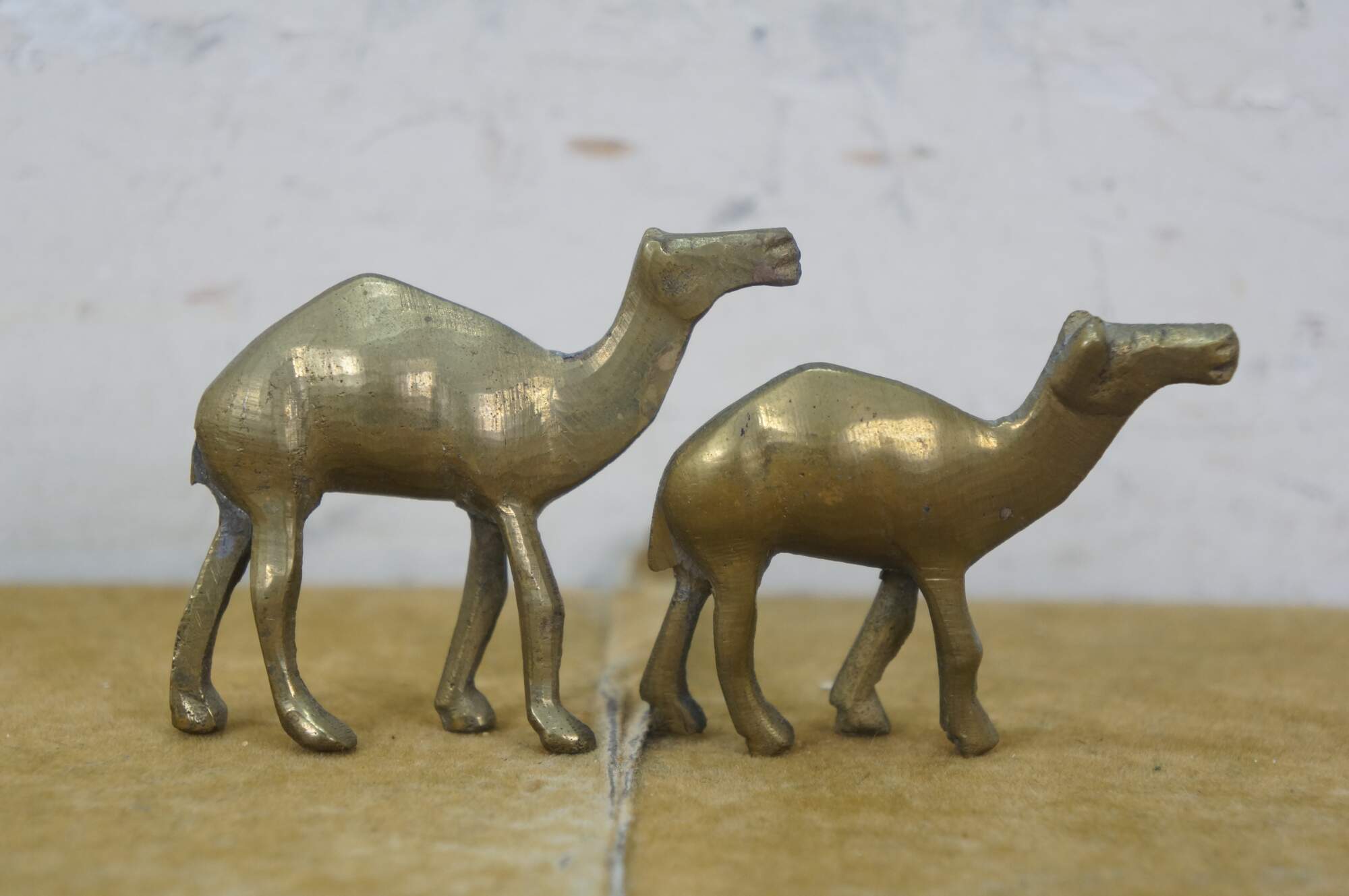 7 Miniature Graduated Brass Desert Camel Figurines Paperweights 1.5" - 2.5"