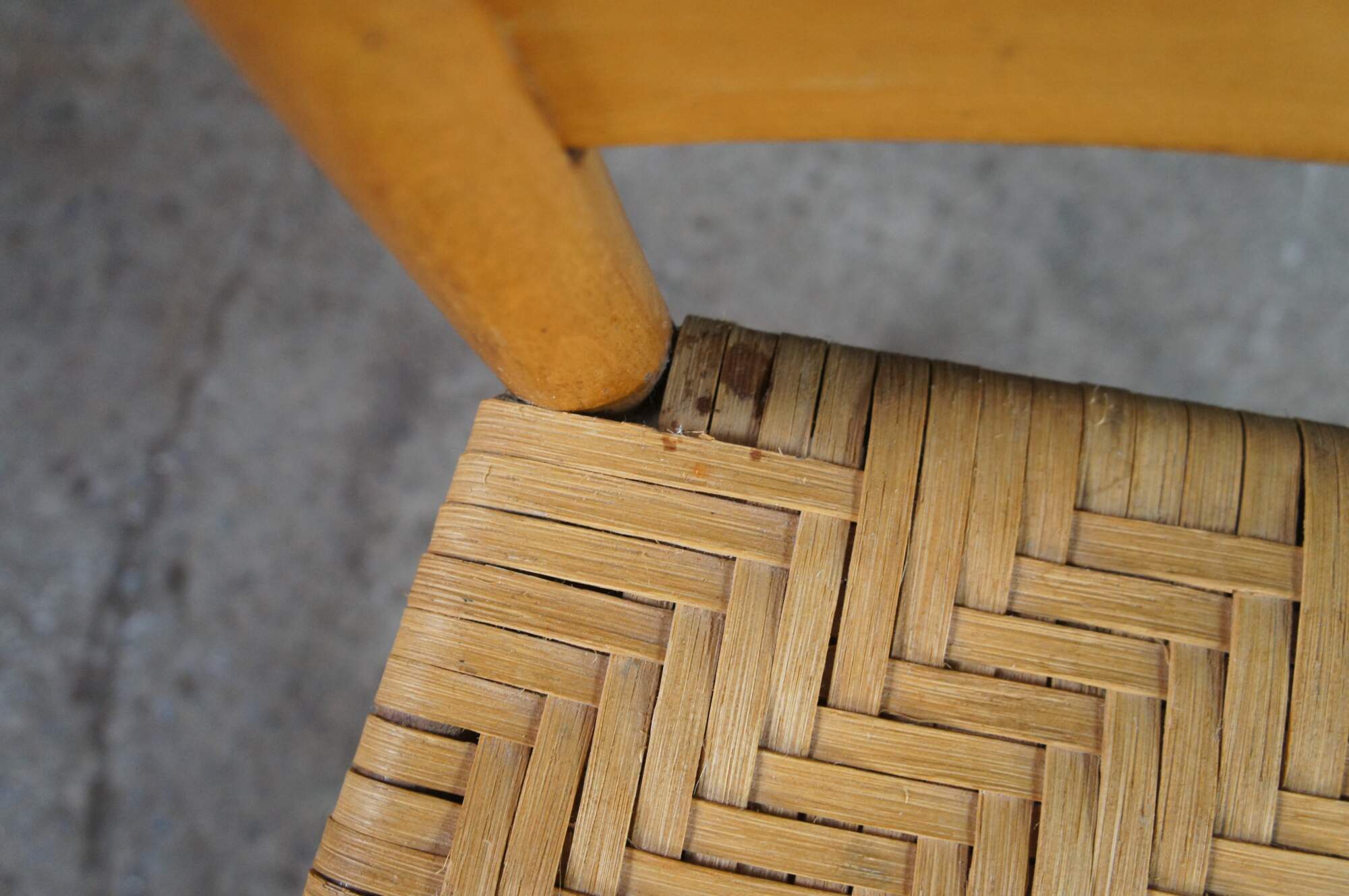 Set of 6 antique Shaker style country farmhouse dining chairs. Made of Maple featuring a woven rattan seat and ladder back design.