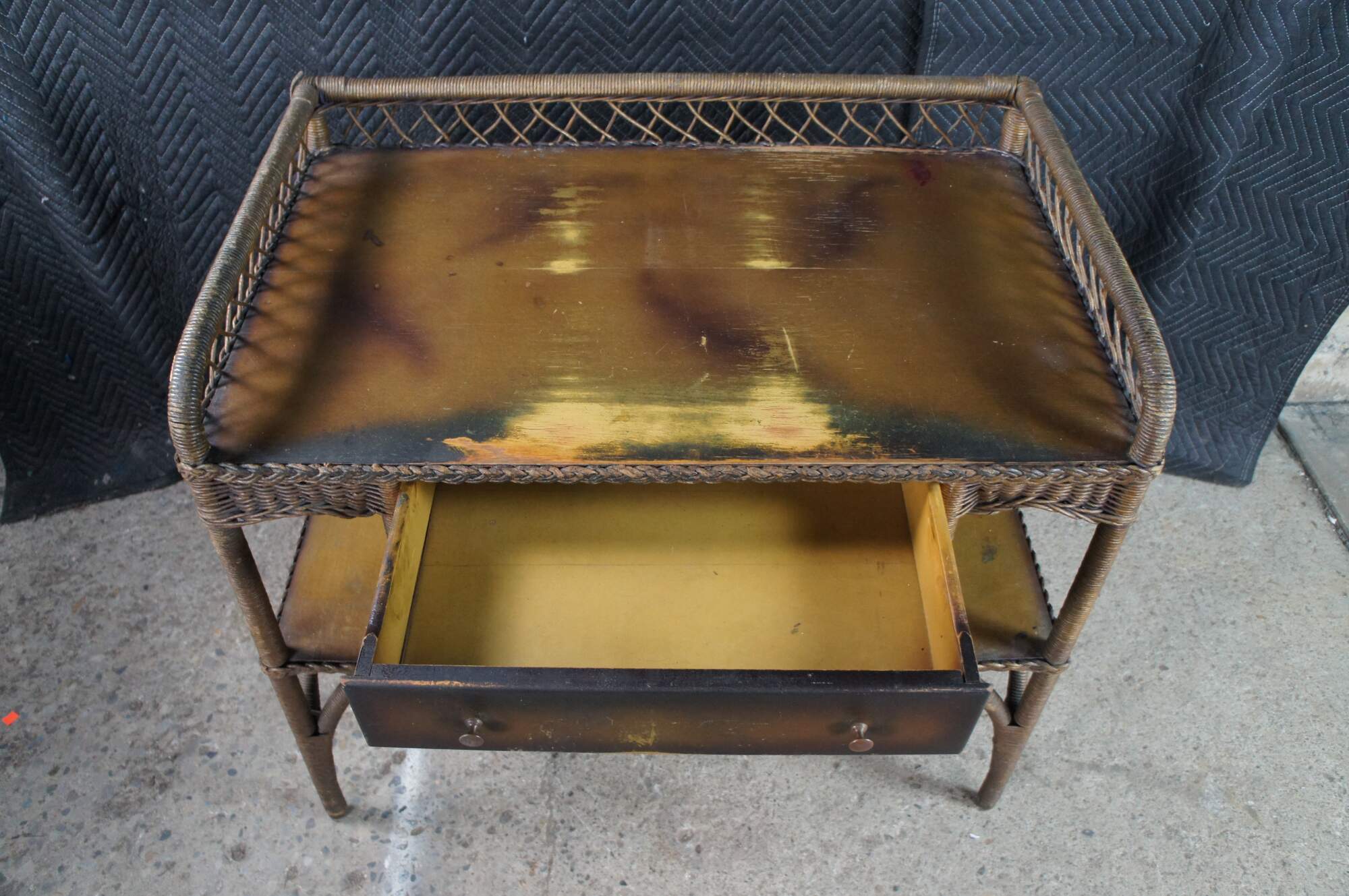 Structurally solid, heavy wear and distressing, finish loss, marking, scuffing, water damage at feet, oxidation, brakes, splits.