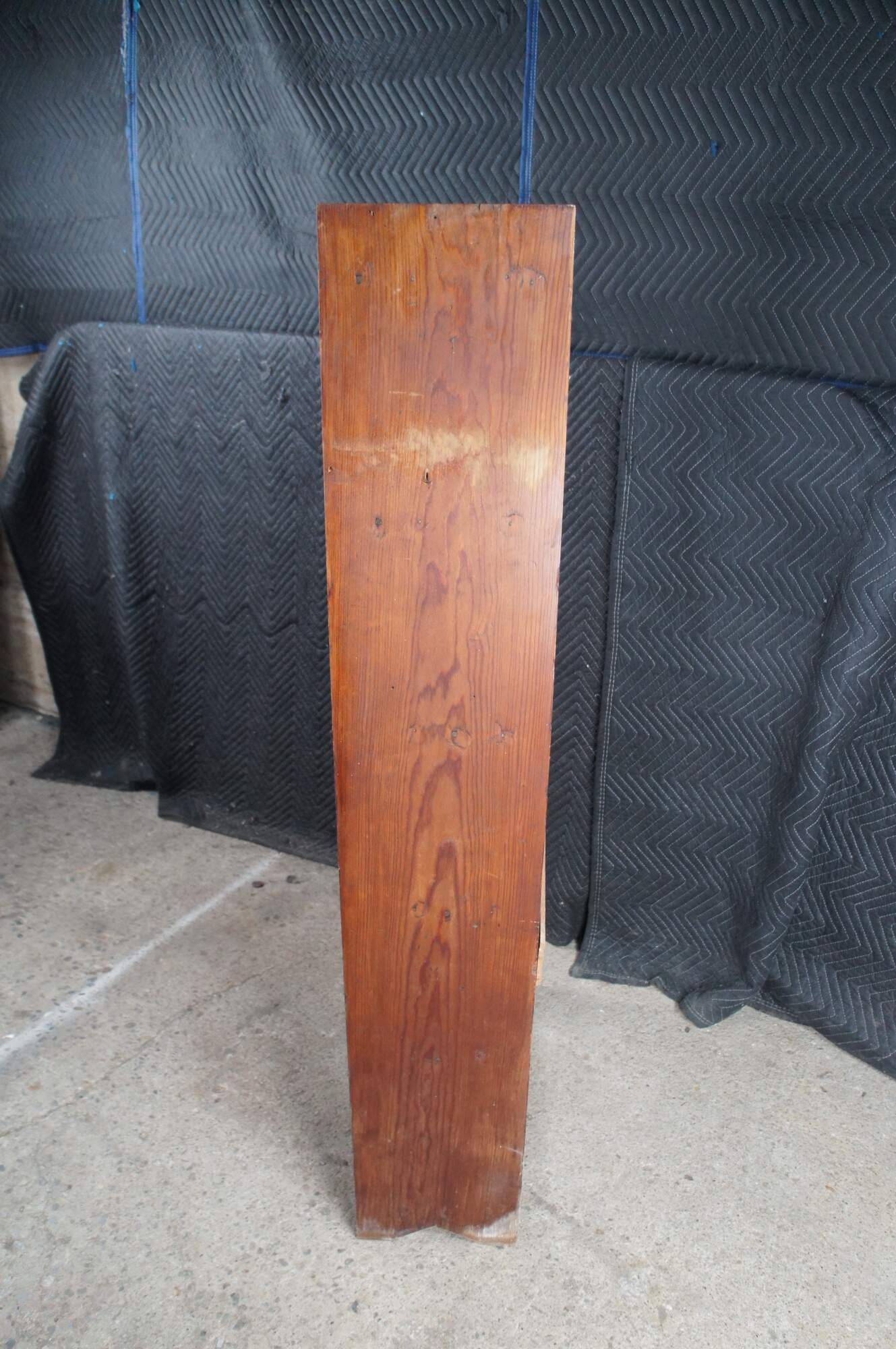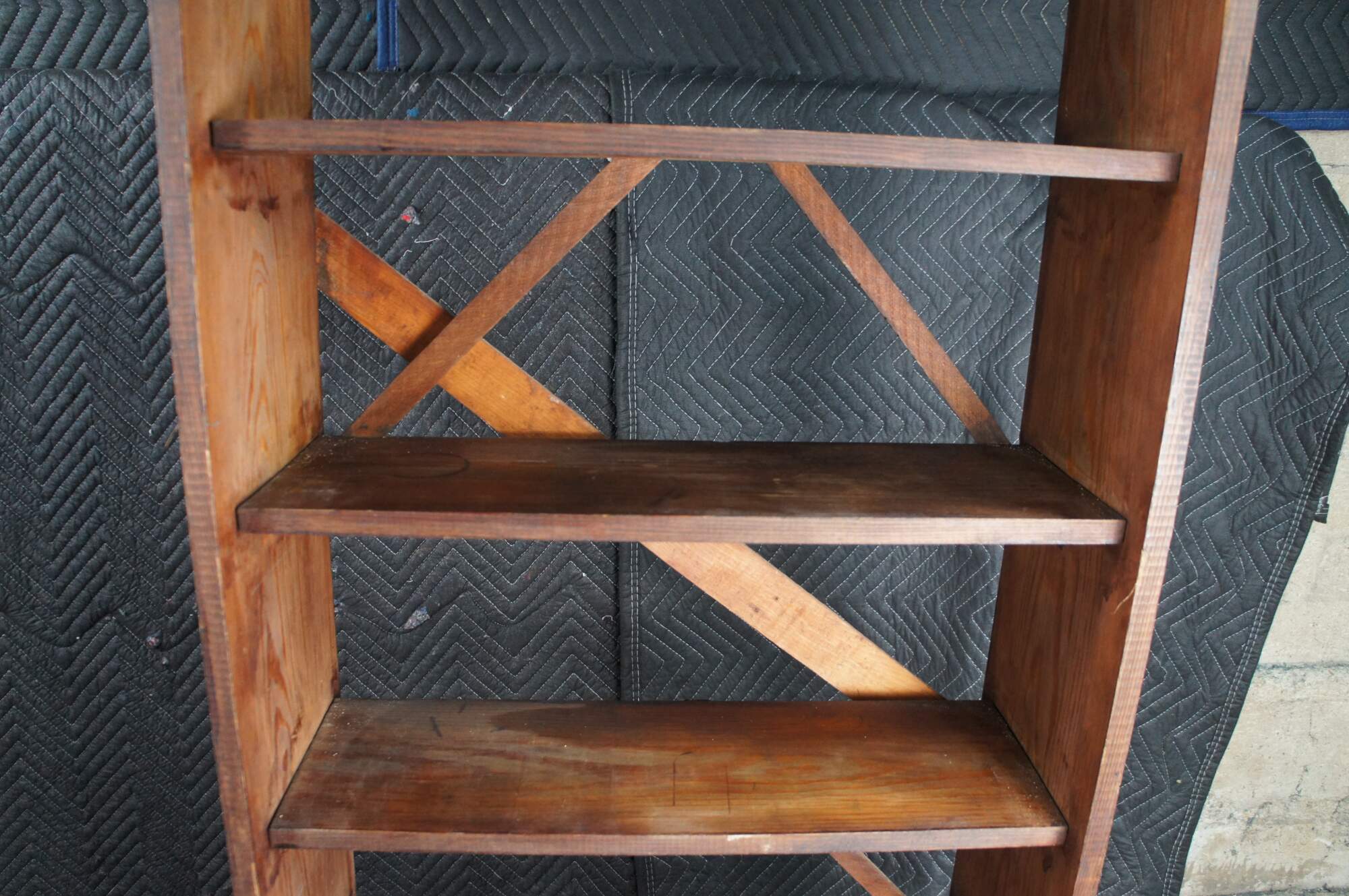 Vintage oak library book shelf featuring primitive styling with six tiers.