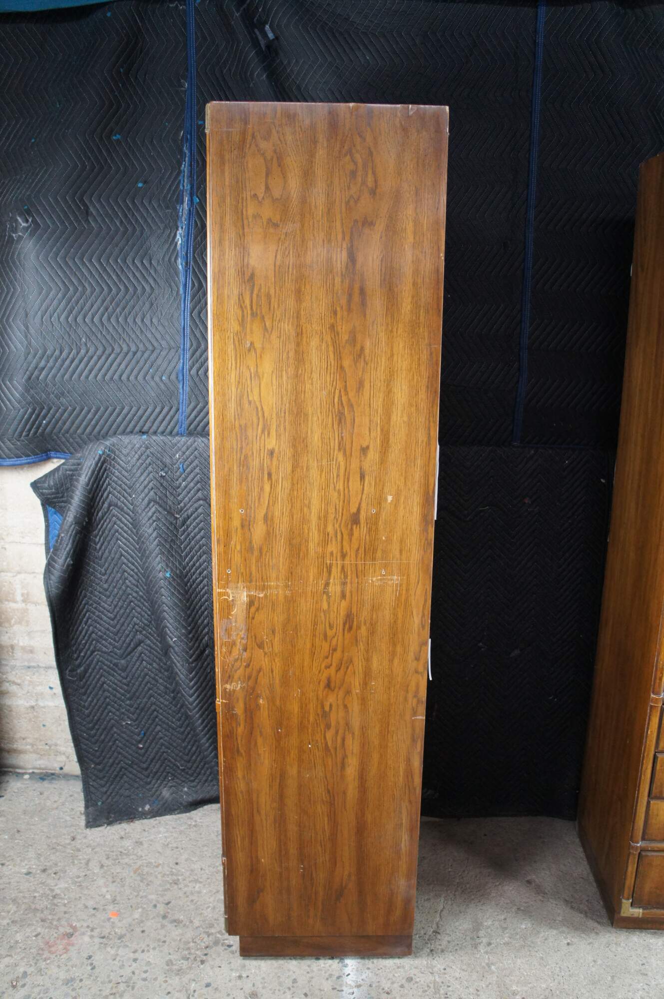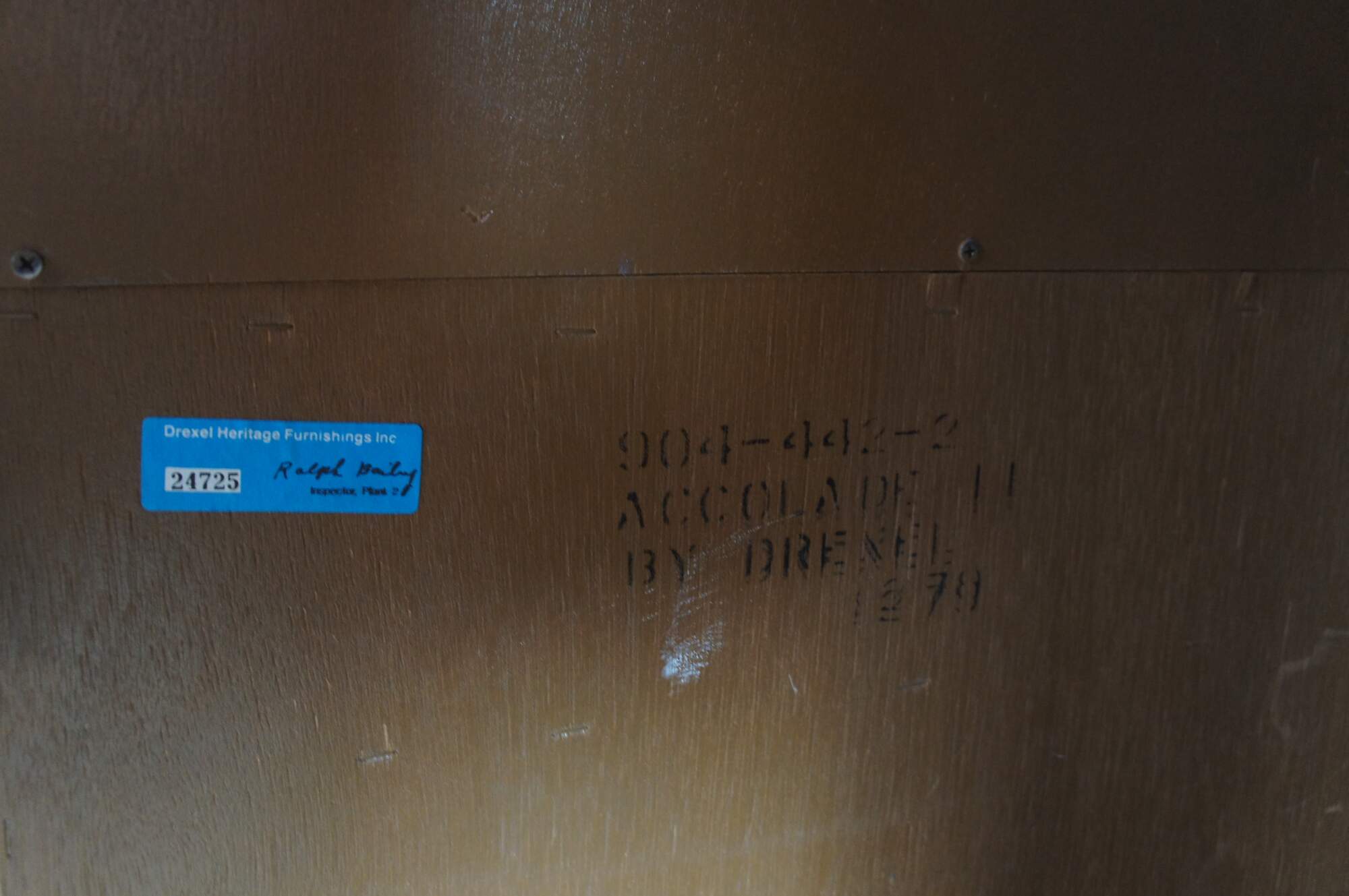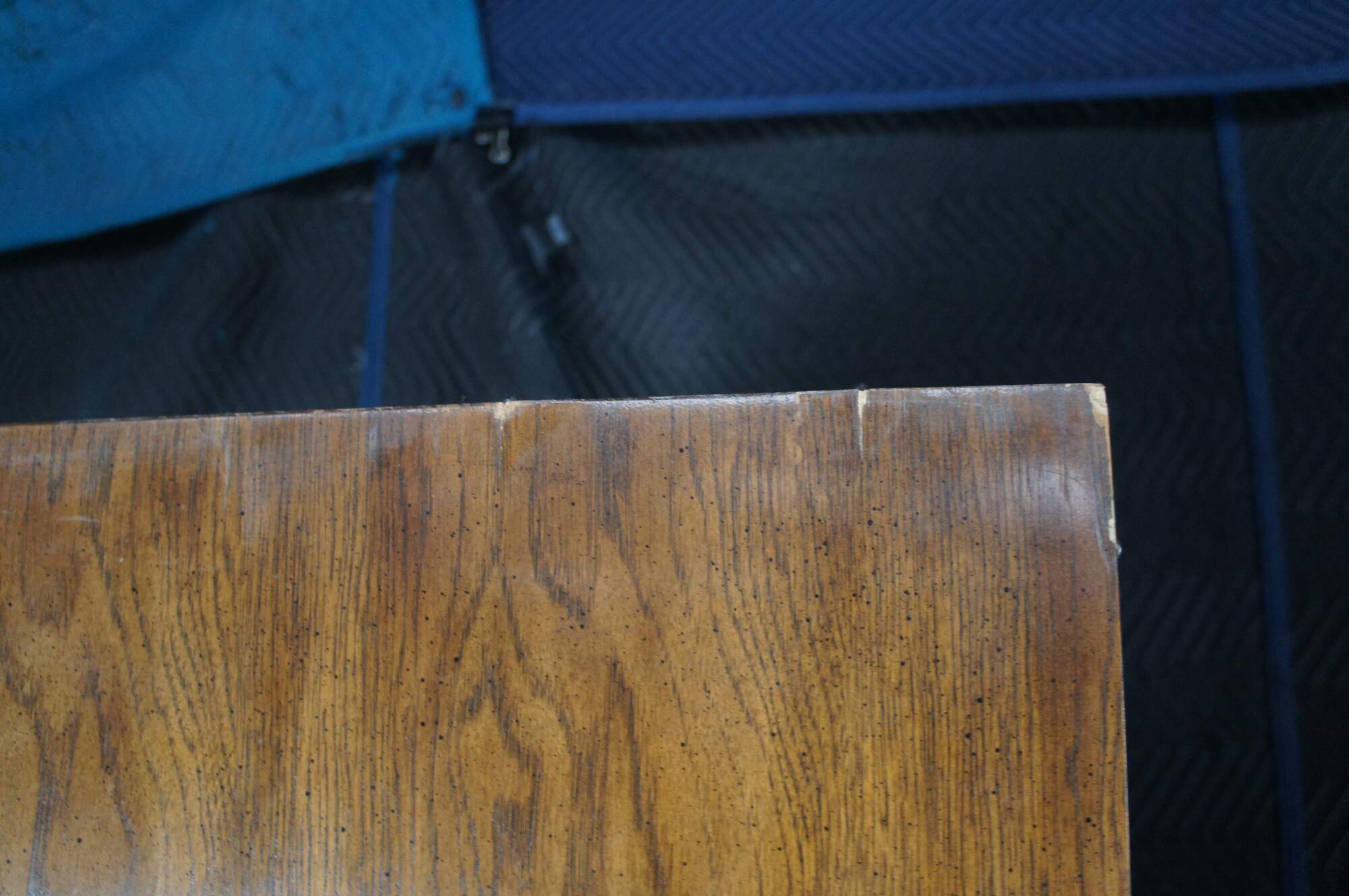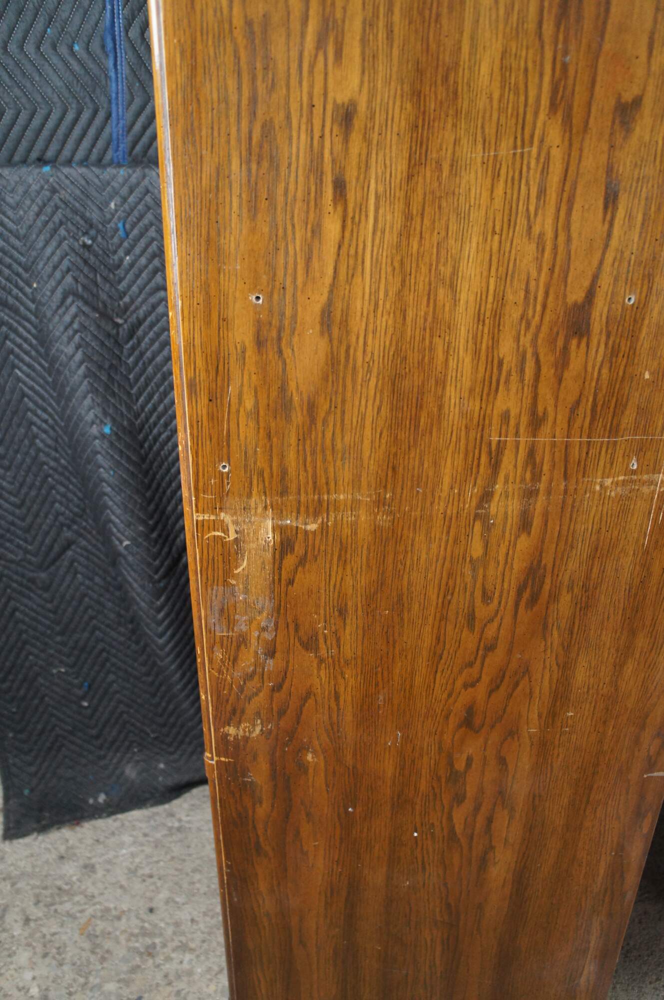 Structurally solid, distressing from use, scuffing, marking, fading, holes, veneer loss, corner / edge wear, oxidation to hardware.