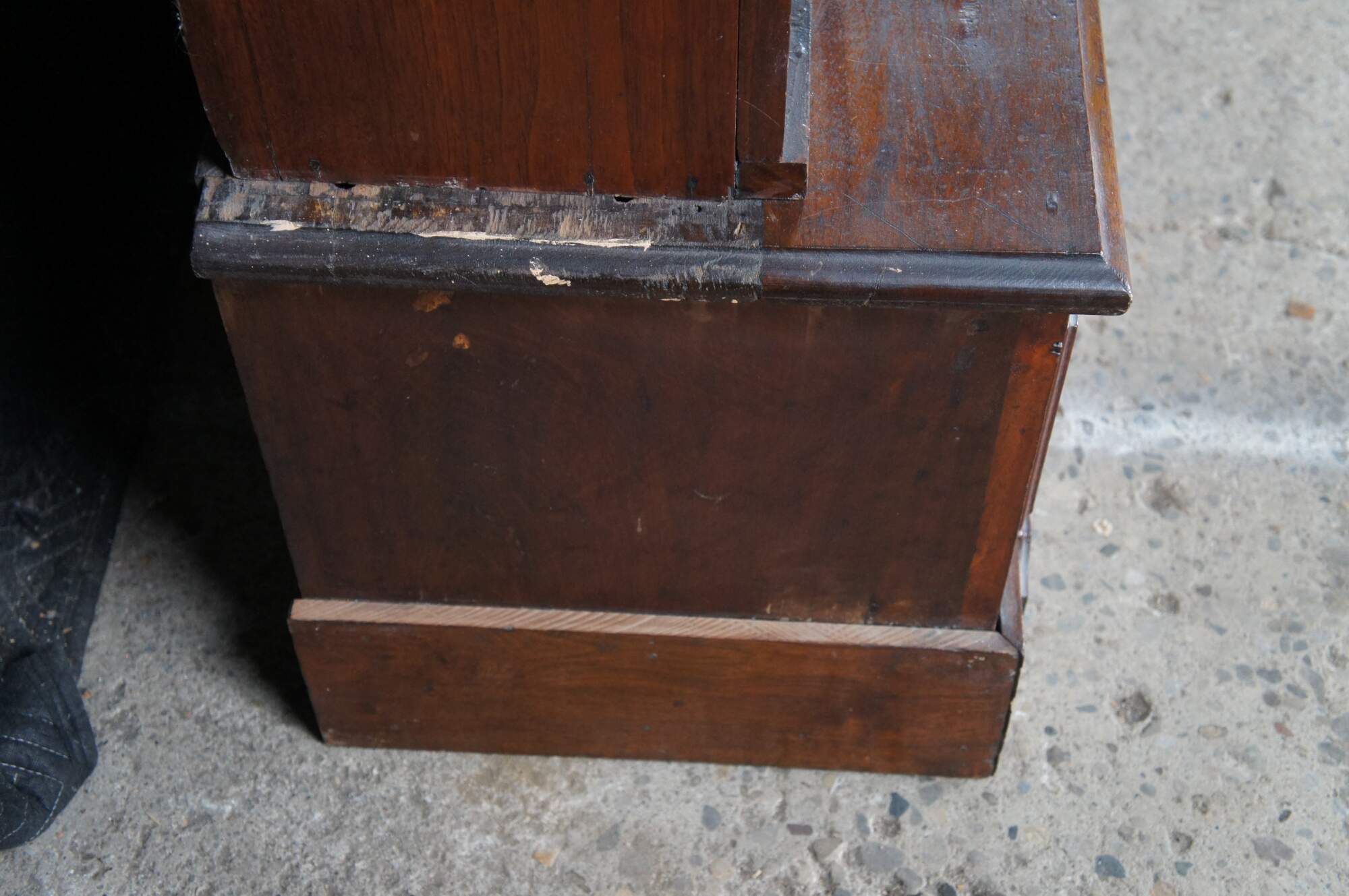 Structurally solid, wear and distressing from age and use, scuffing, fading, missing locks, missing trim, interior unfinished.