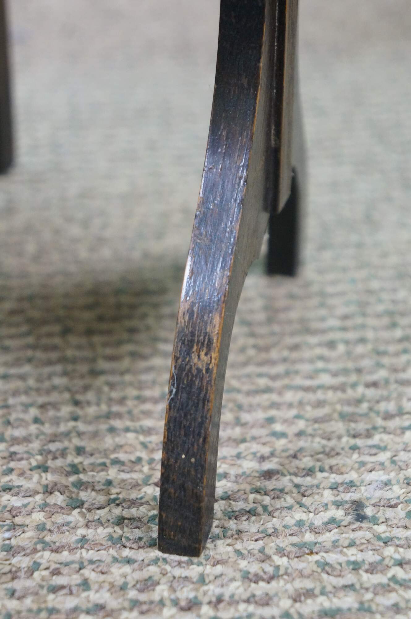 Late 19th to early 20th century Victorian / Edwardian three tier quartersawn oak dessert display stand. Rectangular frame with oxbow handle, with three round folding tiers.