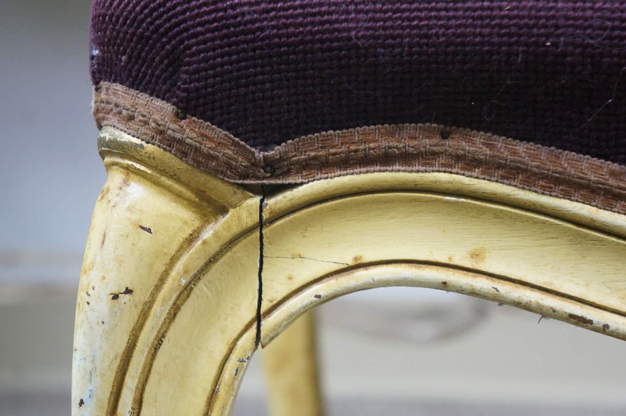 Scuffs/wear/finish loss/staining to legs; wear/fading to top; splitting