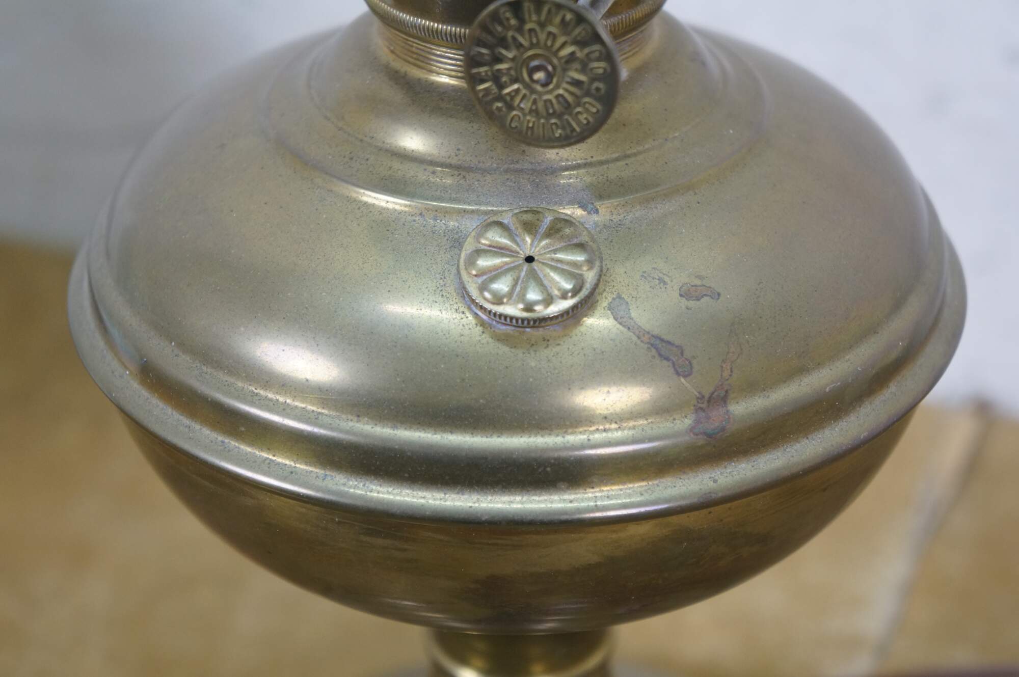"As a small boy on a farm in Nebraska, Victor Samuel Johnson (Feb. 6, 1882 – Aug. 29, 1943) read the Arabian Nights story of Aladdin in a room of darkness except for the flickering yellow light of an open flame coal oil lamp. Later, as an adult, he found a new, bright light – it was called the “Practicus” from Germany. Johnson obtained rights to sell this lamp and then improved on its design. He would go on to call his new lamp the “Aladdin,” from the stories of his childhood, and the rest, is history. 1908 – Victor S. Johnson founded the Mantle Lamp Company of America in Chicago, Illinois and obtained the Aladdin trademark. An incandescent burner called the Practicus (or Praktus) was imported from Germany and is first sold under the Aladdin name. 1909 – The first model of the American-made Aladdin lamp was sold. 1911 – First mantle designed and patented by Charles H. Smith for Aladdin, called the Kone Kap mantle, first used on Model 3. 1915 – The Aladdin Model 6 lamp won a gold medal at the Panama Pacific International Exhibition for the best kerosene lamp in the world. 1926 – The name of the company was changed to Aladdin Industries. Johnson bought the Lippincott Glass factory in Alexandria, Indiana to make glass lamps, chimneys and shades. A factory was built on a 13-acre site, which was incorporated into a village called Aladdin with 22 residents. Agents were recruited to sell throughout the country door-to-door, leaving lamps in the home for an overnight trial. 1928 – The company turned solely to franchise dealers (some 15,000 in the 1930s). Model 12 introduced the first Lox-On chimneys and the first Lox-On mantles. 1930 – Electric lamps first sold. 1931 – The Lox-On Mantle is patented. 1932 – Model A introduced a switch from central draft to “Nu-Type” side draft burners; with the center draft tube removed, lamp fonts could now be made of glass as well as metal. 1937 – Ohio River flooded Louisville and Cincinnati; Aladdin rushed lamps to thousands stranded without power. 1944 – Aladdin aided the war effort in WWII: they were granted permission by War Production Board to use copper to make burners which reduced need for copper wire to electrify homes; burners used in Servel refrigerators helped preserve serum and plasma on the battlefields; Aladdin also developed the midget foxhole stove, pressure lantern, barometric bomb detonation fuse, and permeability tuning for radios and precision parts for military radio equipment. 1945 – Victor S. Johnson, Jr. returned from service and took over, following the sudden death of his father in 1943. 1949 – The Mantle Lamp Company merged with its subsidiary Aladdin Industries, Inc. The company moved the central office from Chicago to Nashville, Tennessee. 1955 – Naugatuck River floods the Plume & Atwood fabricating plant, destroying all plant equipment, bringing an end to the production of the popular Model B burner. 1956 – Production of electric lamps ended. 1963 – Brass lamp manufacturing moved from USA to England. 1973 – Aladdin Knights collector organization is formed to collect and preserve memorabilia. 1977 – Burner manufacturing began in Hong Kong. 1999 – Aladdin Industries sold the lamp division to 14 members of the Aladdin Knights (collectors/investors), who changed the name of the company to Aladdin Mantle Lamp Company (headquarters located in Clarksville, Tennessee). 2015 – Crownplace Brands, Ltd. purchased the assets of Aladdin Lighting Technologies, Inc (ALT); all stock and assembly were relocated to Dalton, Ohio." (Source: Aladdin Lamps)