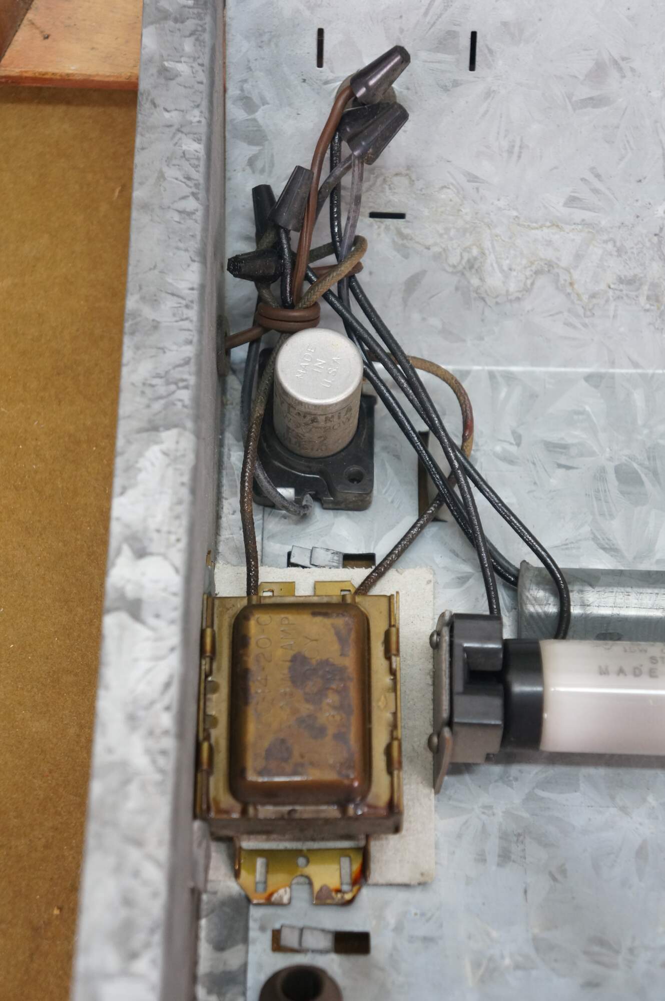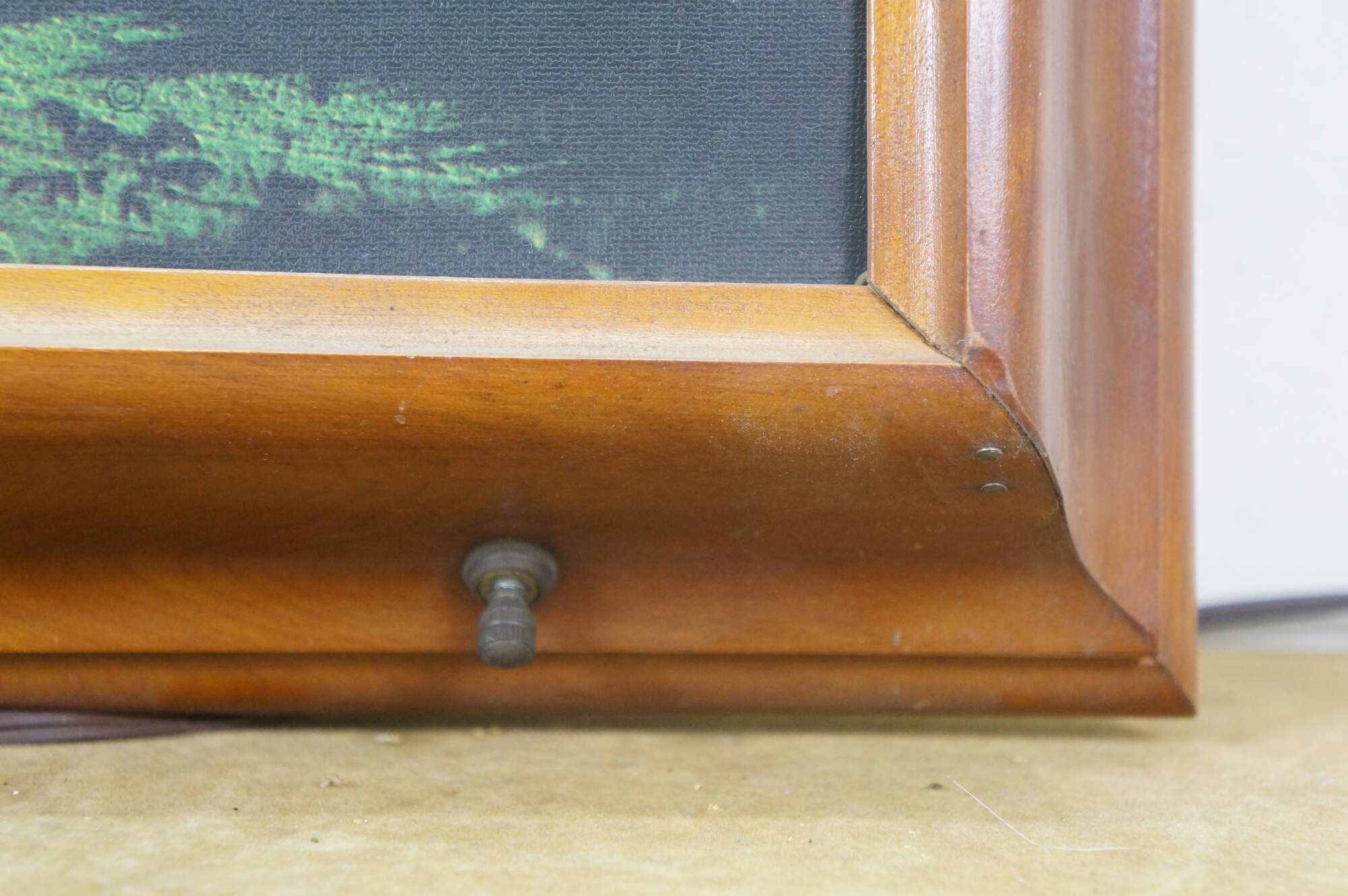 Wear and distressing; marking / scuffing; slight gaps at corners; needs new bulb