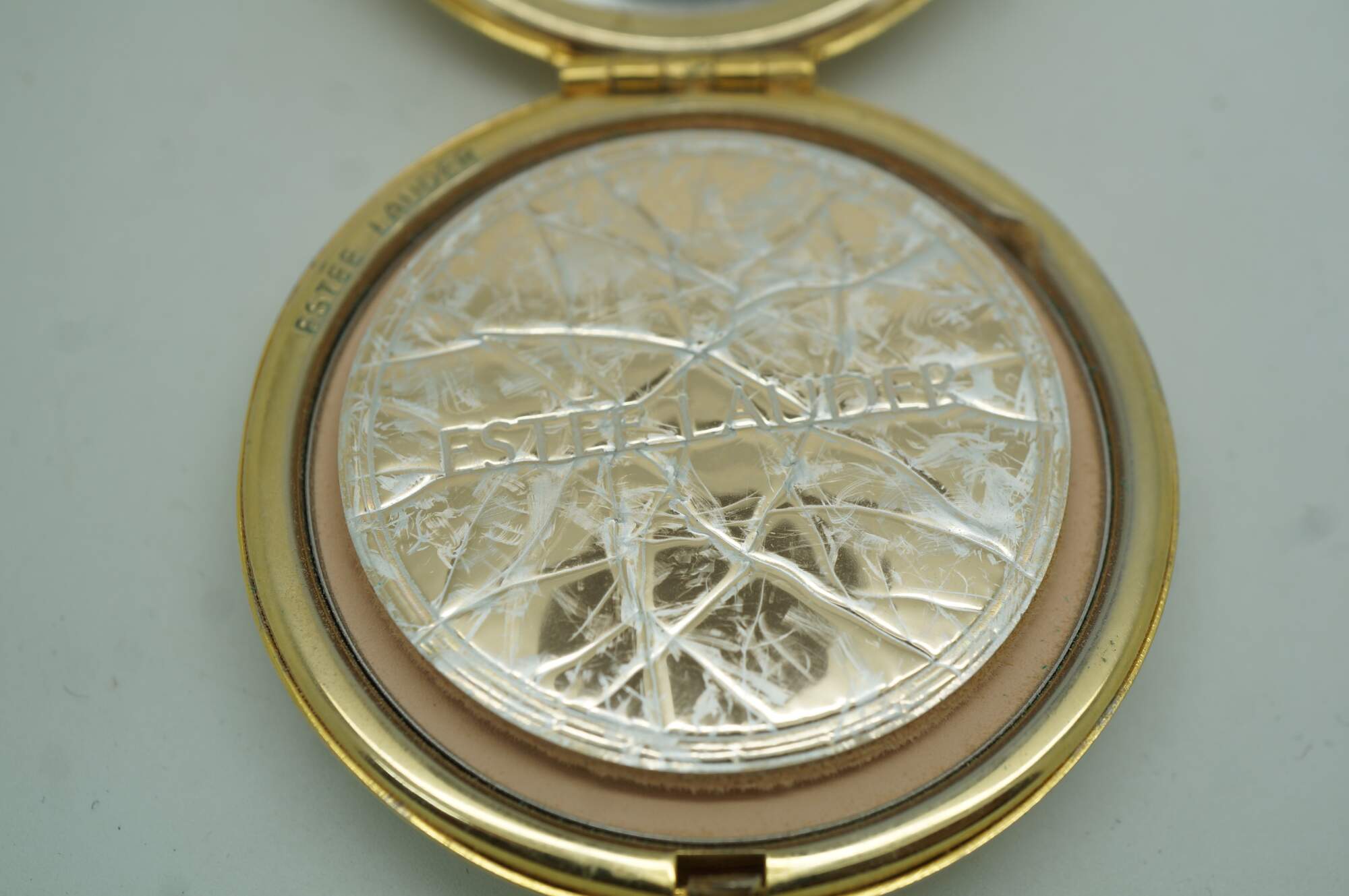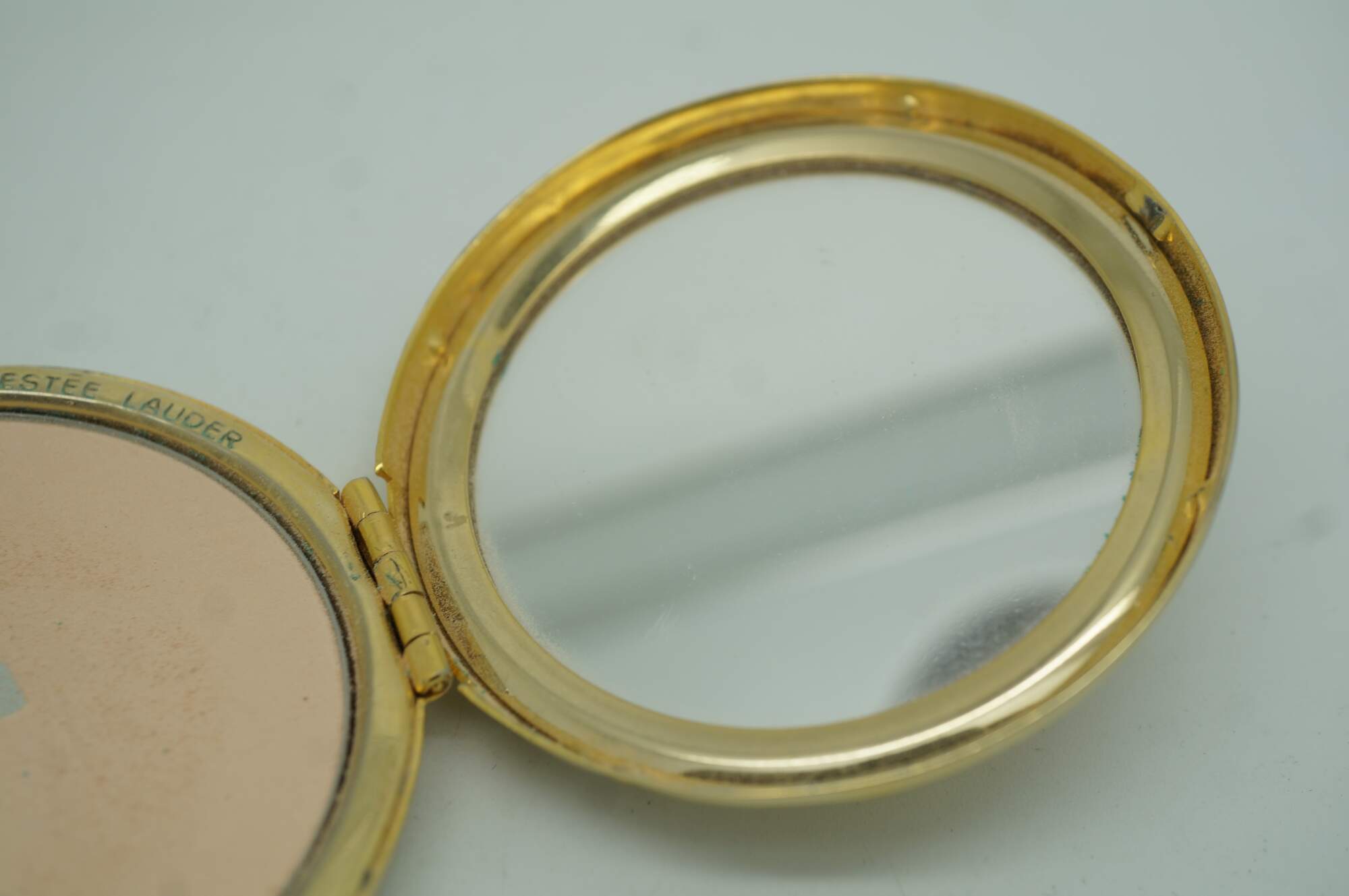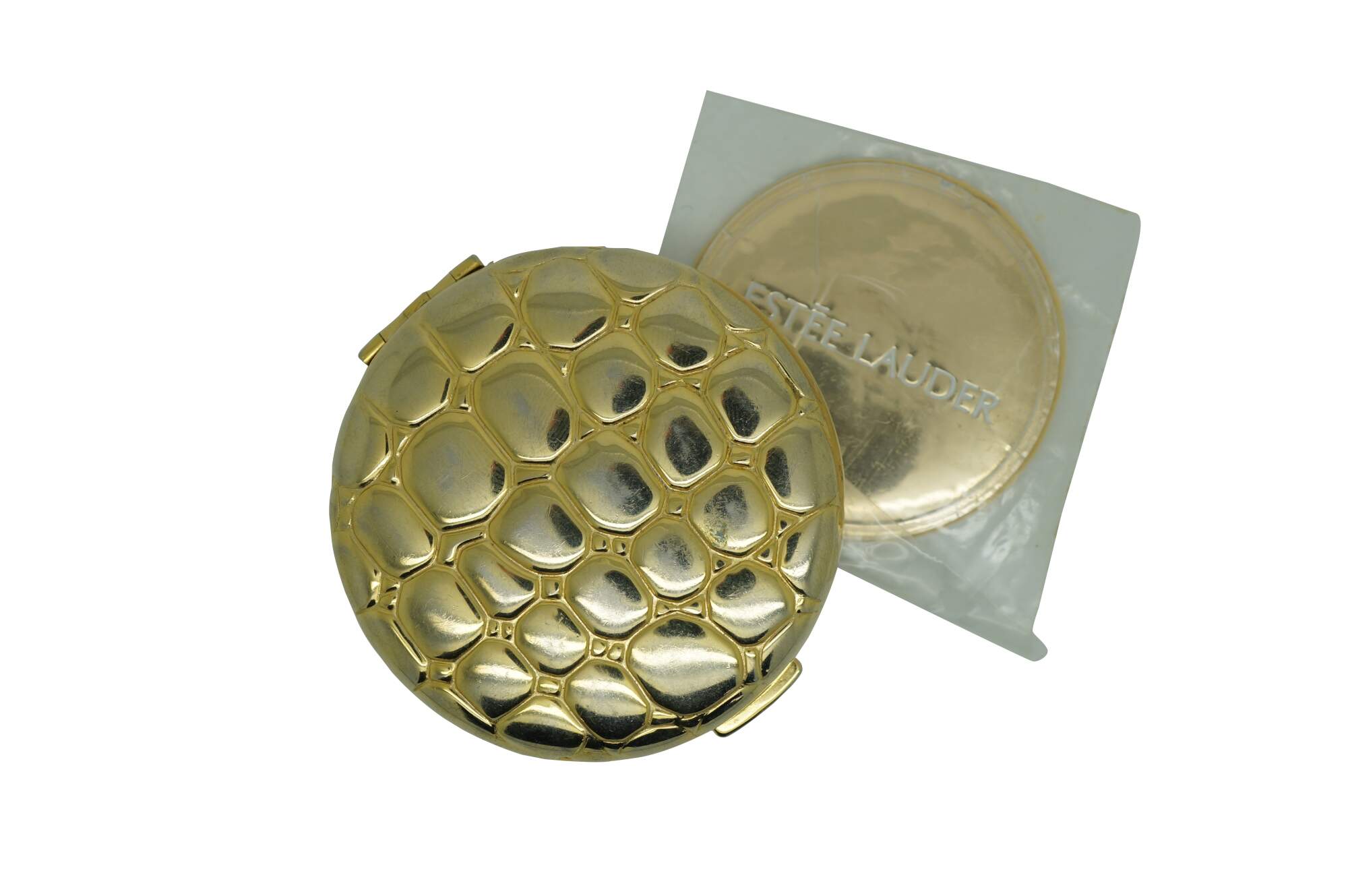 Vintage Estee Lauder solid powder gold tone makeup mirror compact .