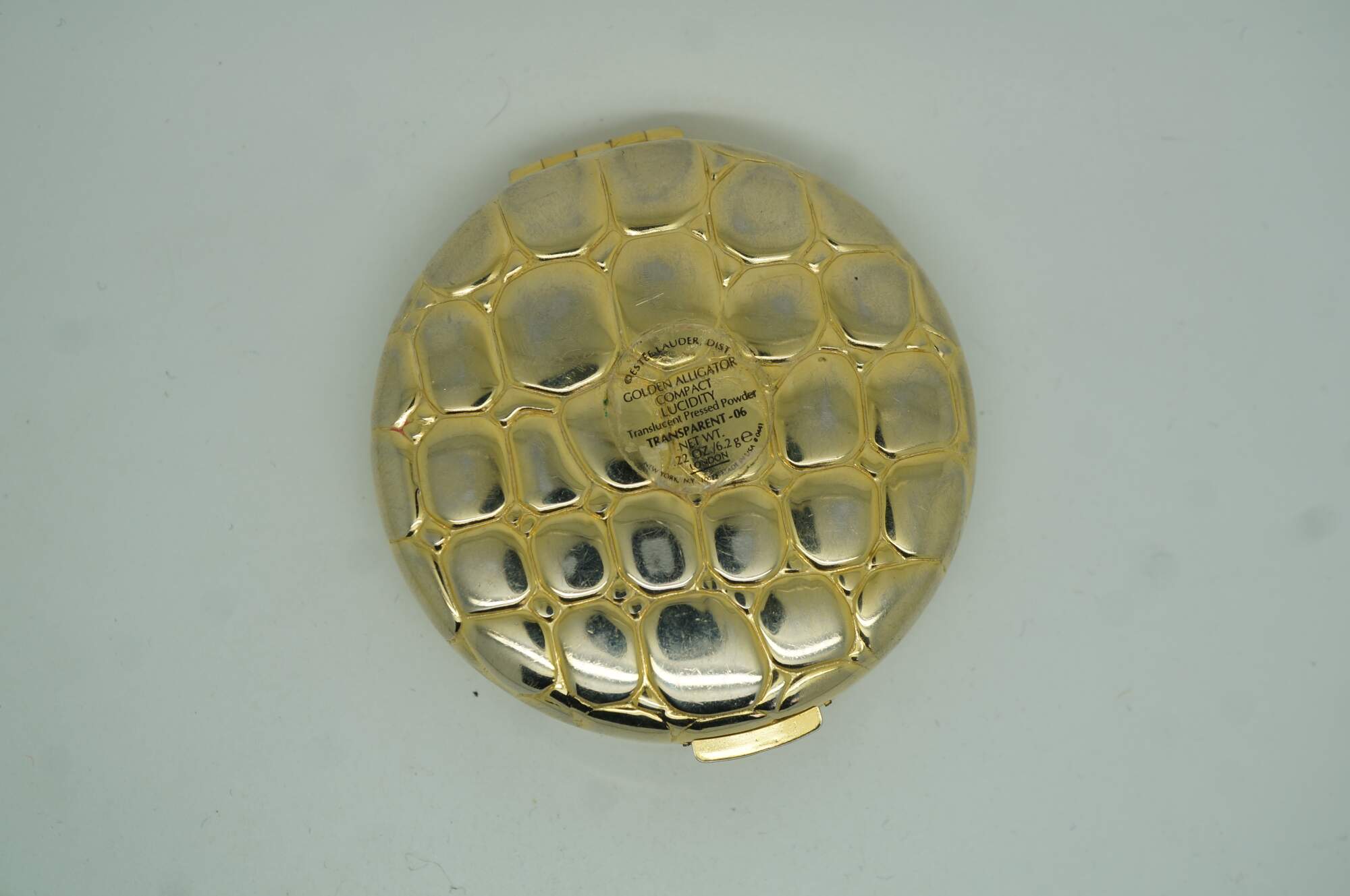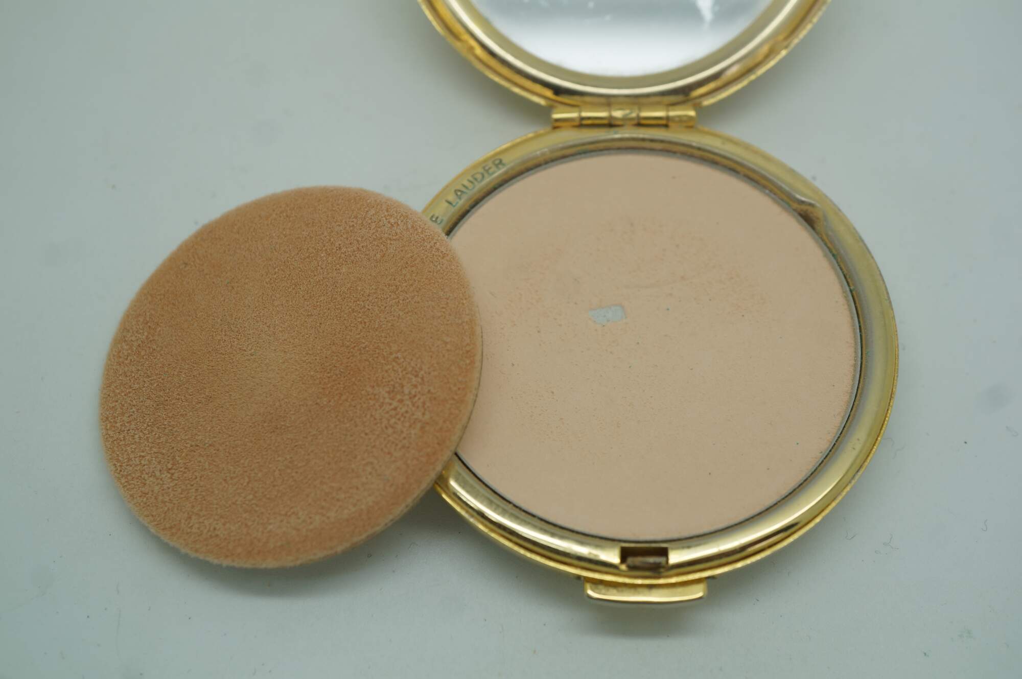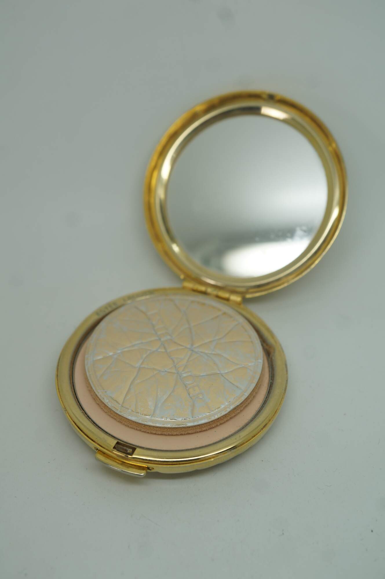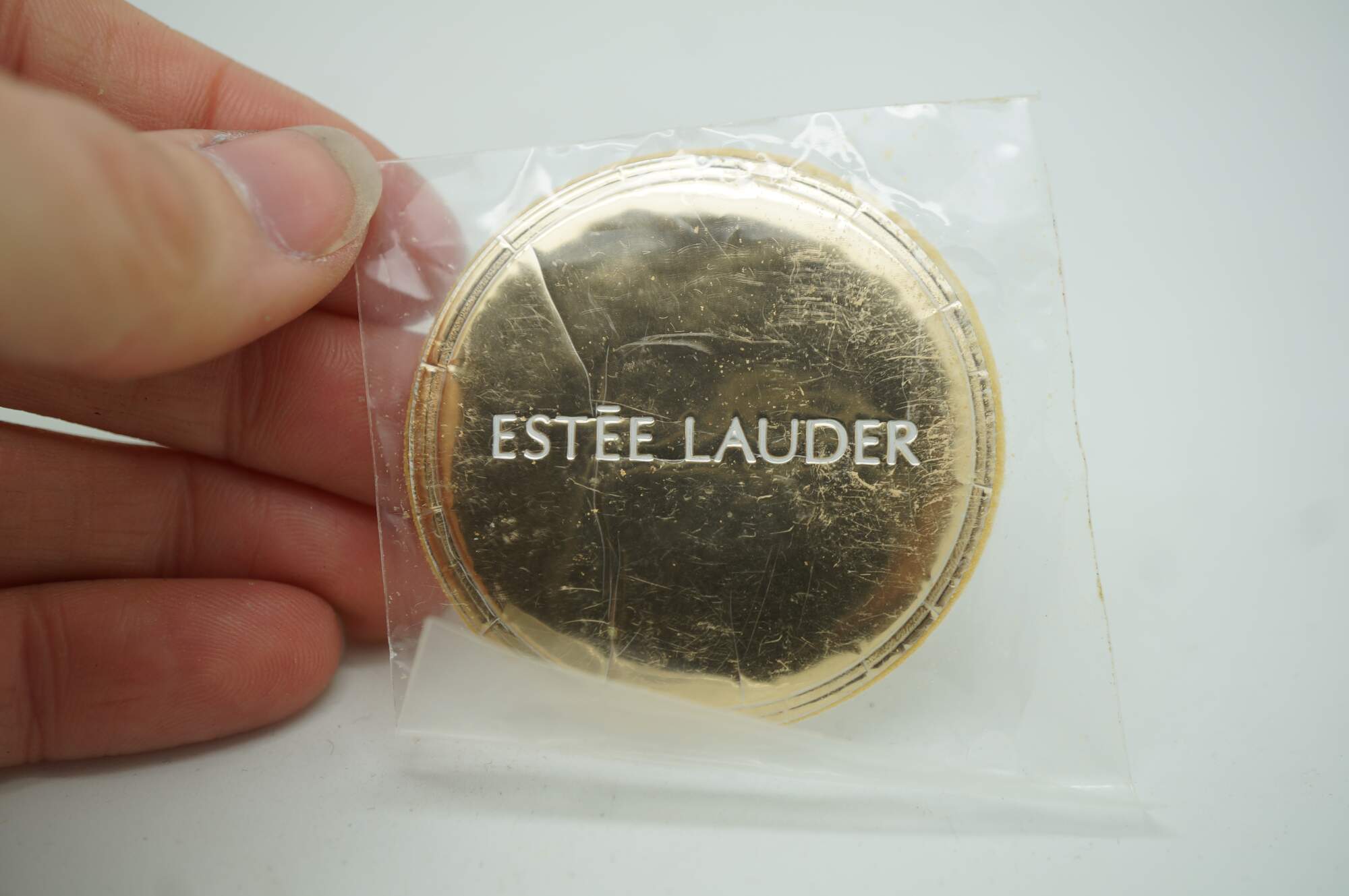 Vintage Estee Lauder solid powder gold tone makeup mirror compact .