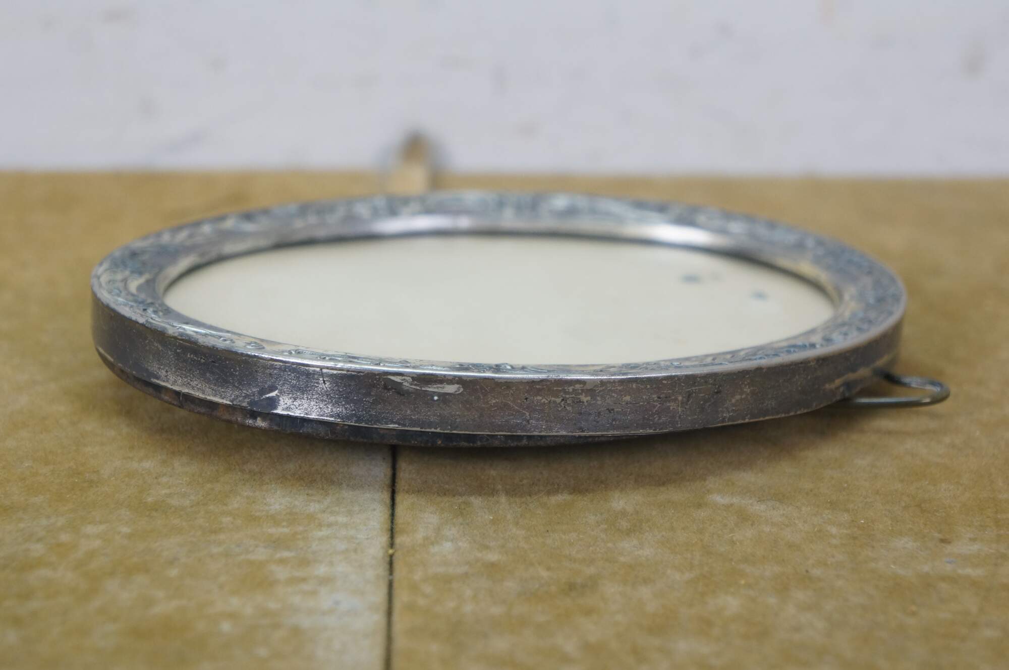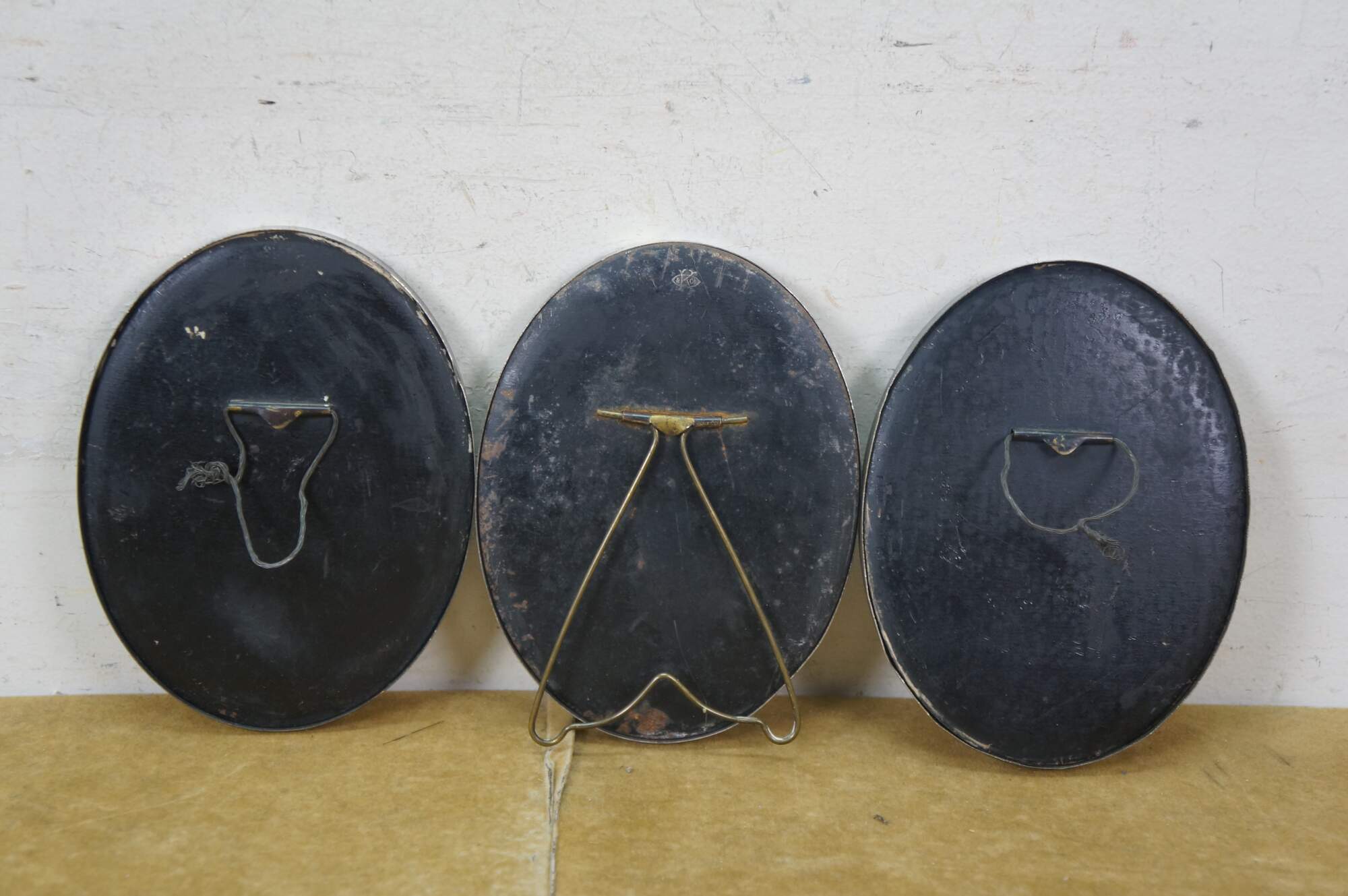 Vintage set of three antique silverplated floral acanthus picture frames. Two wall hanging, one tabletop.