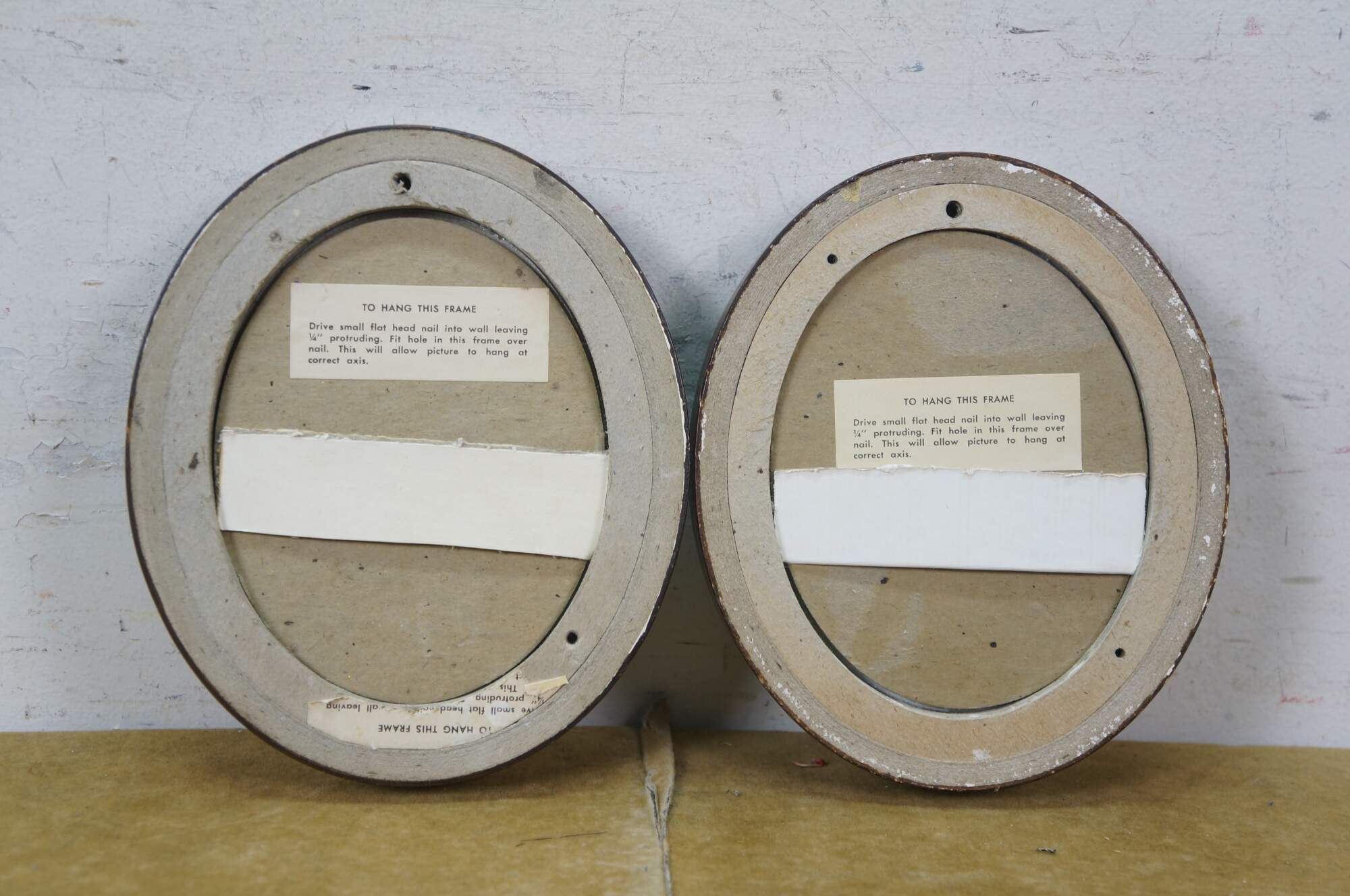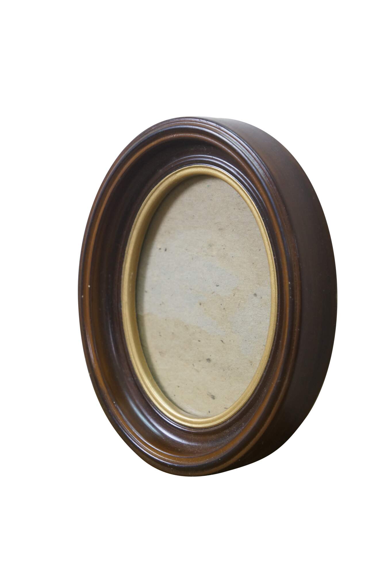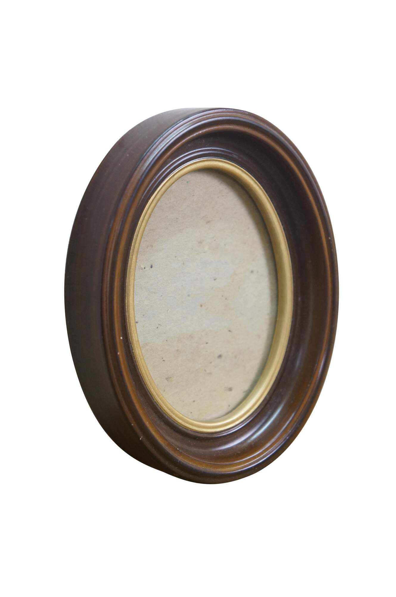 Two vintage brown and gold oval wall mount picture frames.