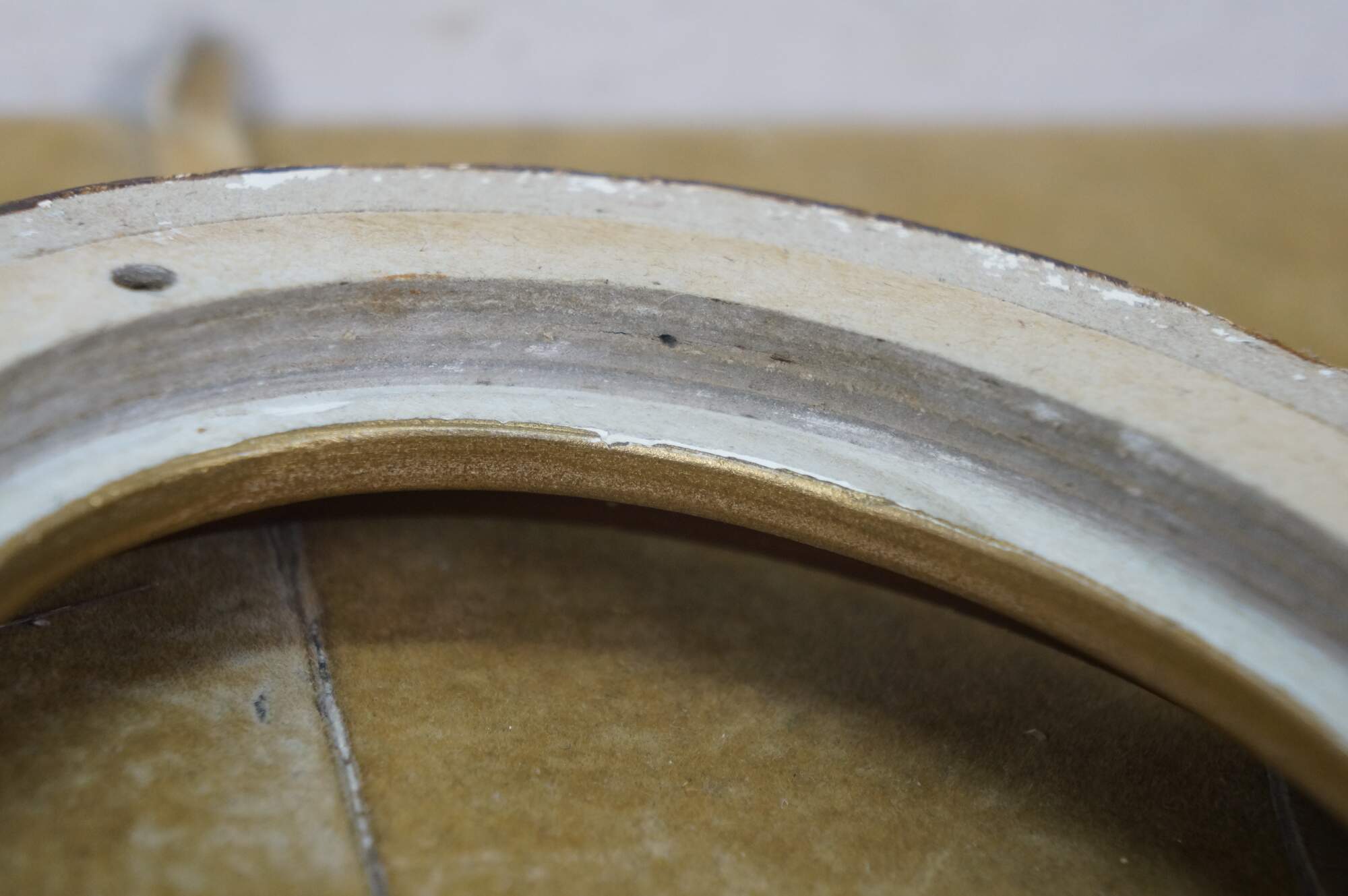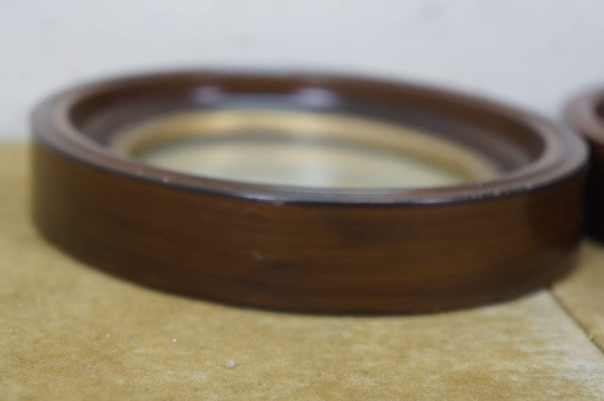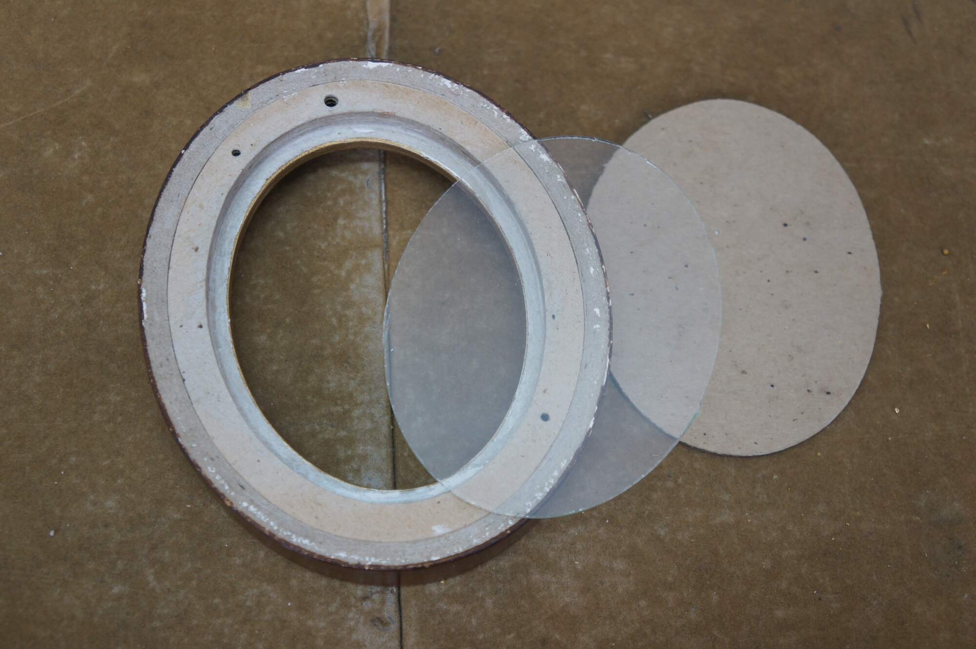 Two vintage brown and gold oval wall mount picture frames.