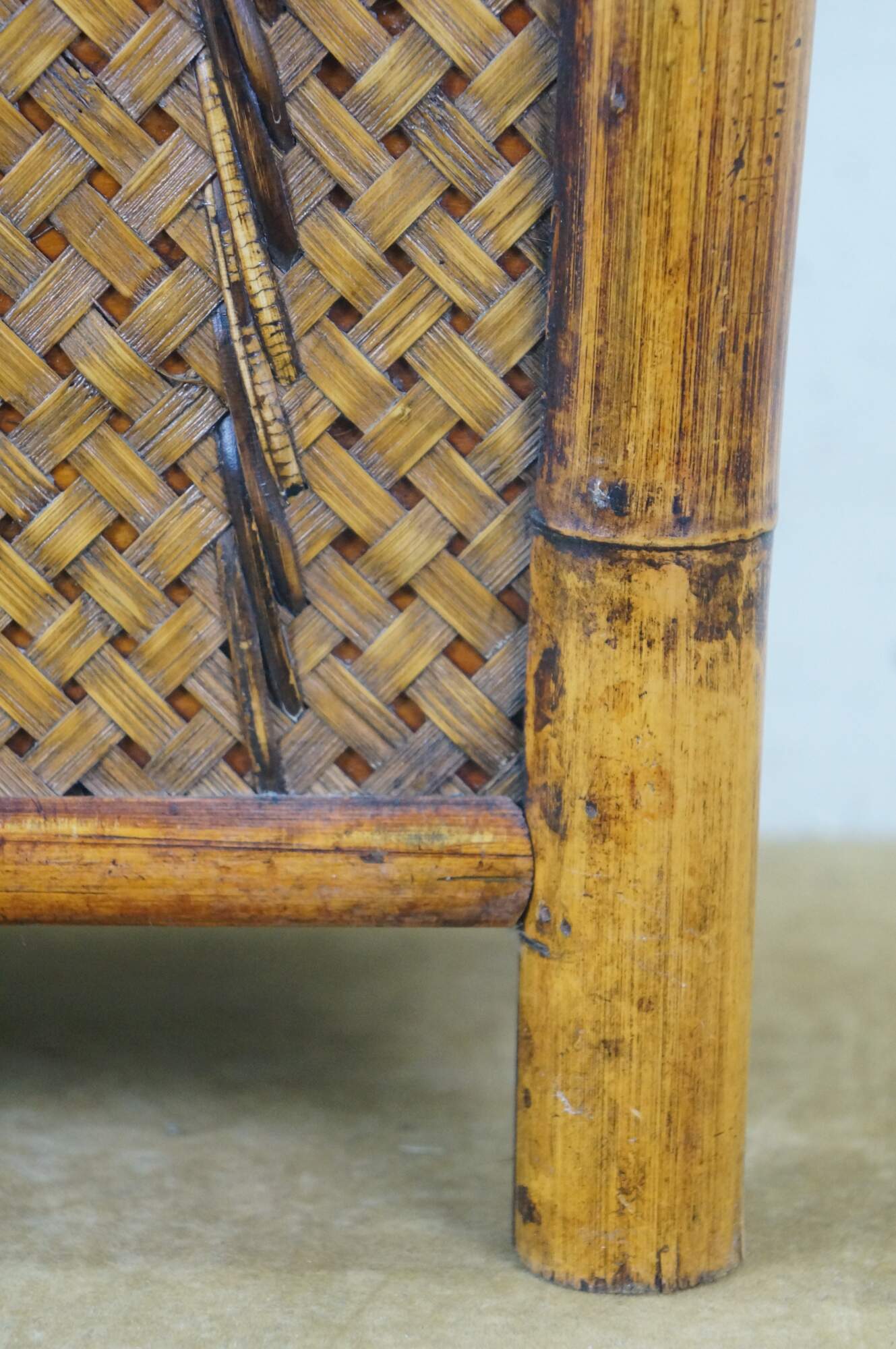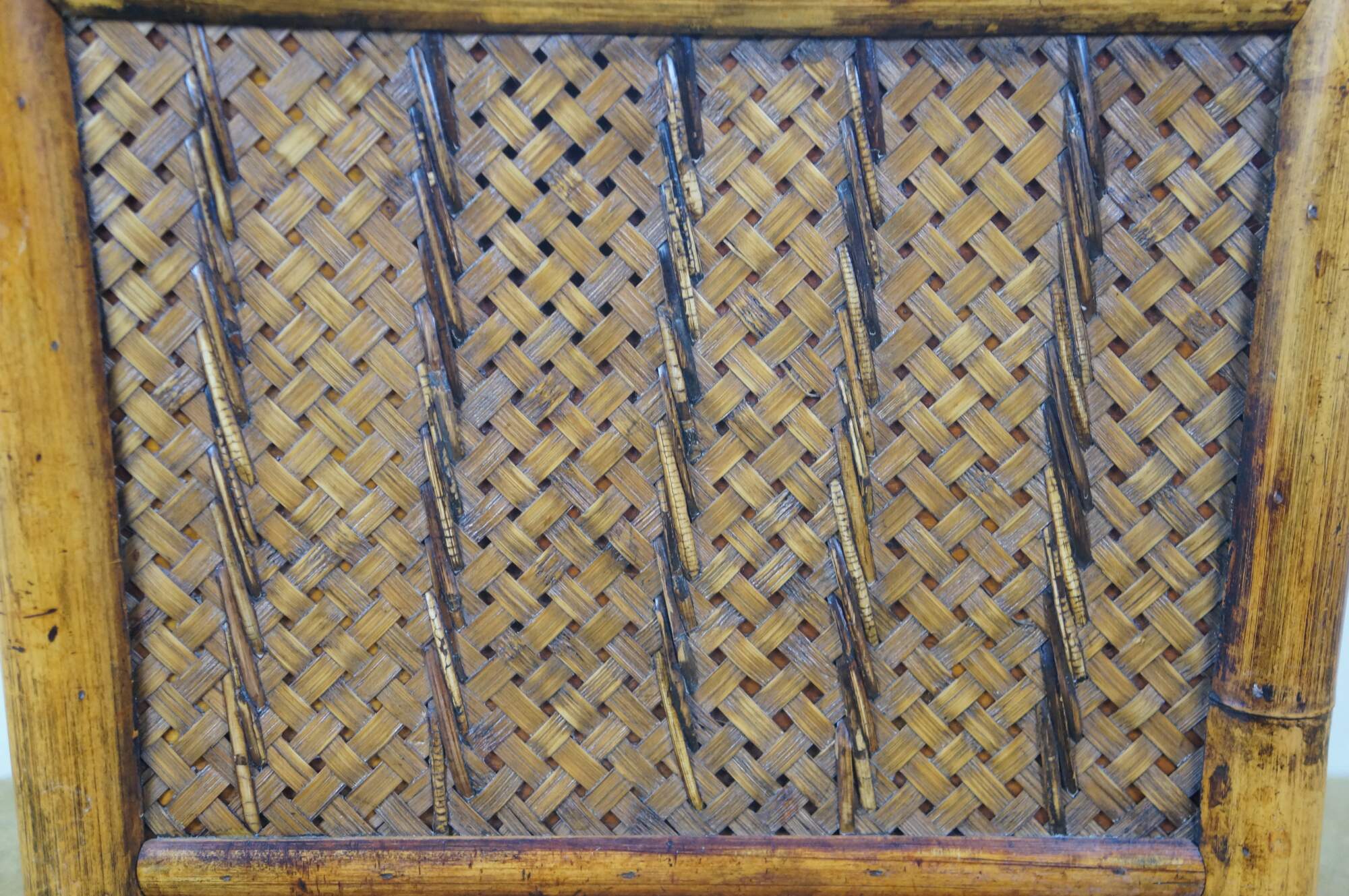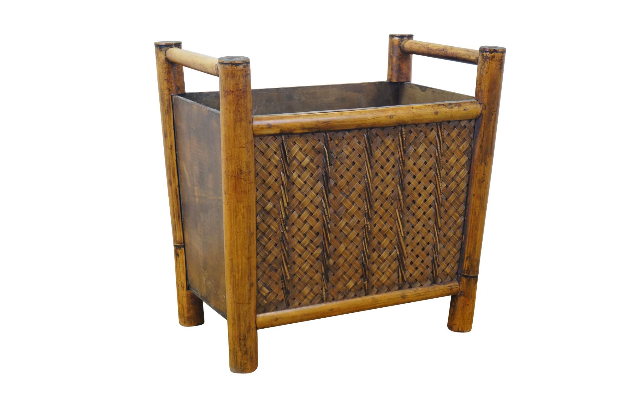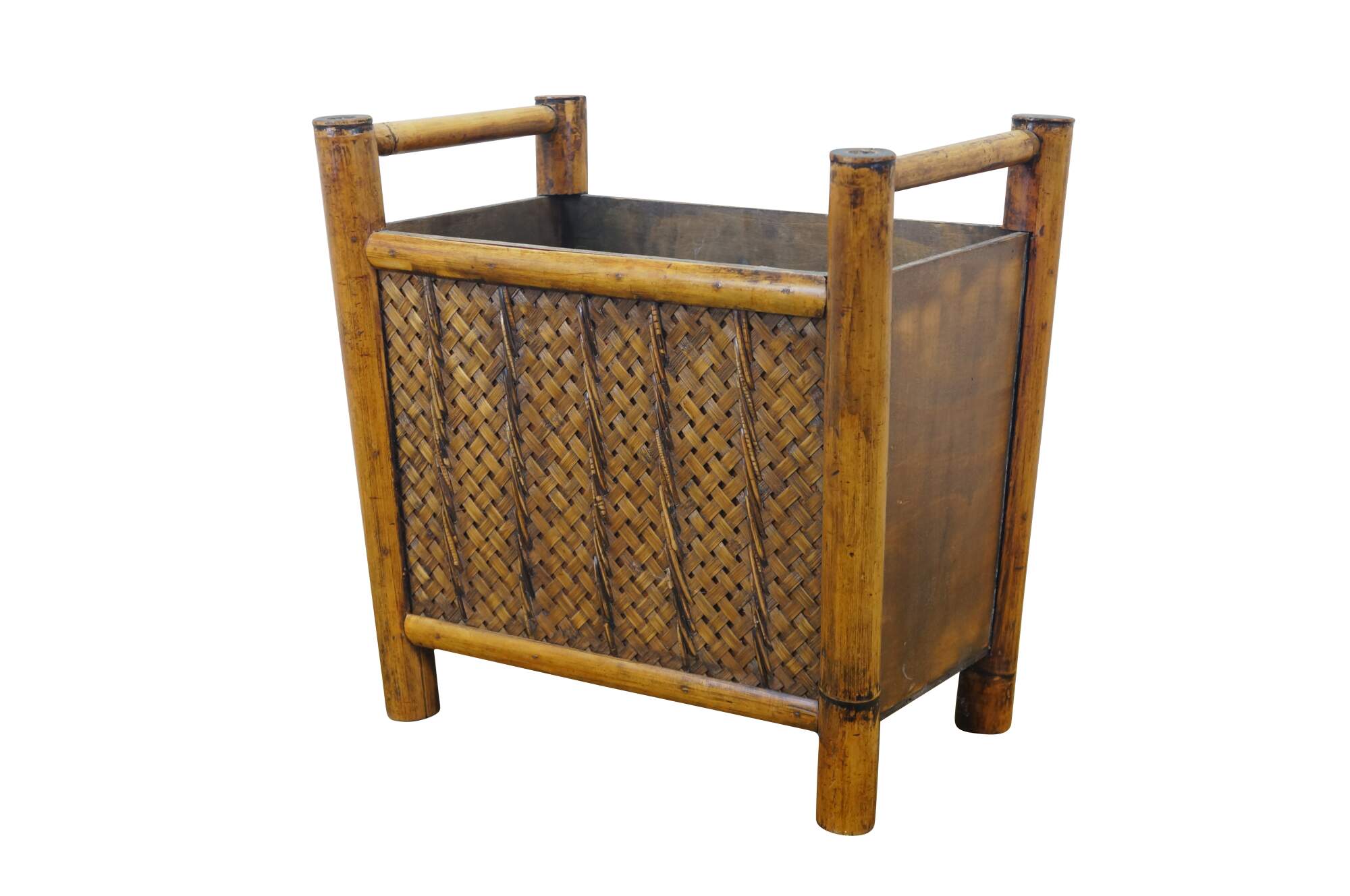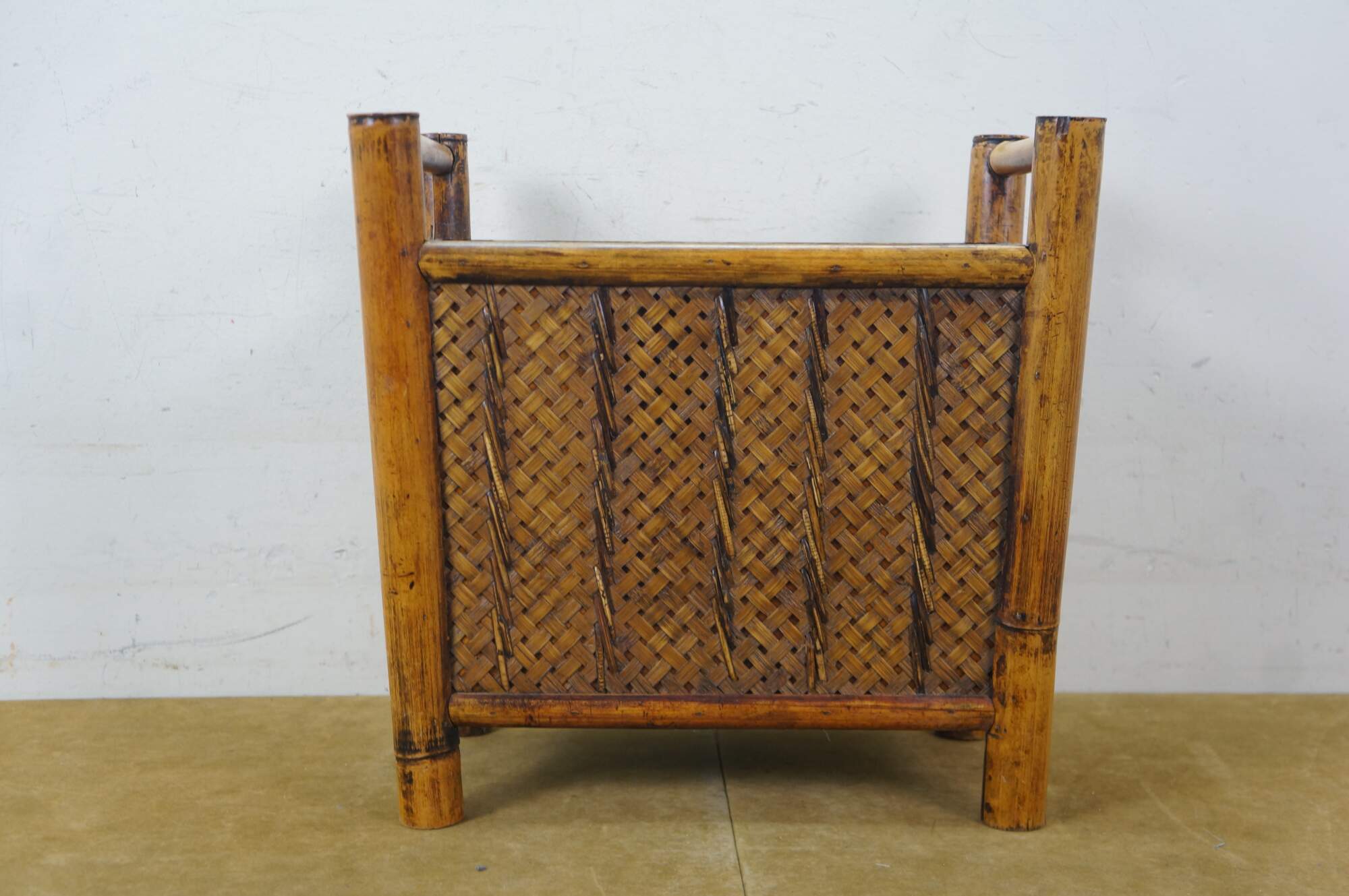 Vintage boho chic chinoiserie bamboo wicker rattan magazine book rack / toilet paper holder / trash can.