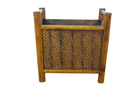 Boho Chic Bamboo Wicker Rattan Magazine Rack Trash Waste Bin 15"