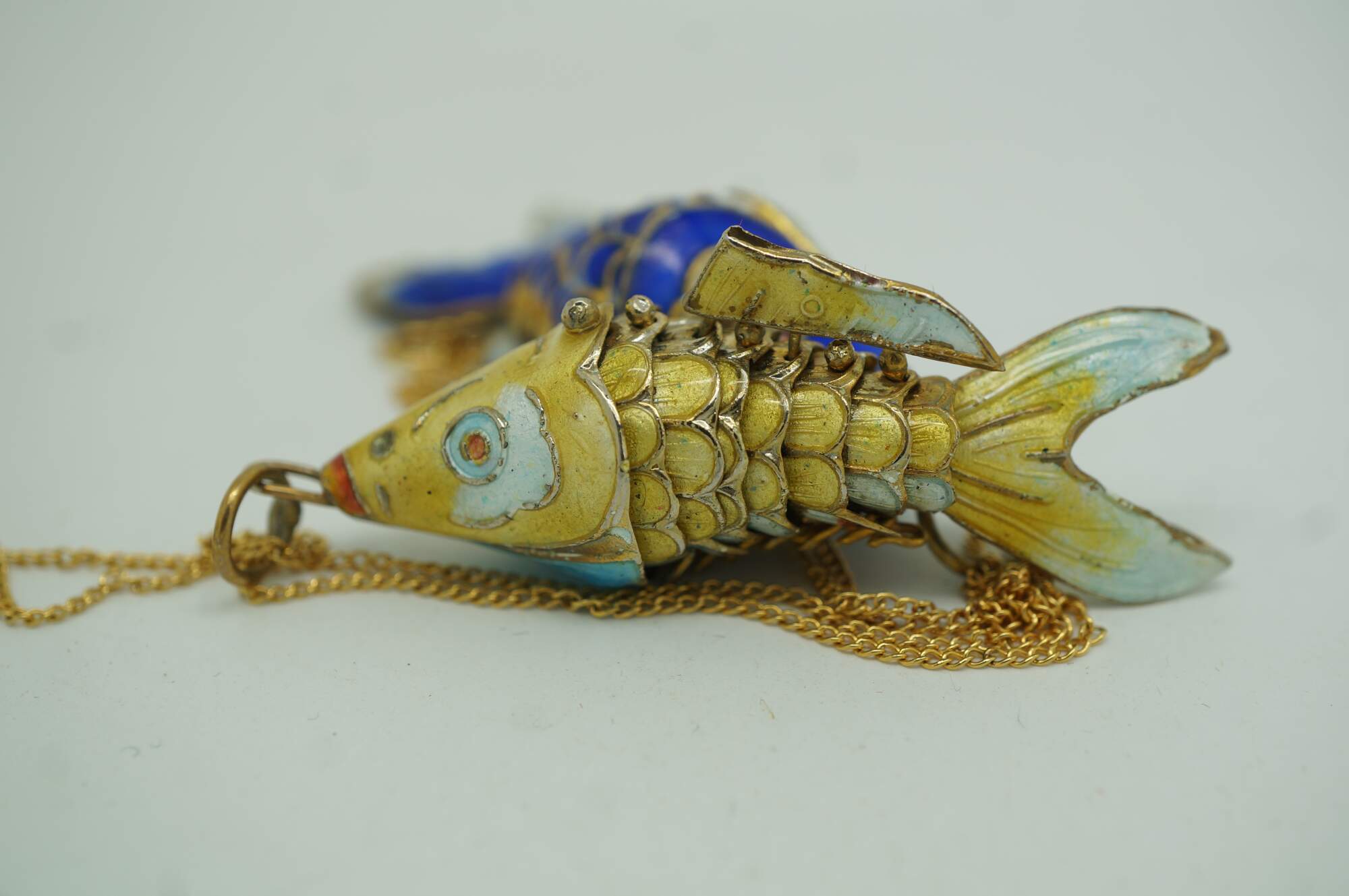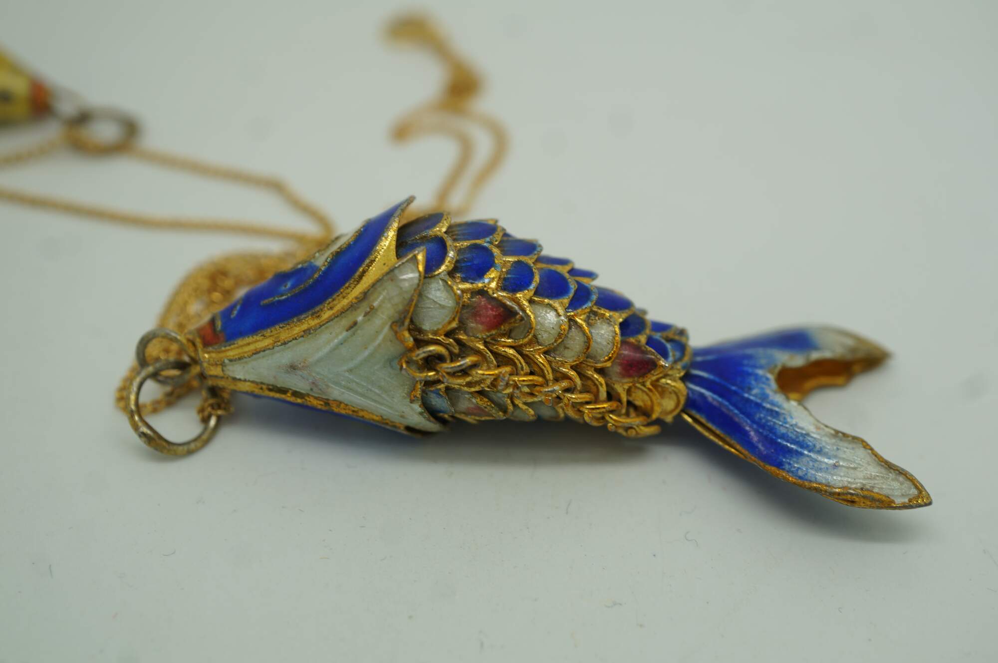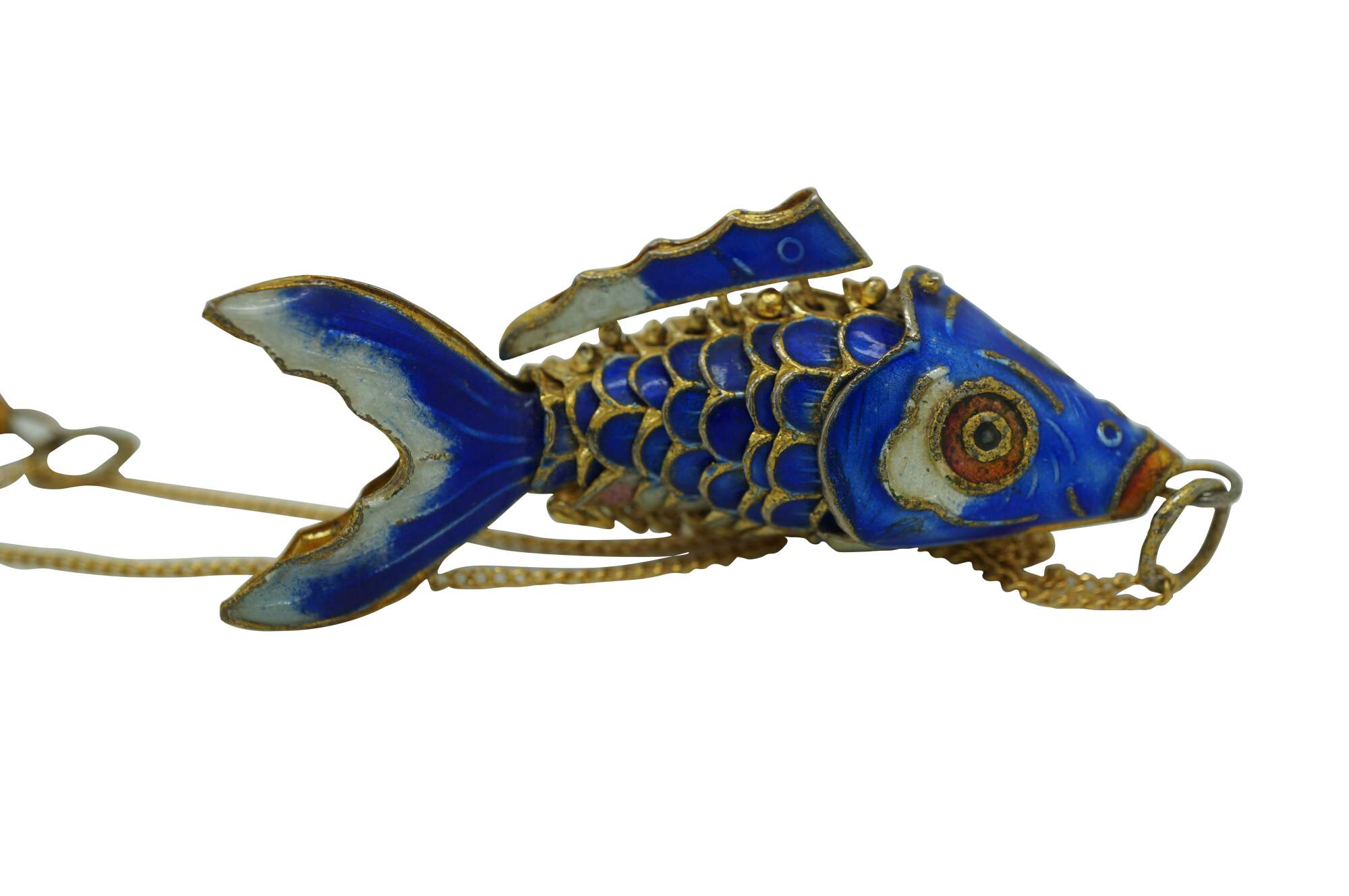 Chinese Cloisonne Enameled Articulating Koi Fish Pendant Charm Necklace