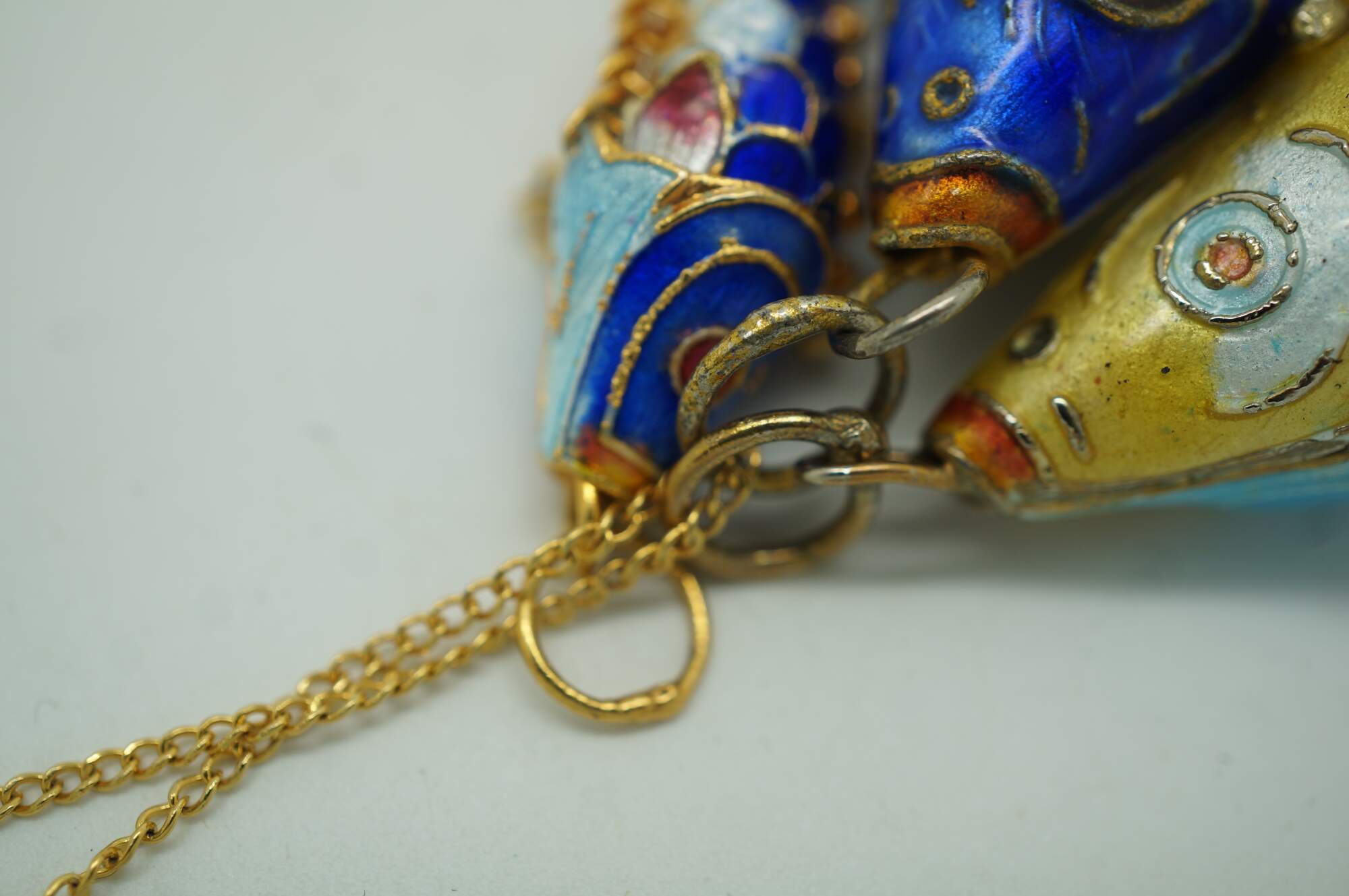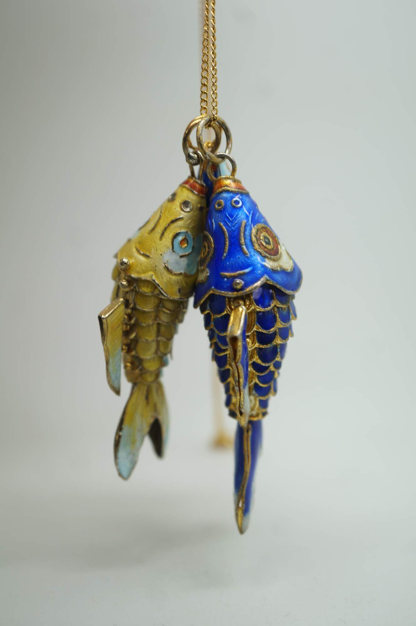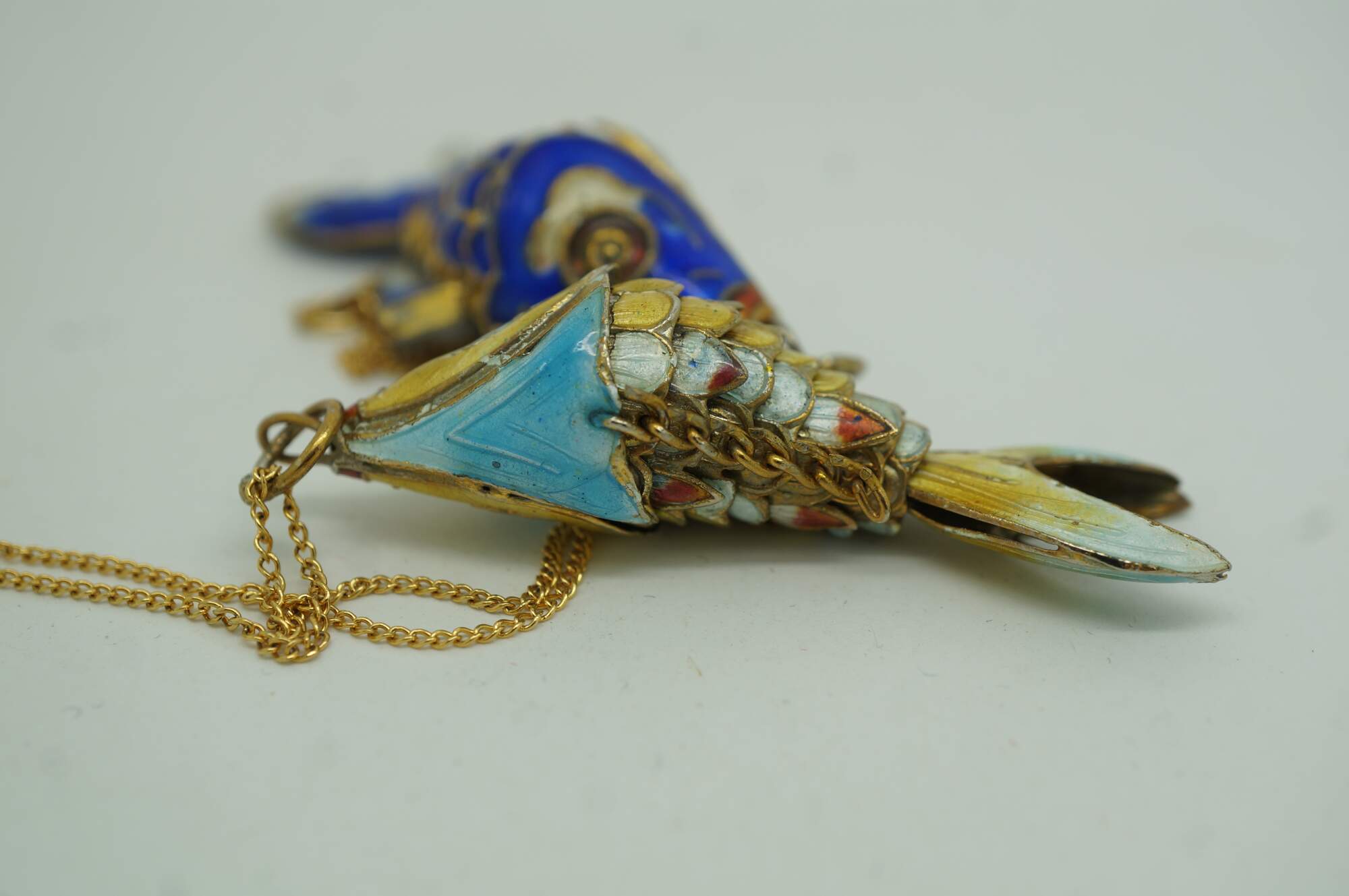 Chinese Cloisonne Enameled Articulating Koi Fish Pendant Charm Necklace