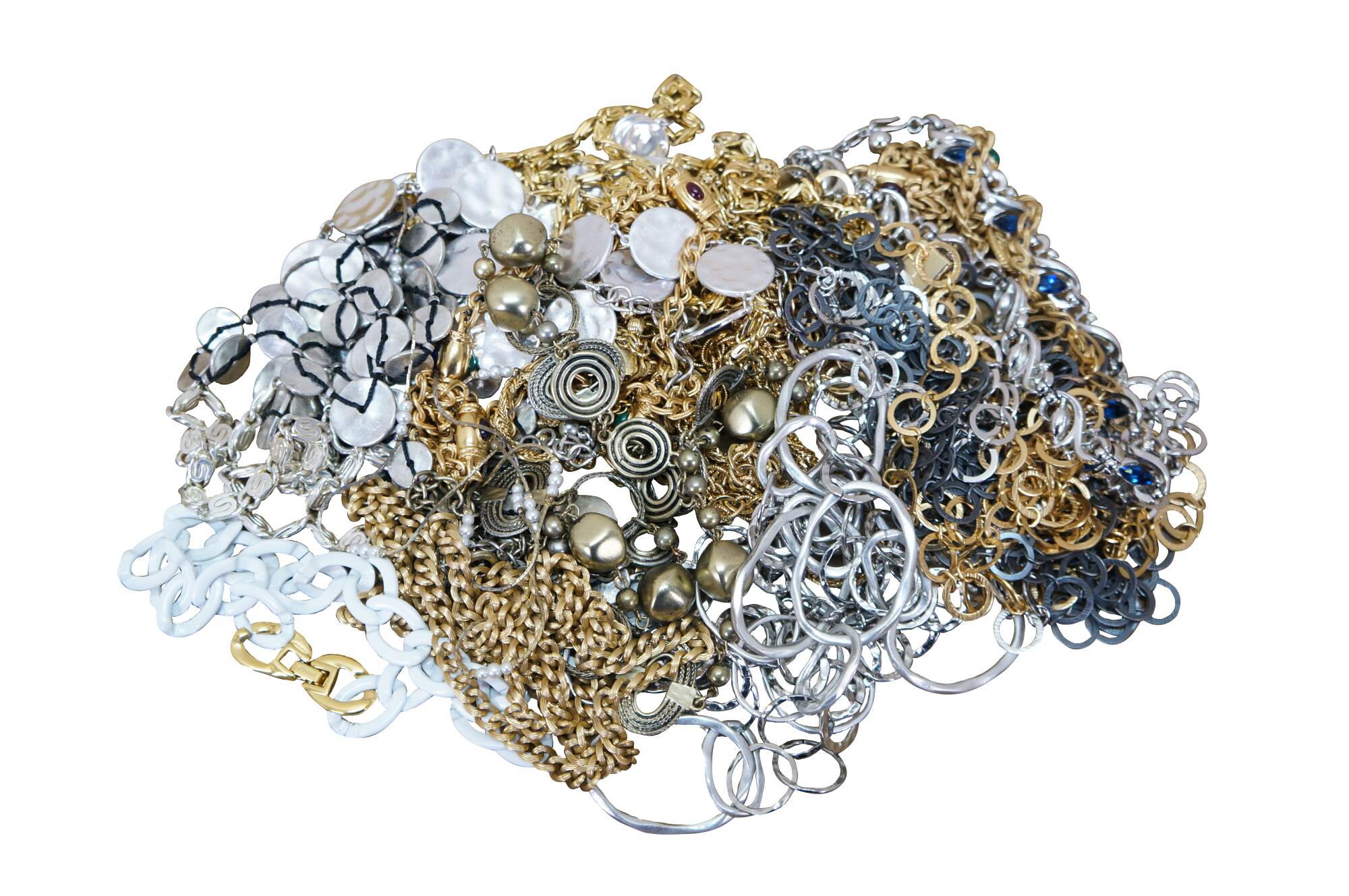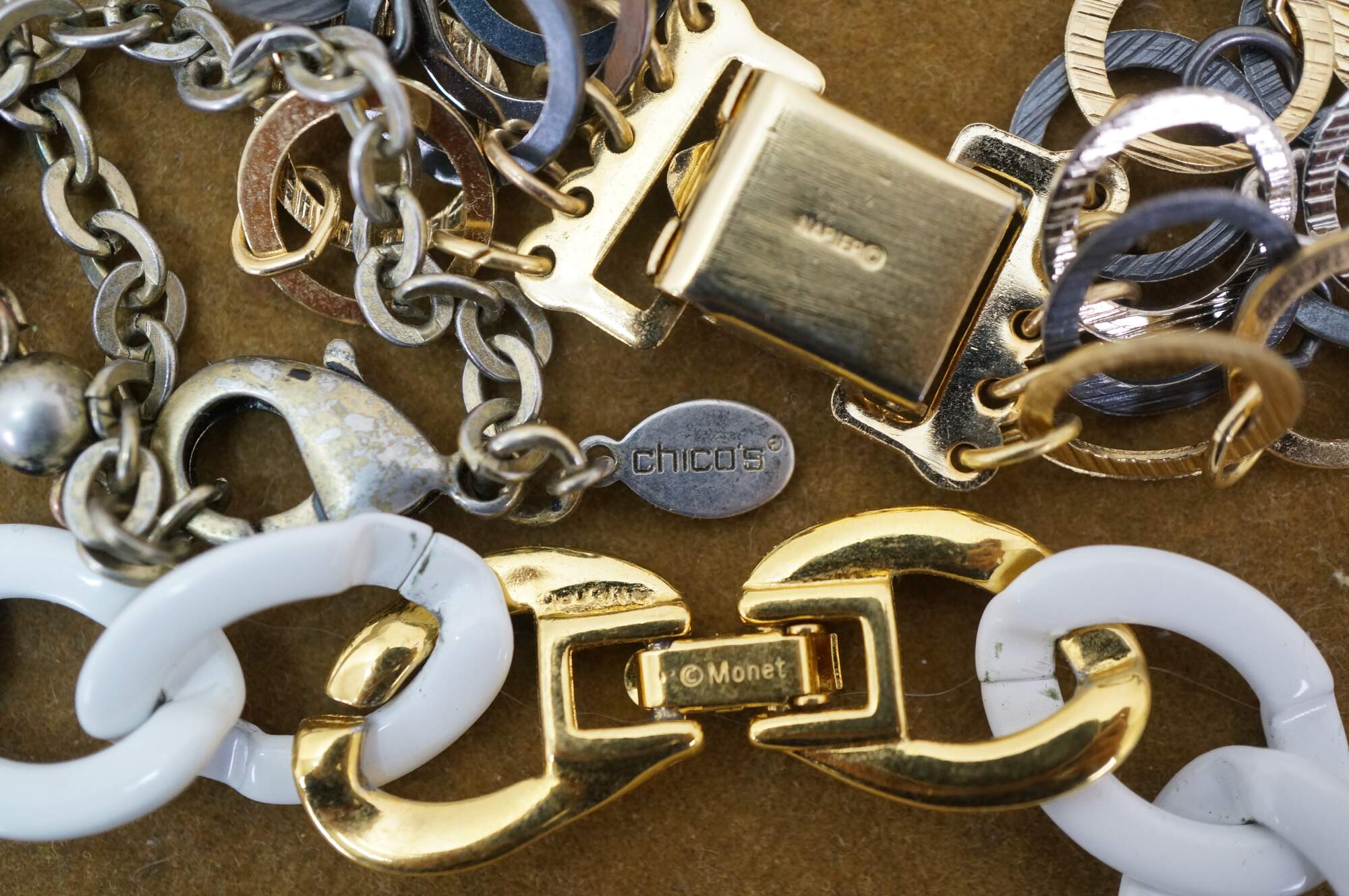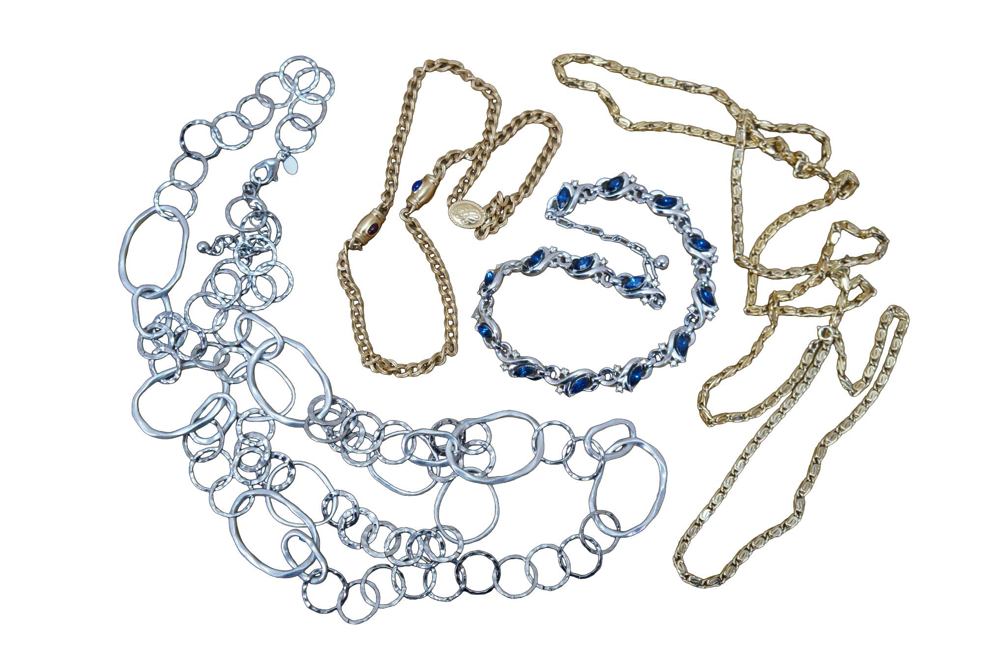 Includes a variety of mesh and chain link styles with hammered, filigree, interlocking, rhinestones, layered, beaded, enameled, brass, gold and silver tone.
