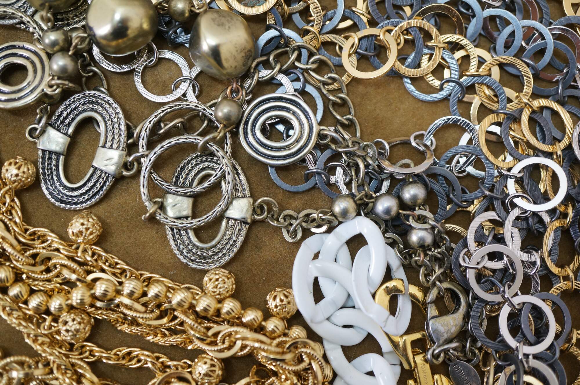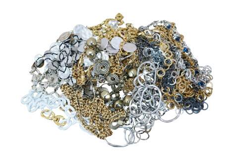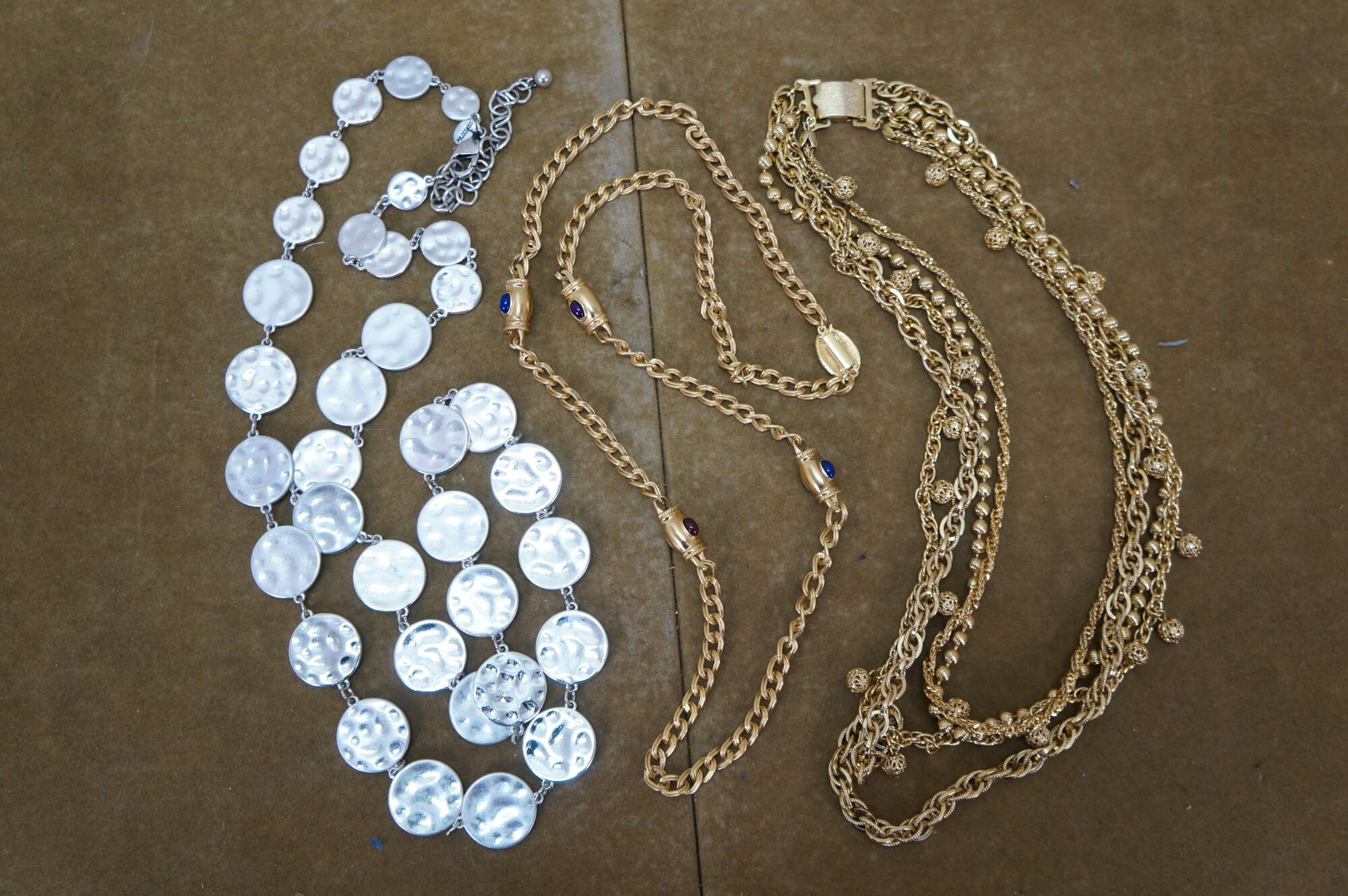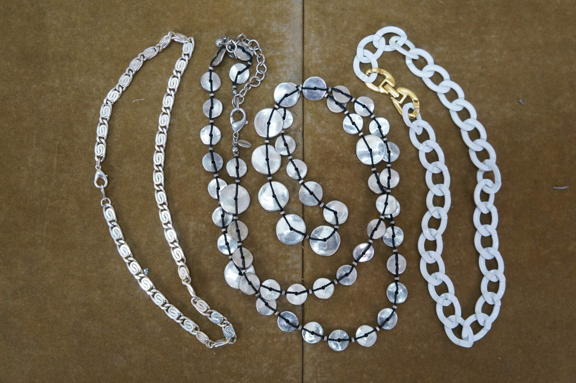 Includes a variety of mesh and chain link styles with hammered, filigree, interlocking, rhinestones, layered, beaded, enameled, brass, gold and silver tone.
