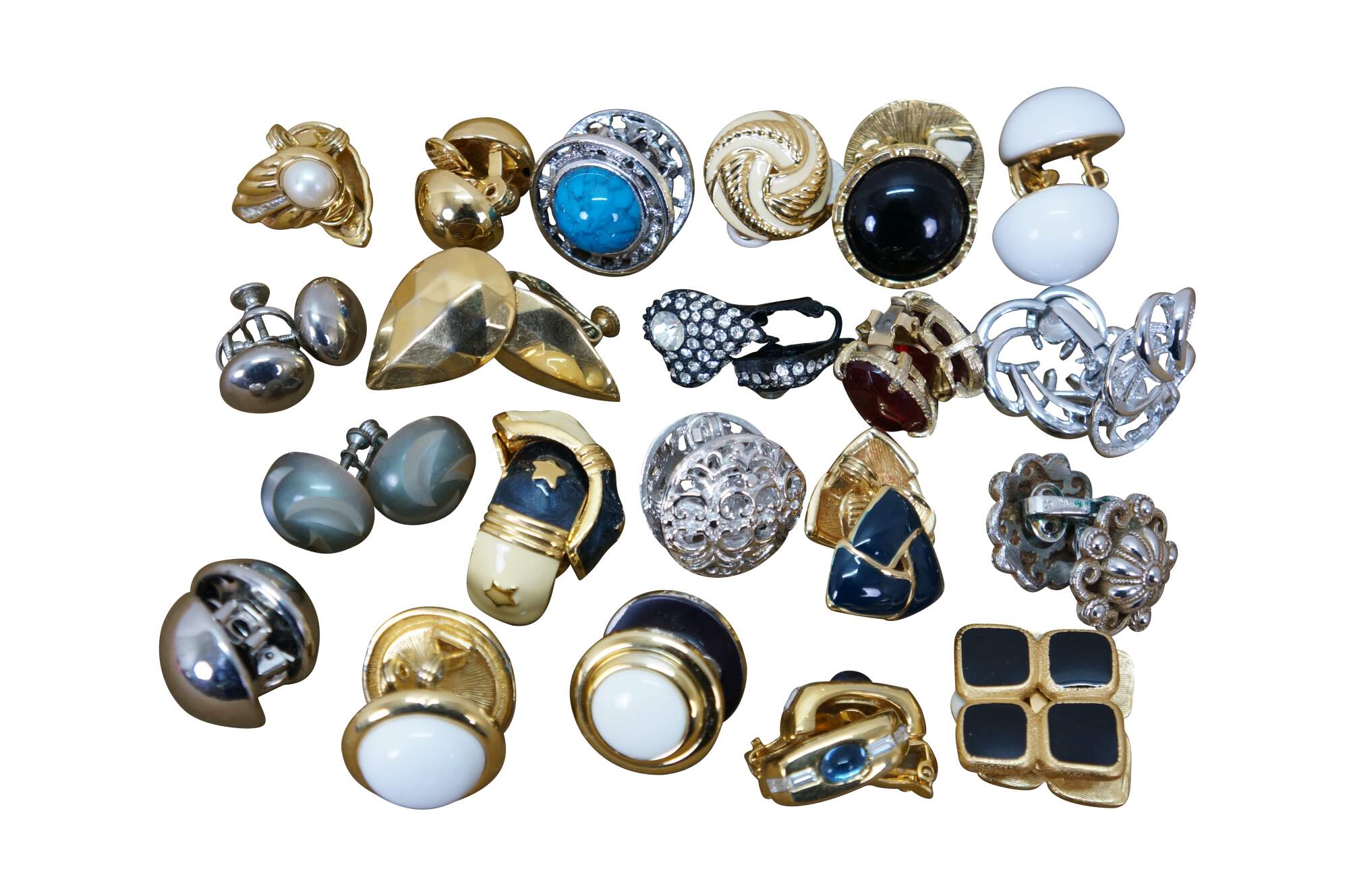 Lot of 21 vintage costume jewelry clip-on earrings.