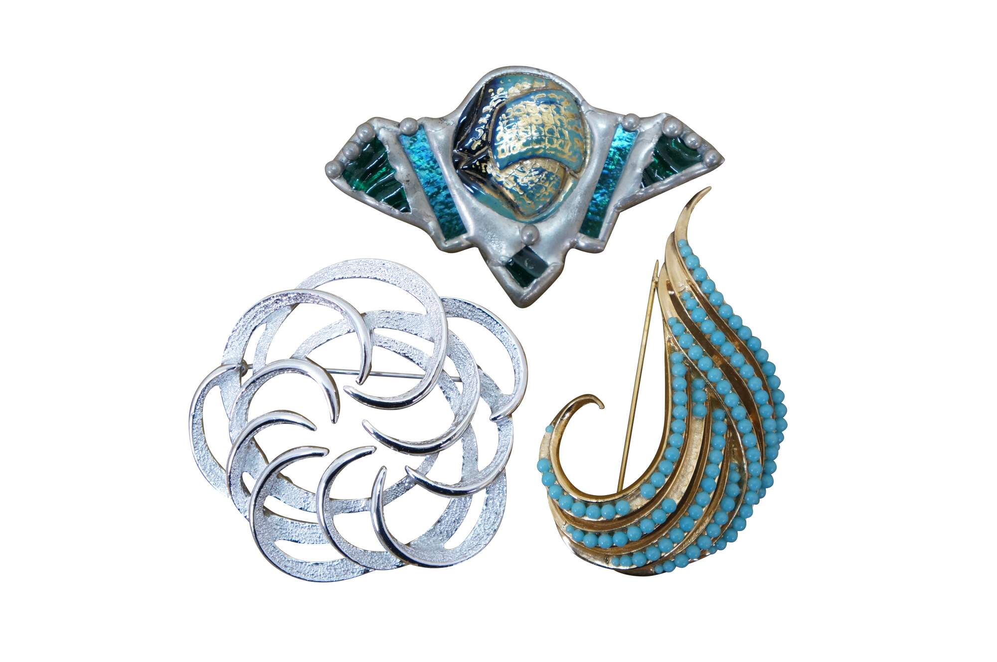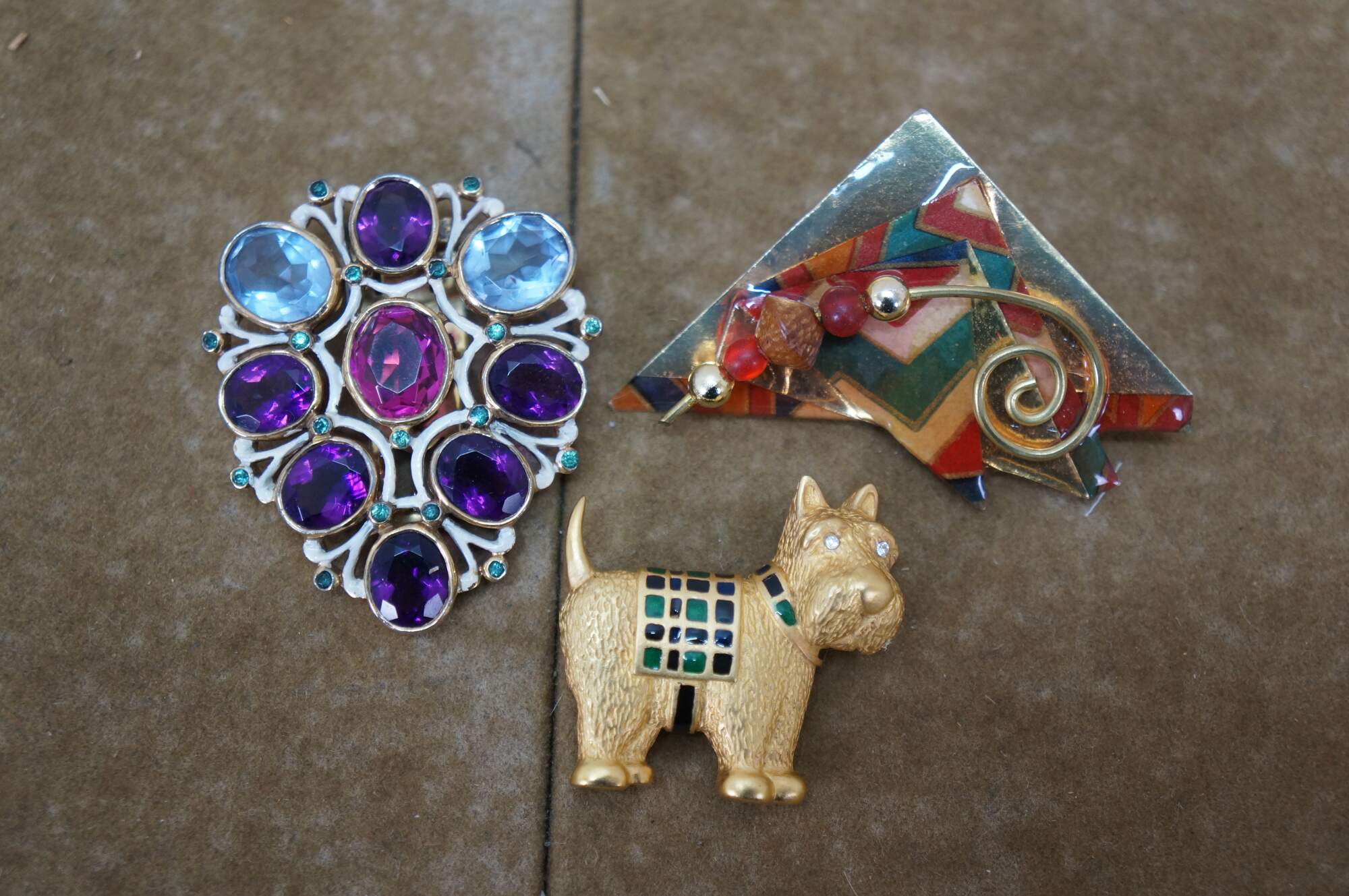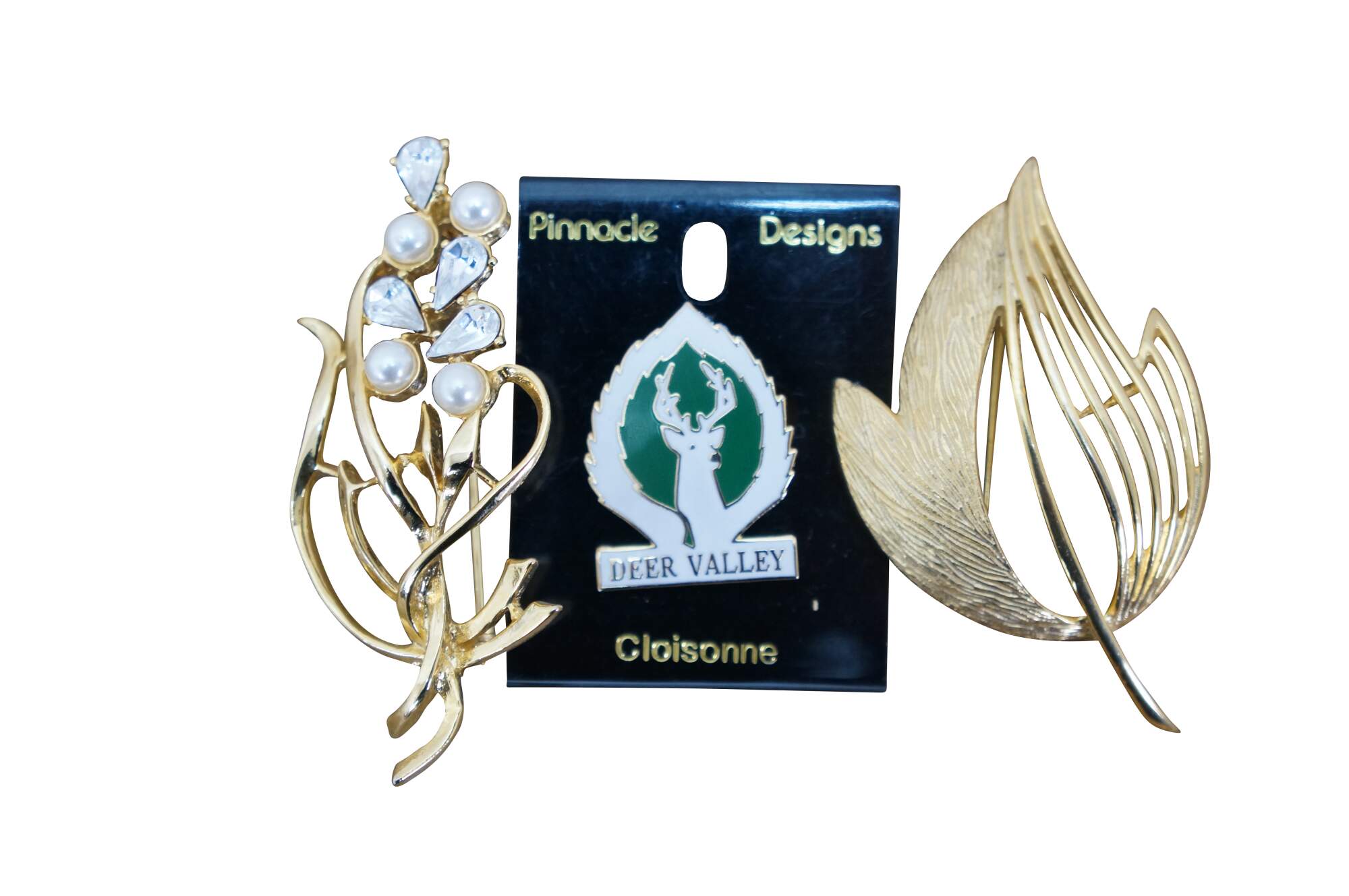 Vintage collection of assorted fashion brooch pins costume jewelry featuring various designs, materials include, gold and silver tone, rhinestones, faux pearls / diamonds, and cut and faceted stones. Types include a Gecko lizard, ladybugs, flys / bees, bike / bicycle, Aspen Colorado, Deer Valley stag, trick or treat Halloween pumpkin, lightning bolt, kangaroo, quest for immortality, floral /leaf, star, stained glass silver, heart, Scottish Terrier, Gayle, etc. Brands include Pinnacle, Carolee, Trifari, Monet etc.