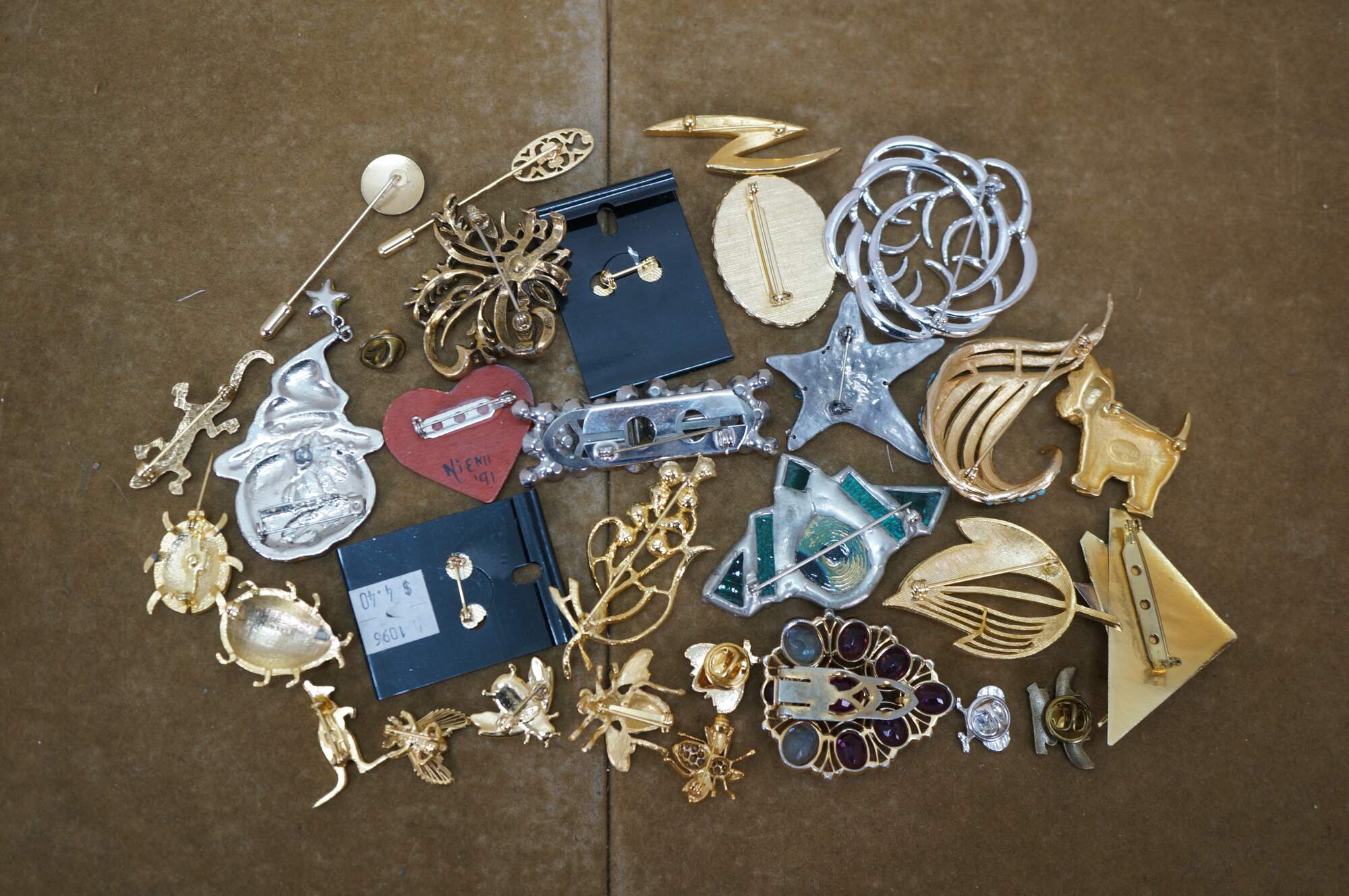 Lot of 31 Vintage Brooch Pins Ladybug Bee Lizard Leaf Pumpkin Scotty Dog