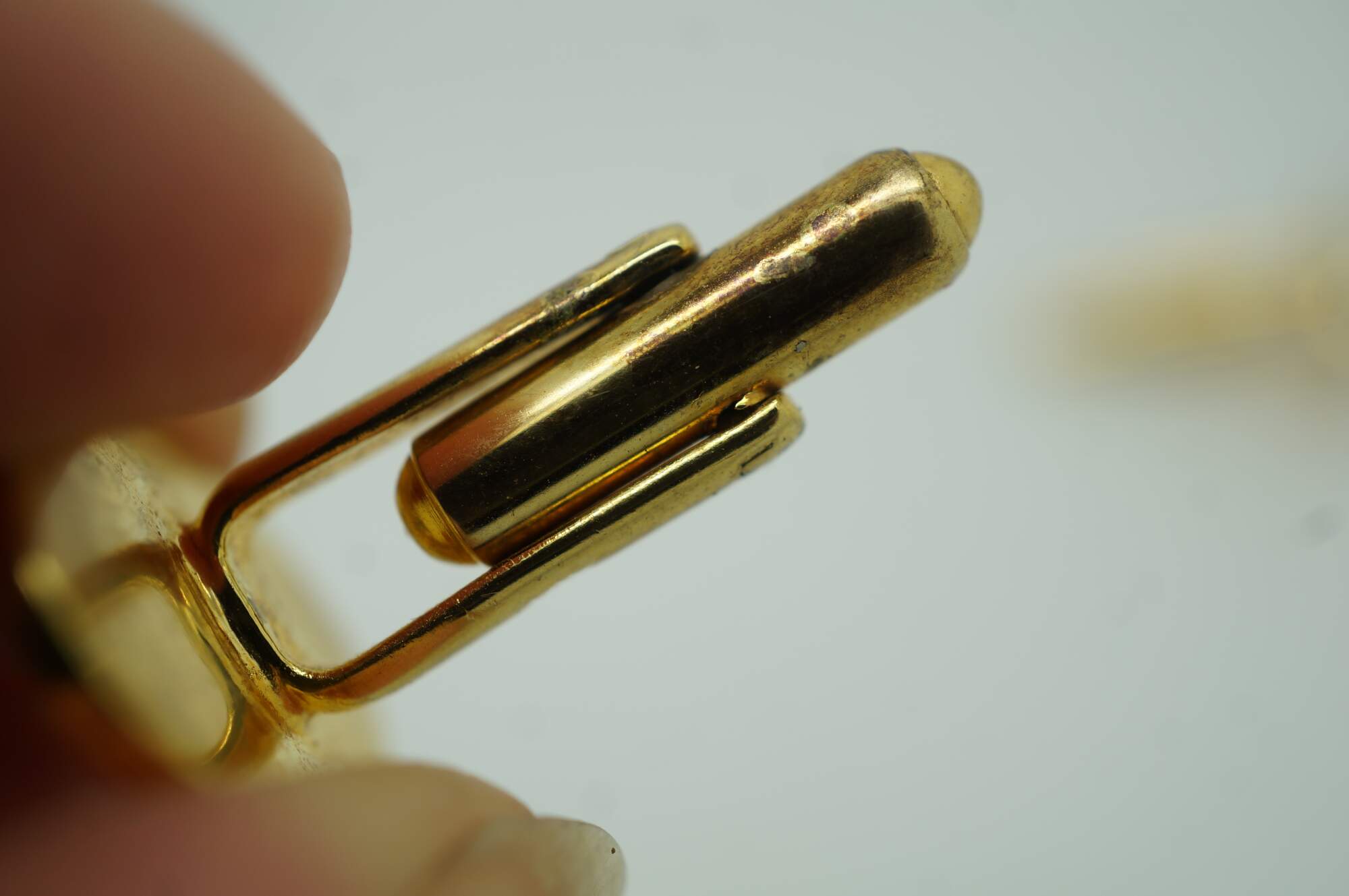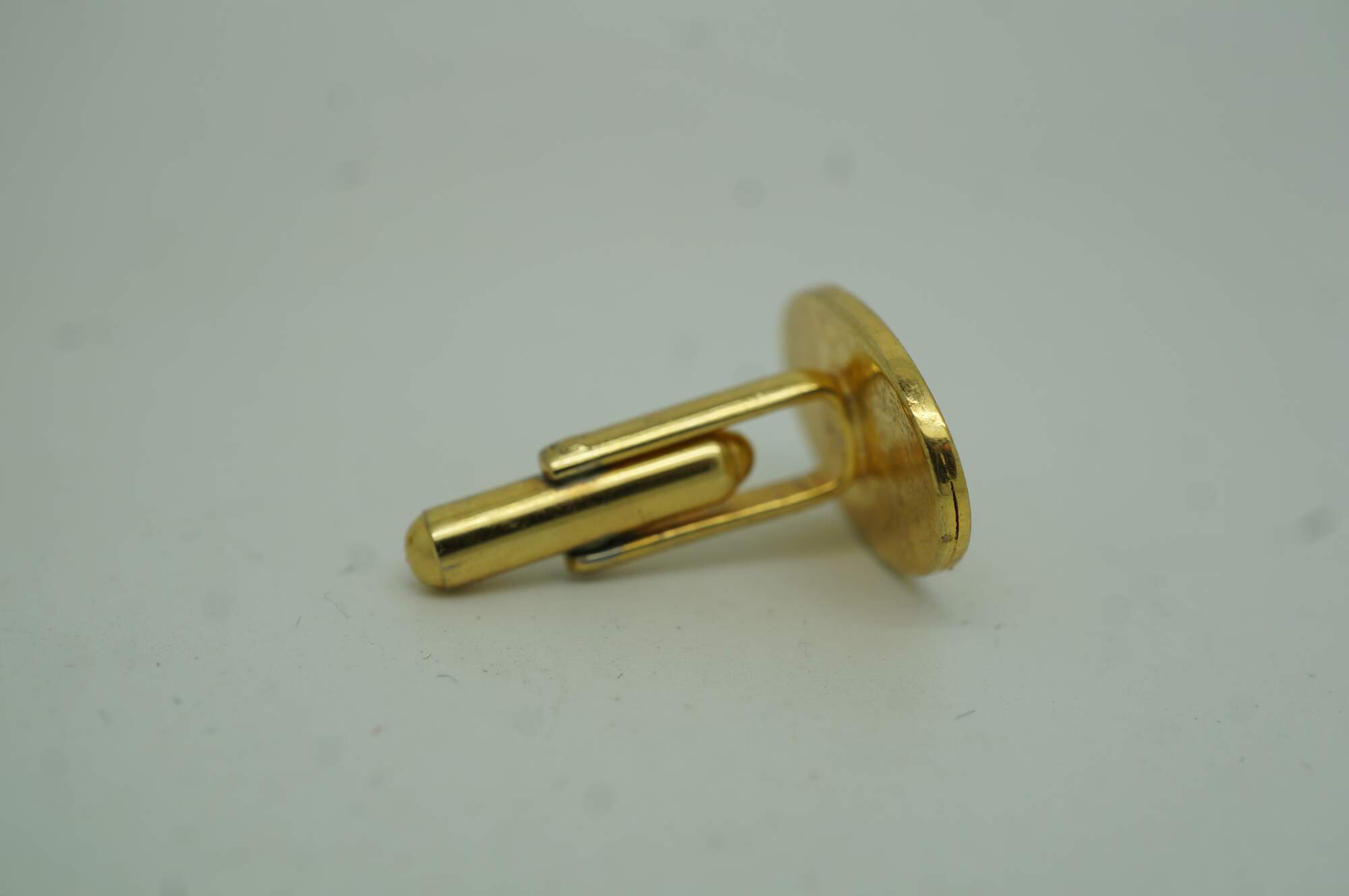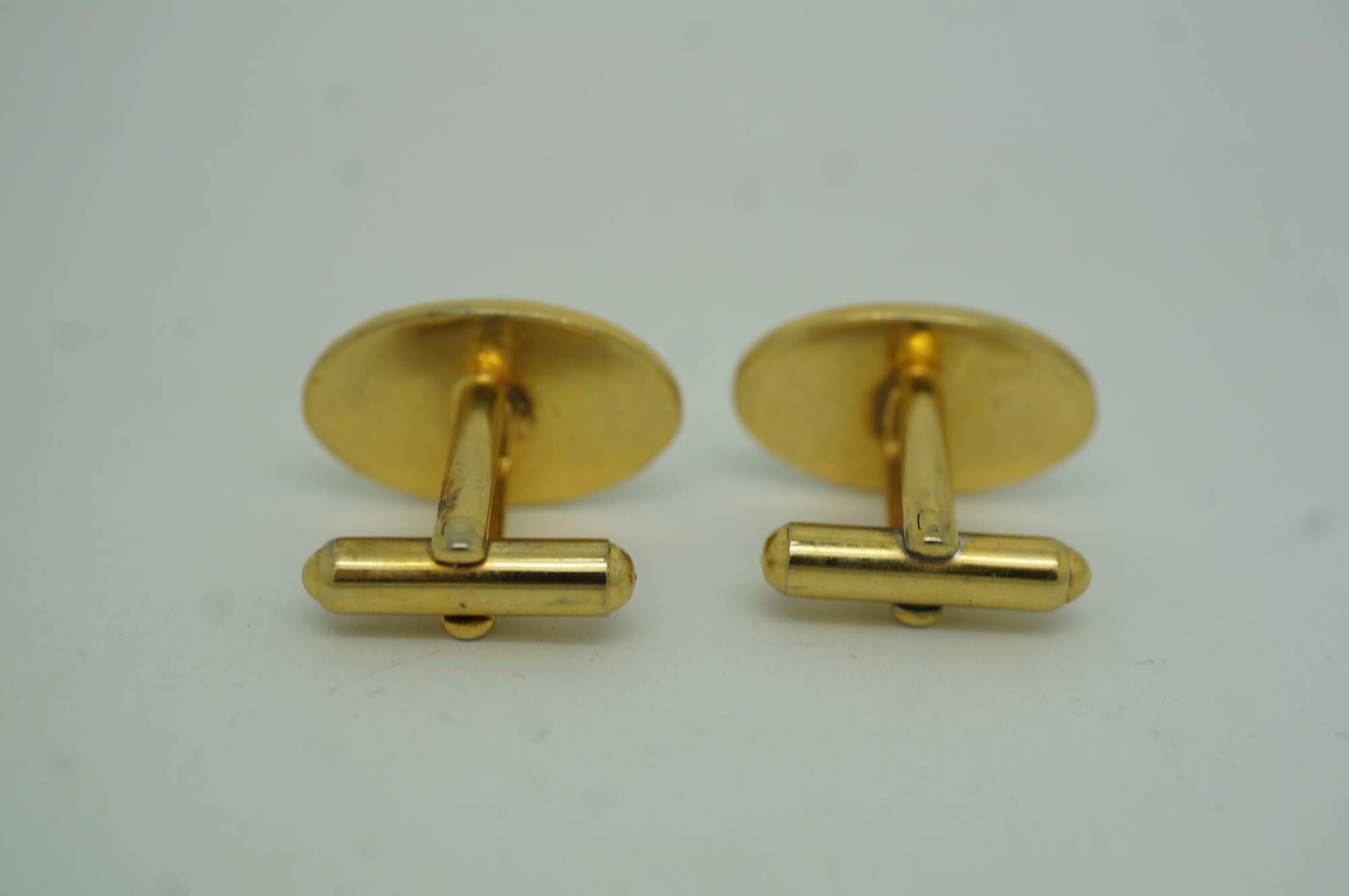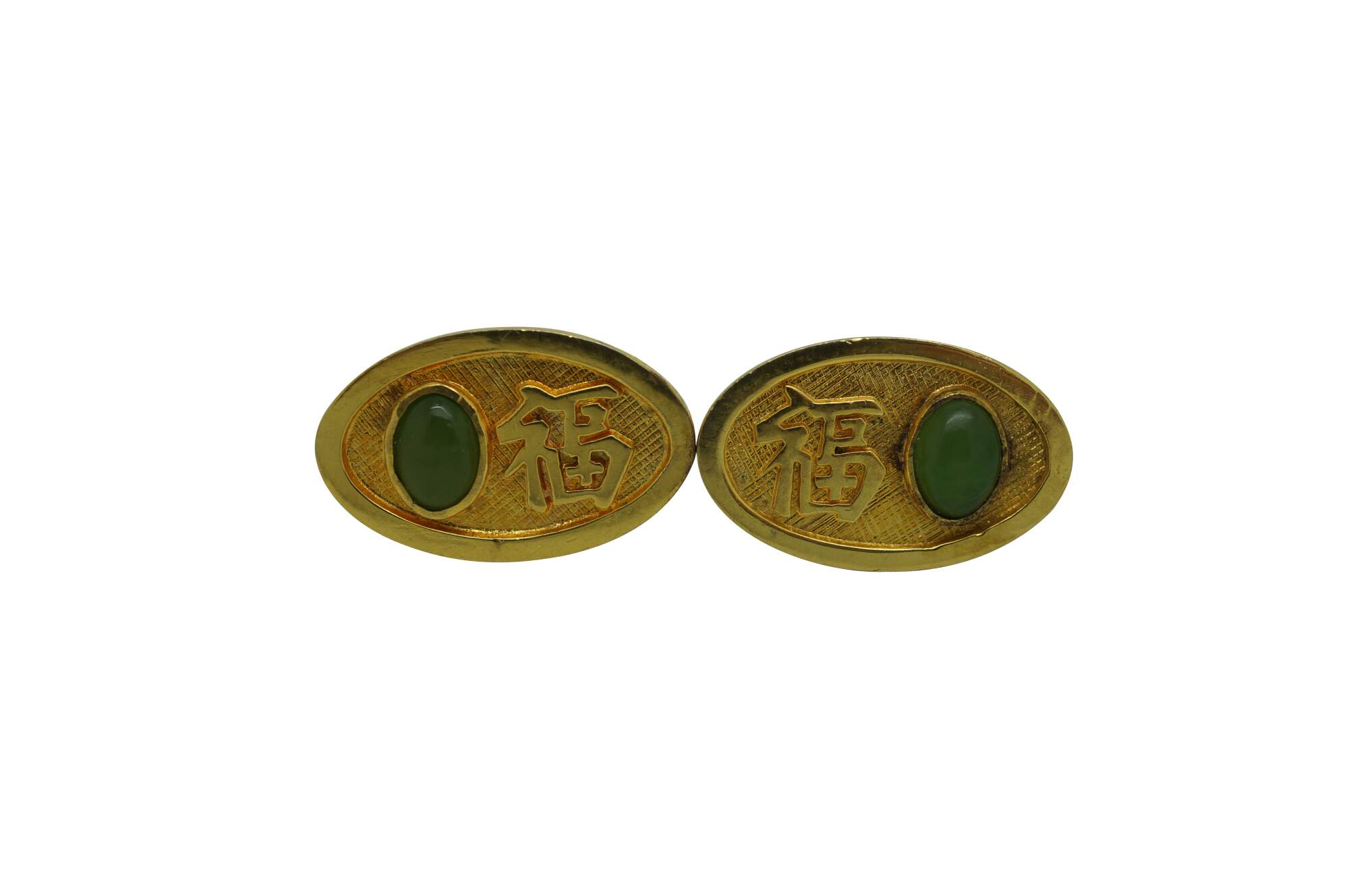 Vintage pair of oval 14k gold cufflinks featuring green jade cabochons and the Chinese character for "Fu" (福), which symbolizes good luck, happiness, and fortune.