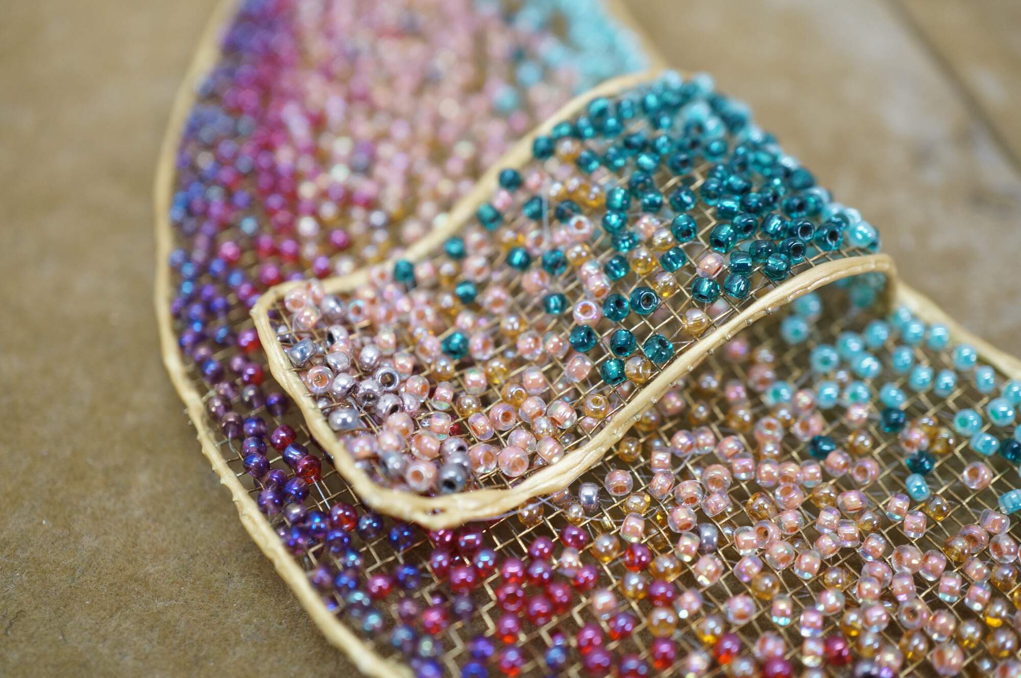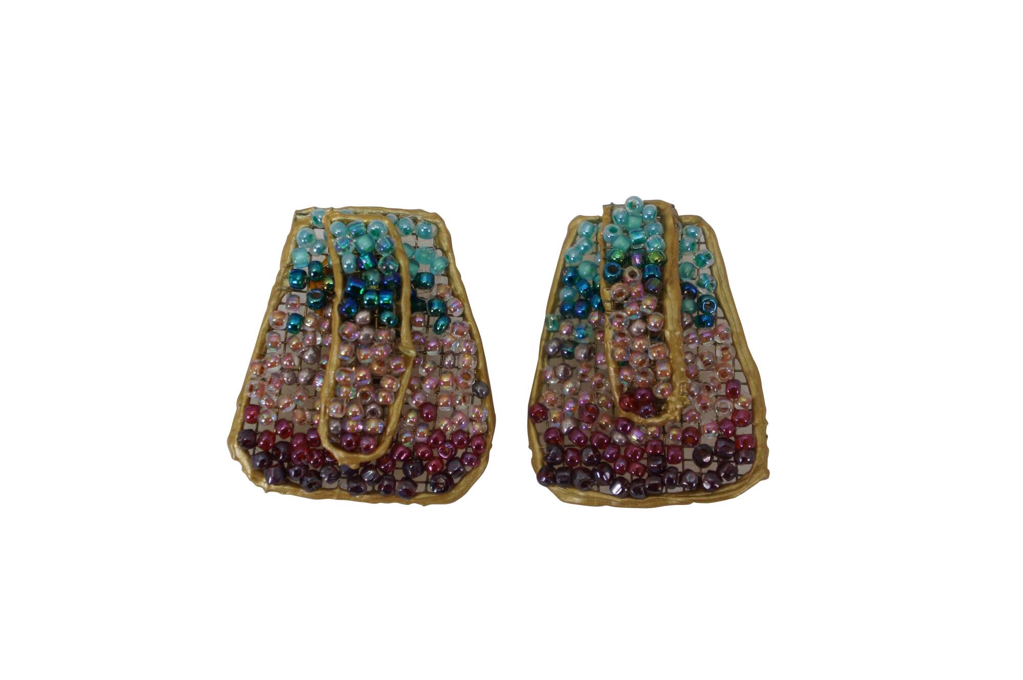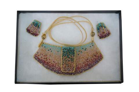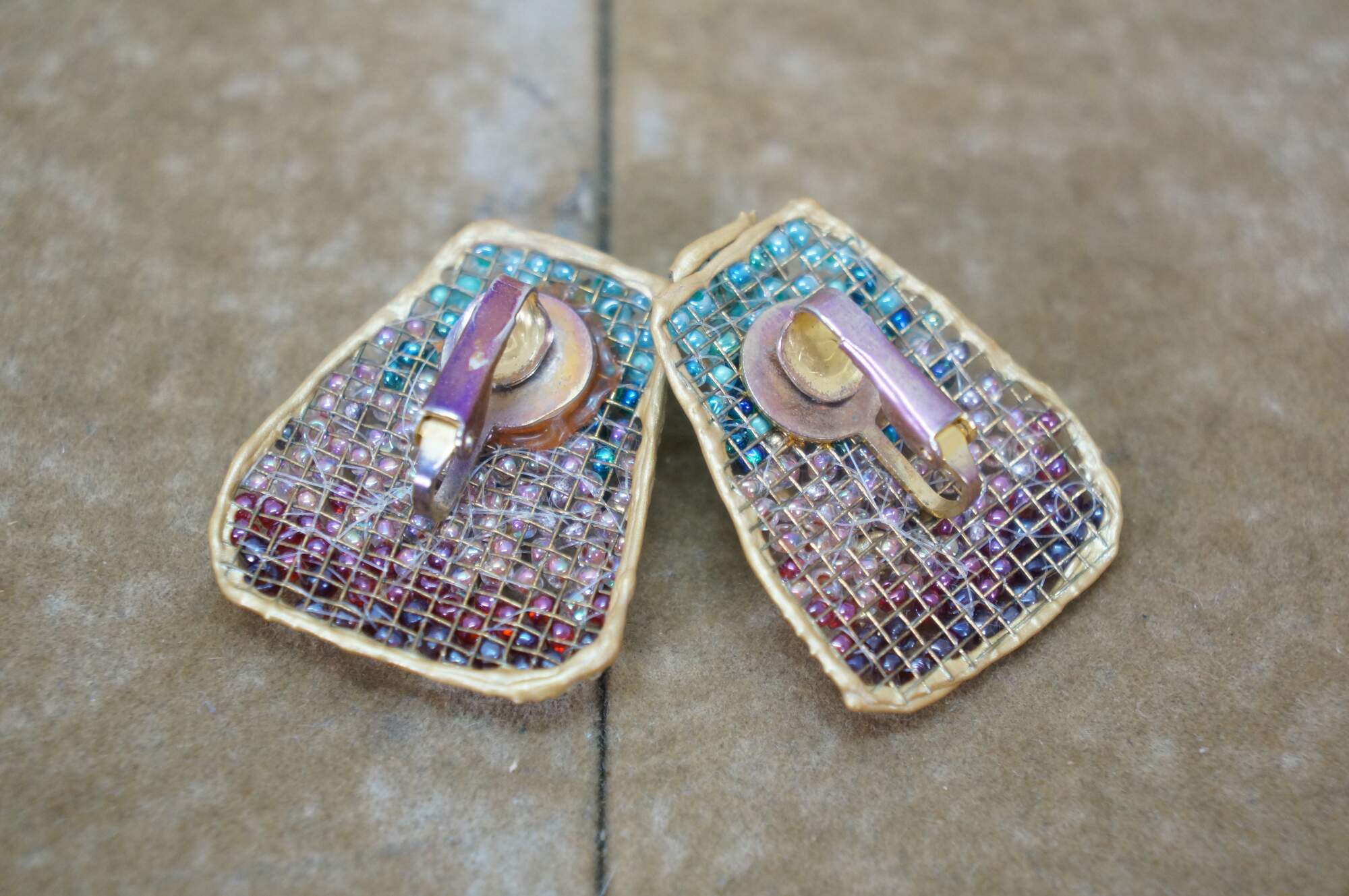 Vintage purple pink turquoise beaded statement necklace and matching clip on earrings.