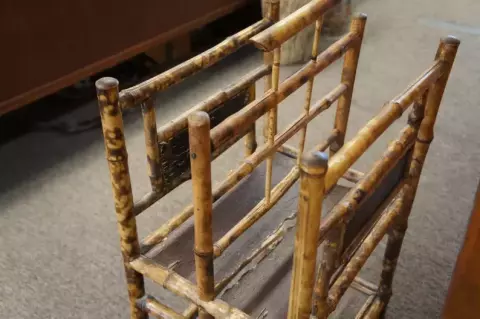 Antique Asian English Tortoise Bamboo Magazine Rack Handle Canterbury Stand