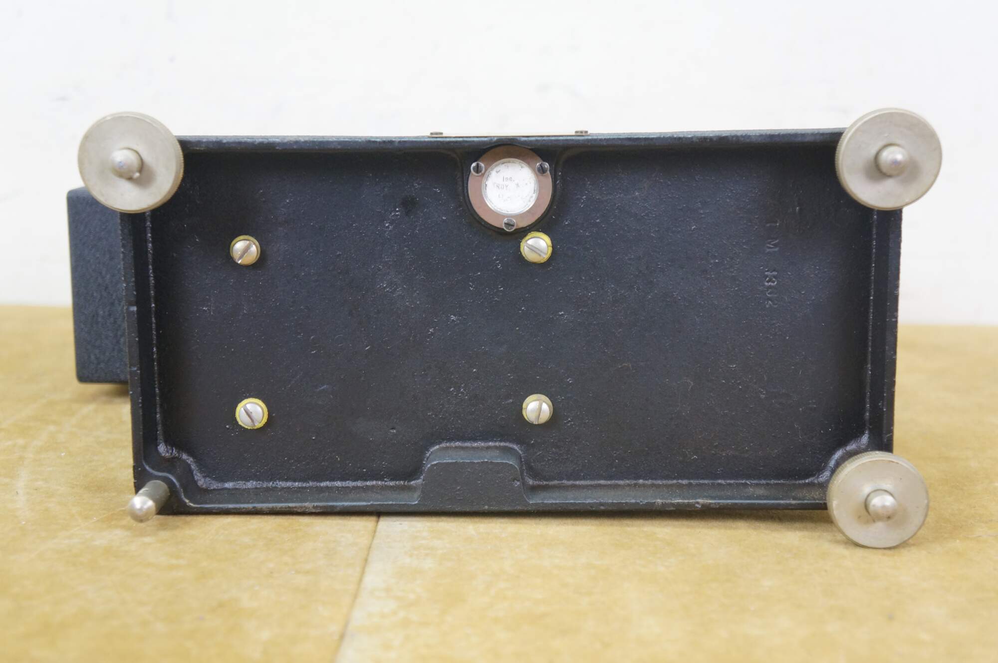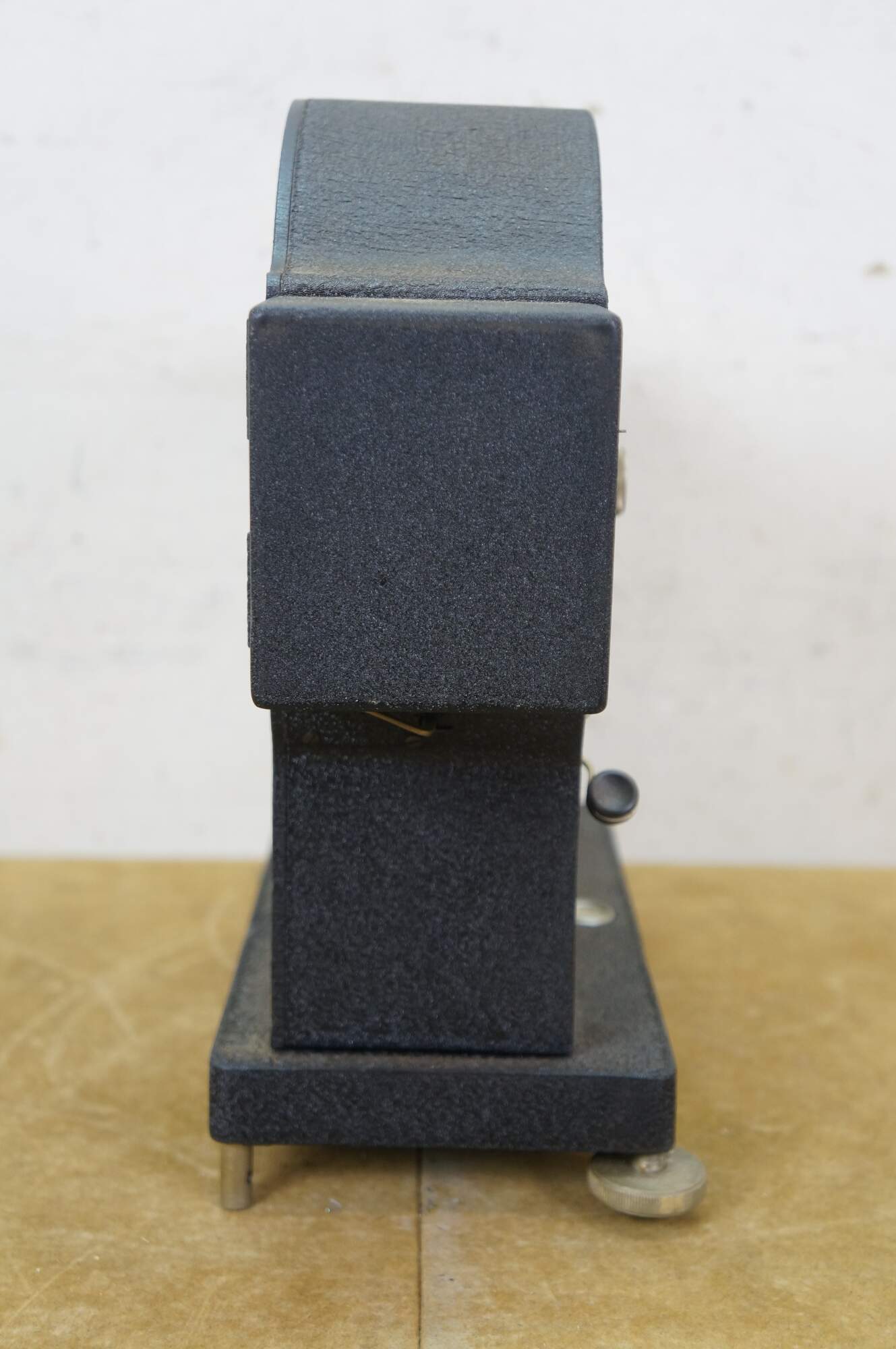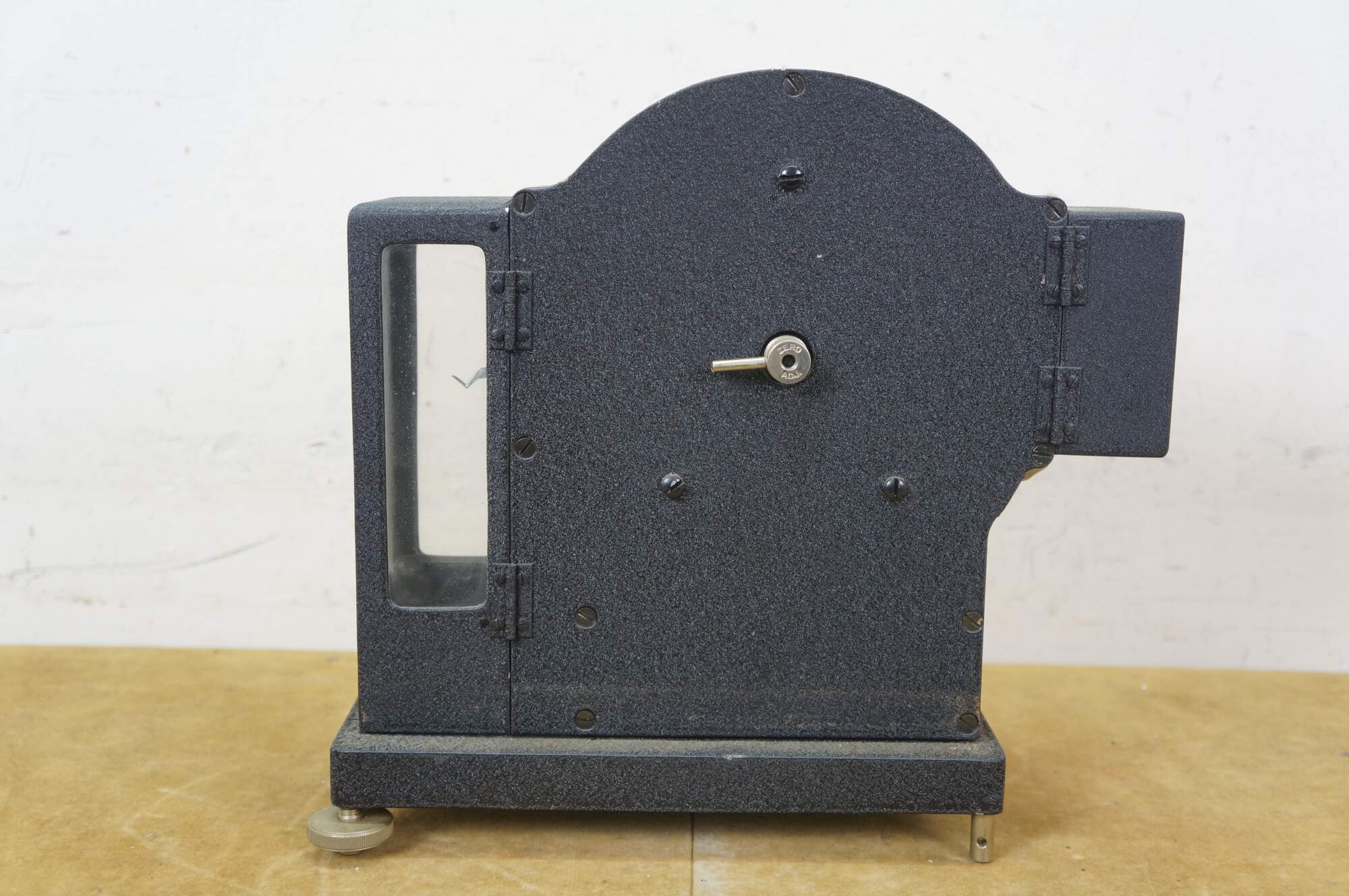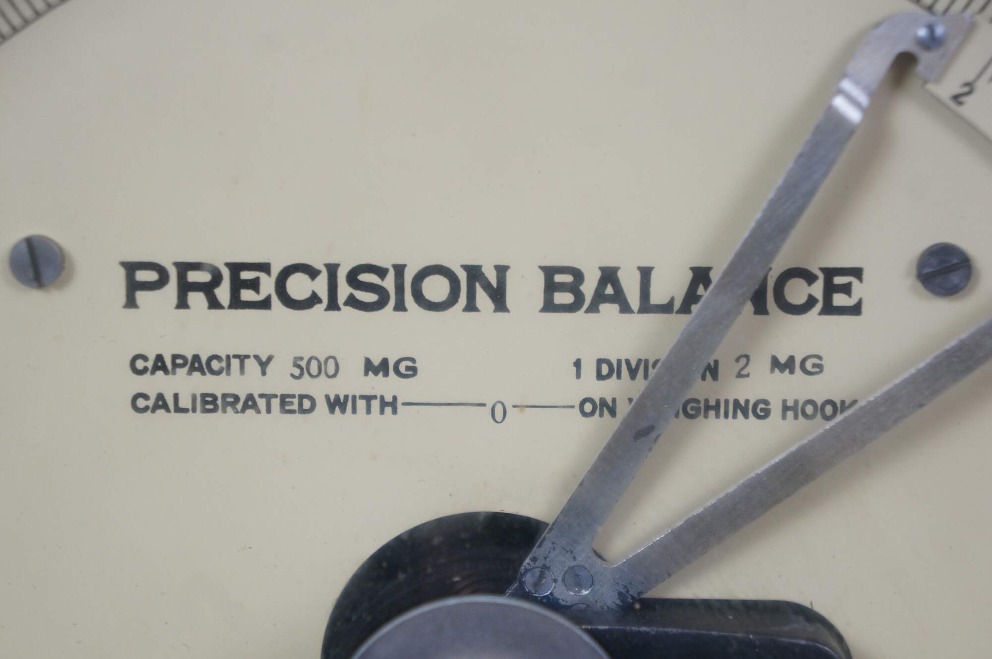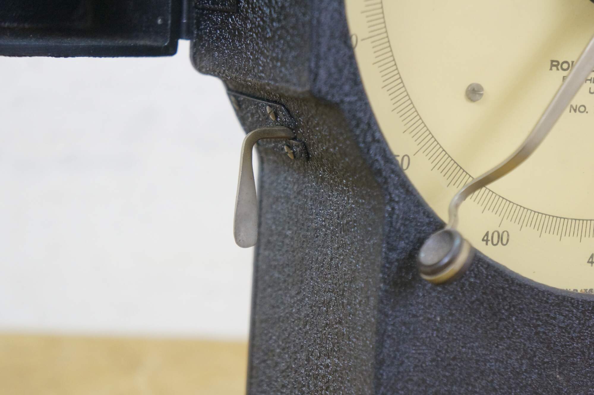 Vintage Roller-Smith precision laboratory balance scale, used for weighing very small objects with high accuracy in laboratory settings. Roller-Smith Company, formerly based in Bethlehem, PA. Features a cast-iron base, a 500mg dial for reading measurements, and a mechanism for high-precision weighing. 701041.