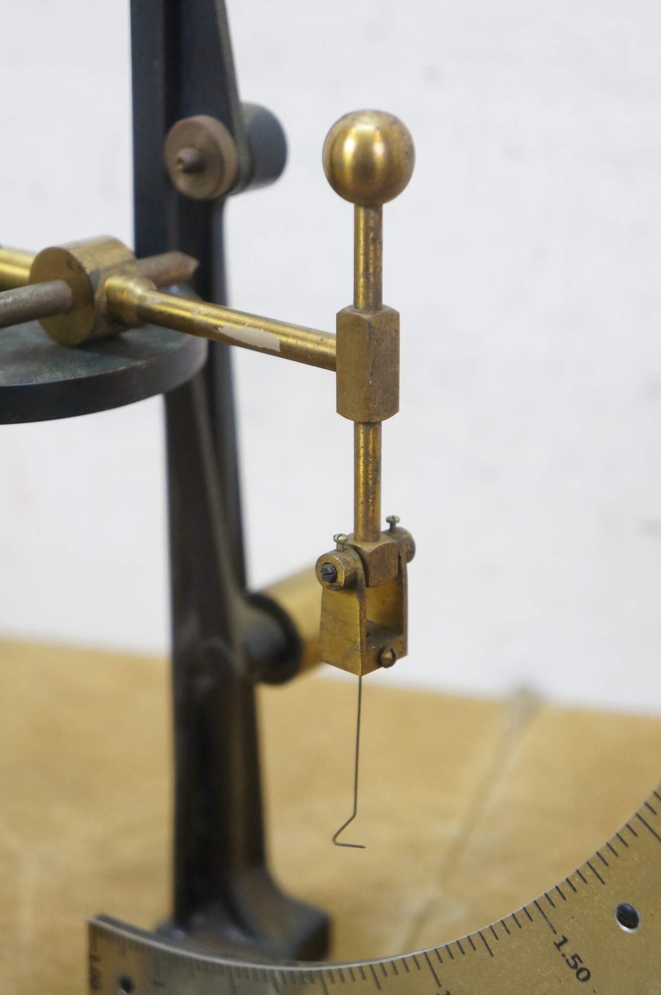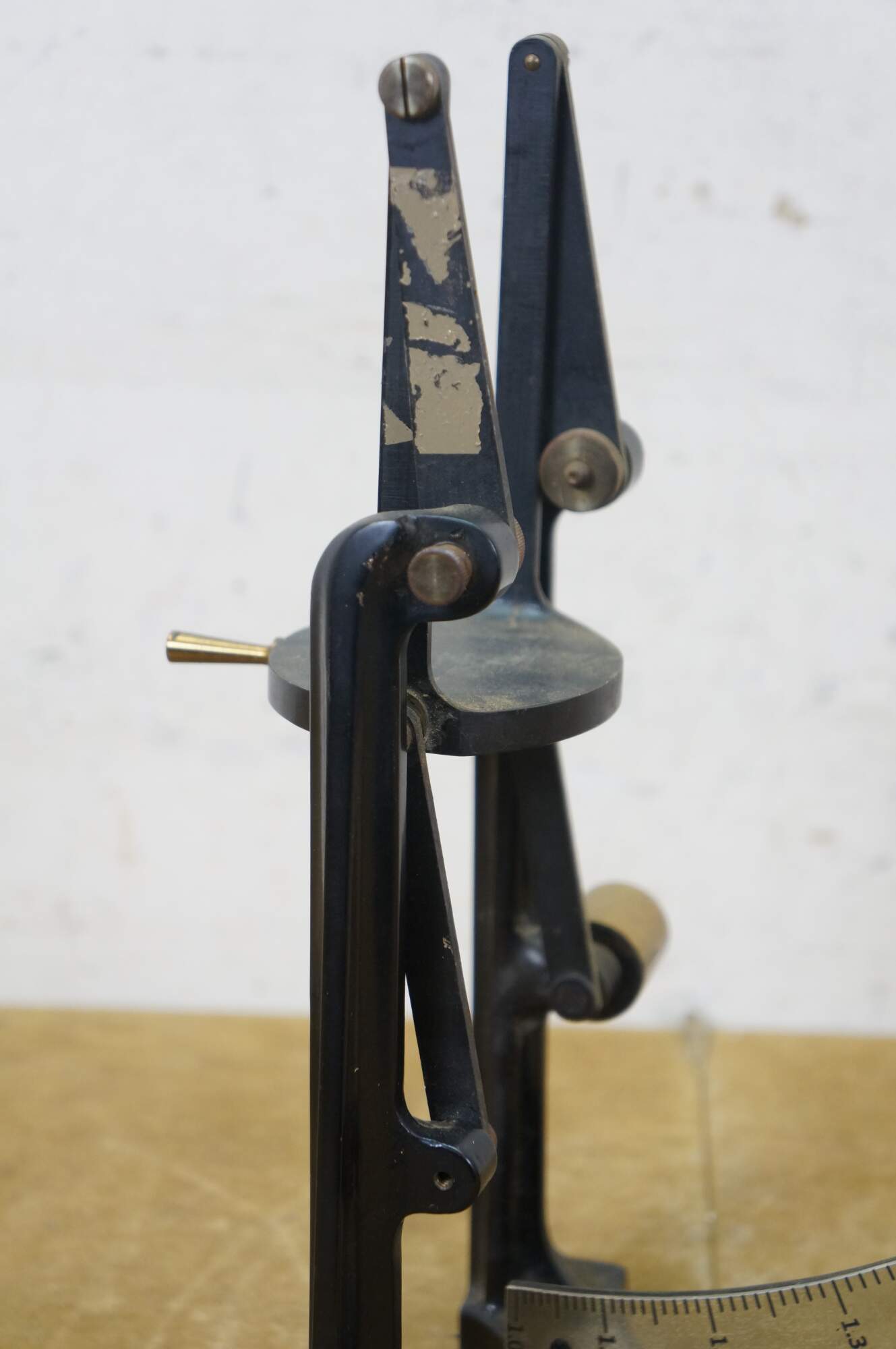 Vintage scientific laboratory measuring balance scale.
