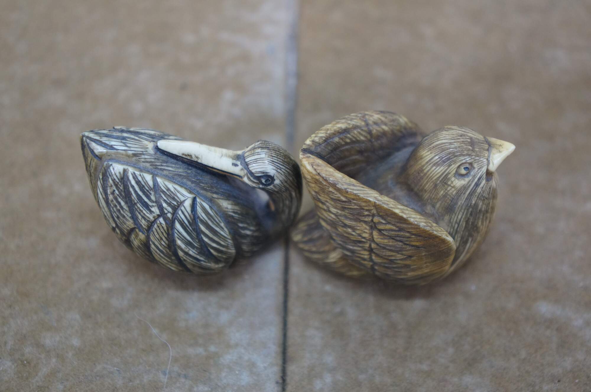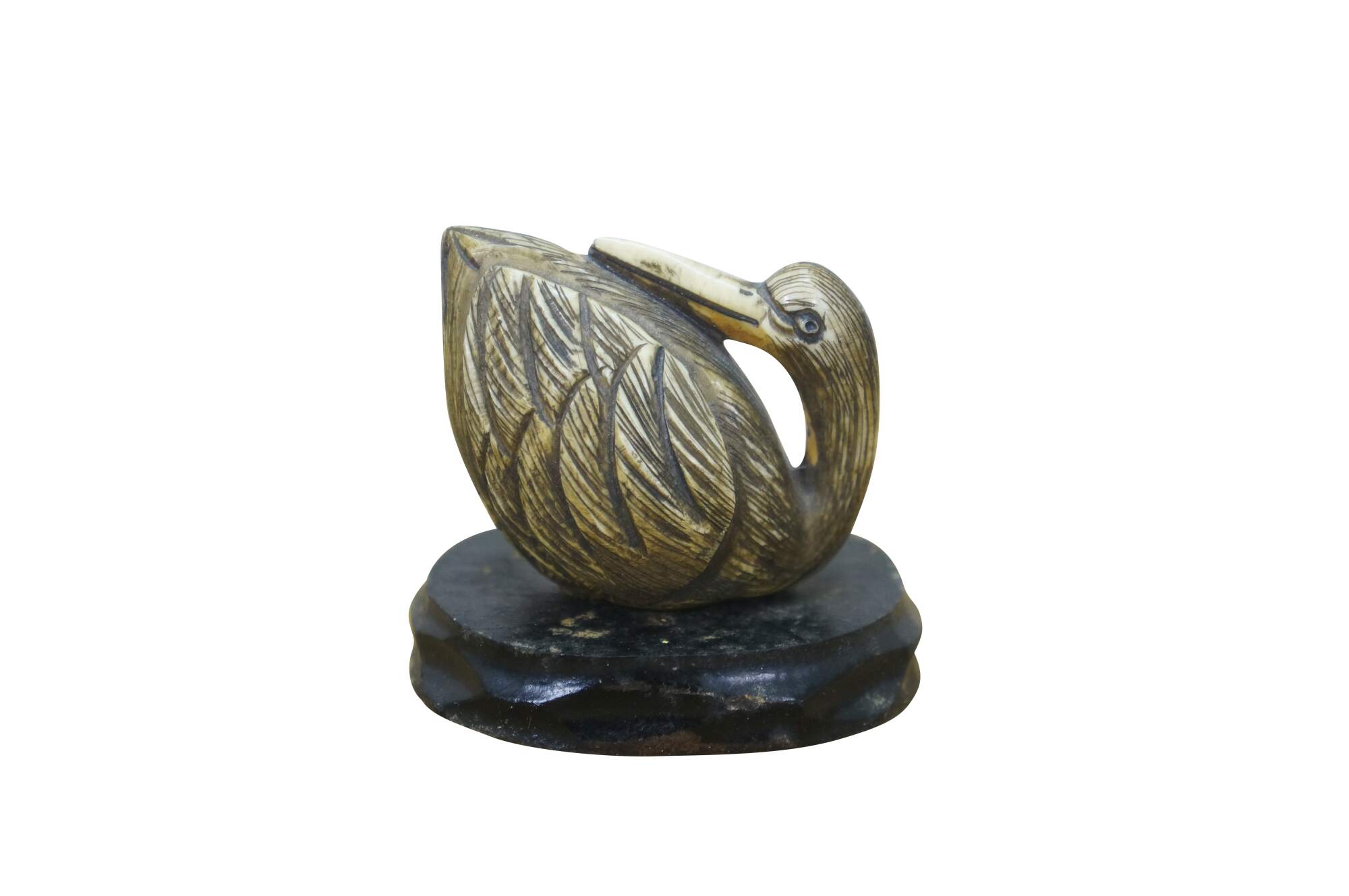 Antique Japanese Ivory Netsuke Crane / Water bird / Sparrow. Signed by artist Tamayuki on base.