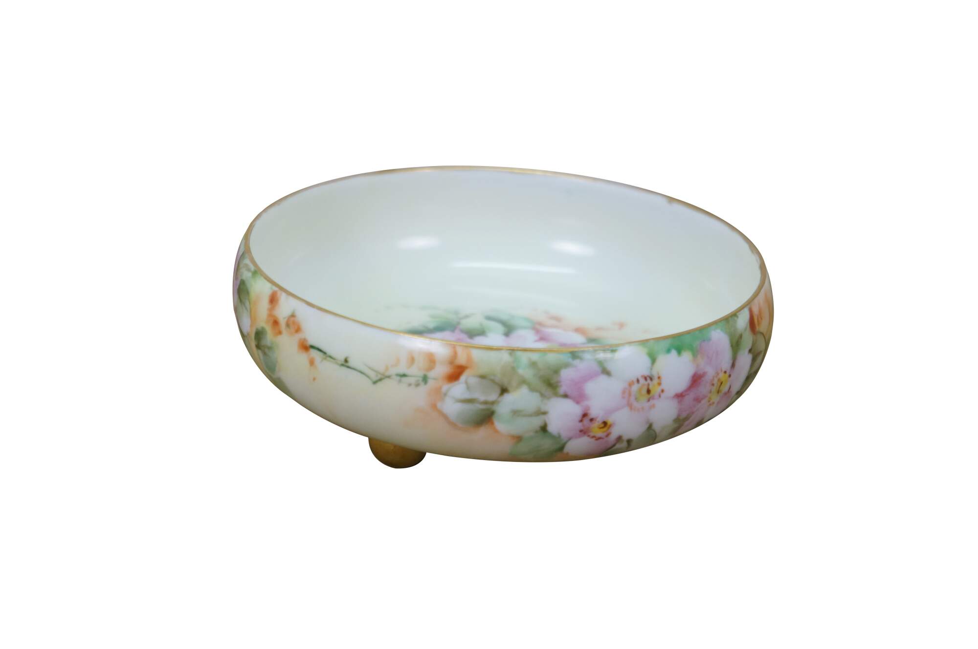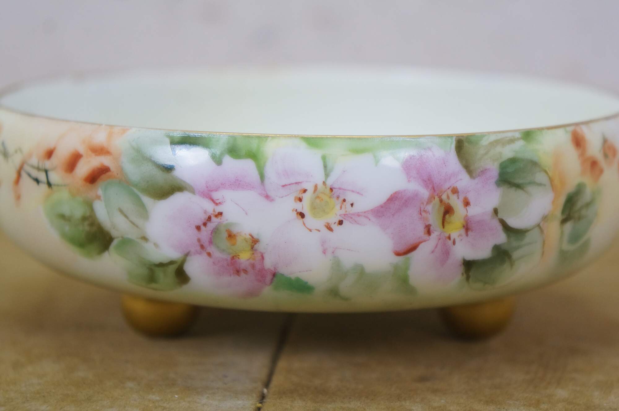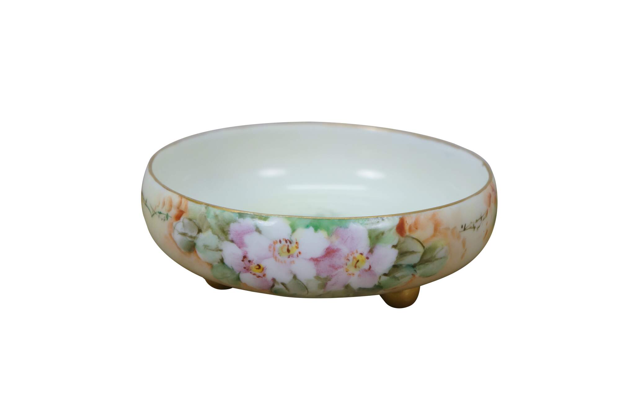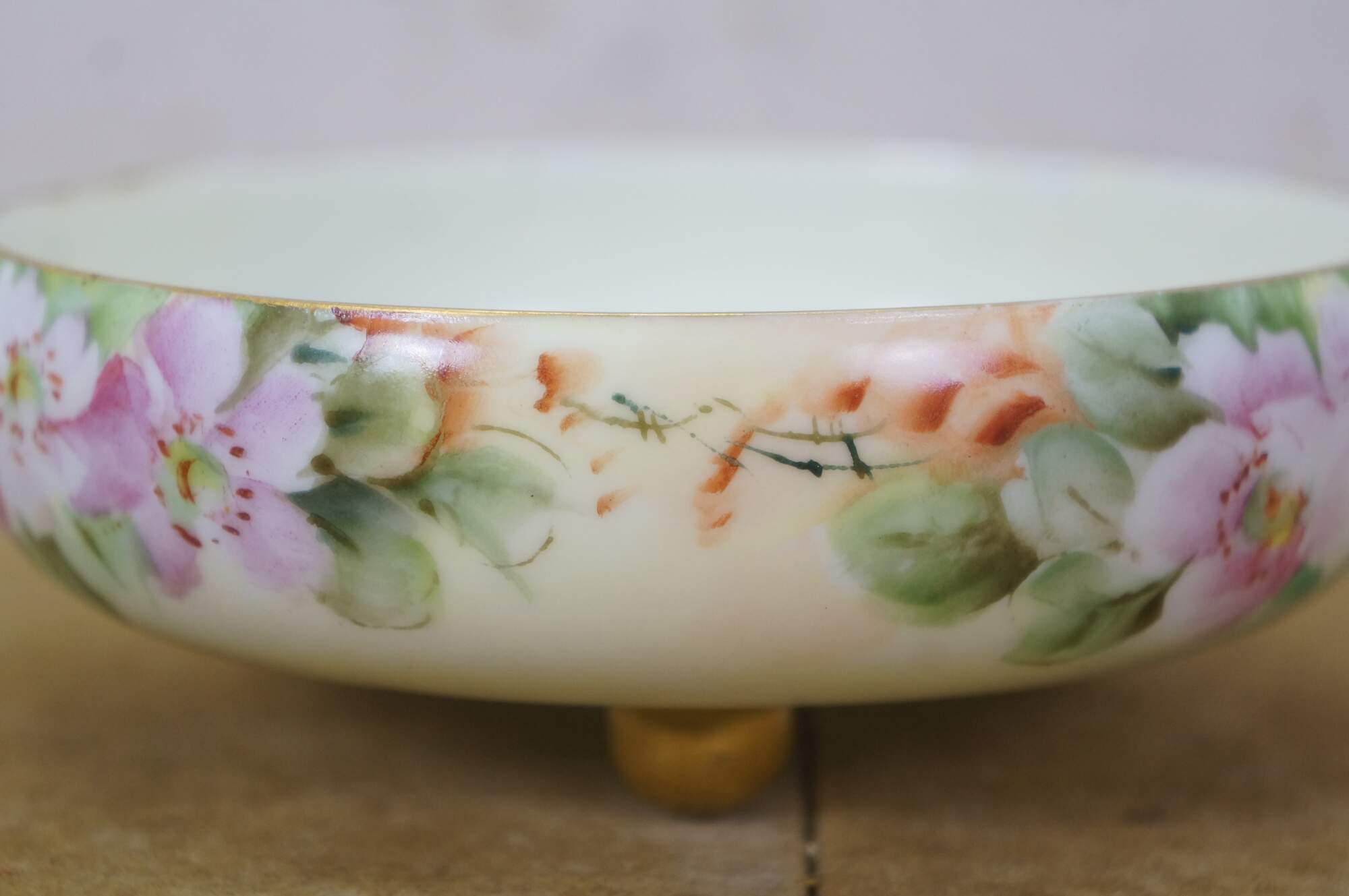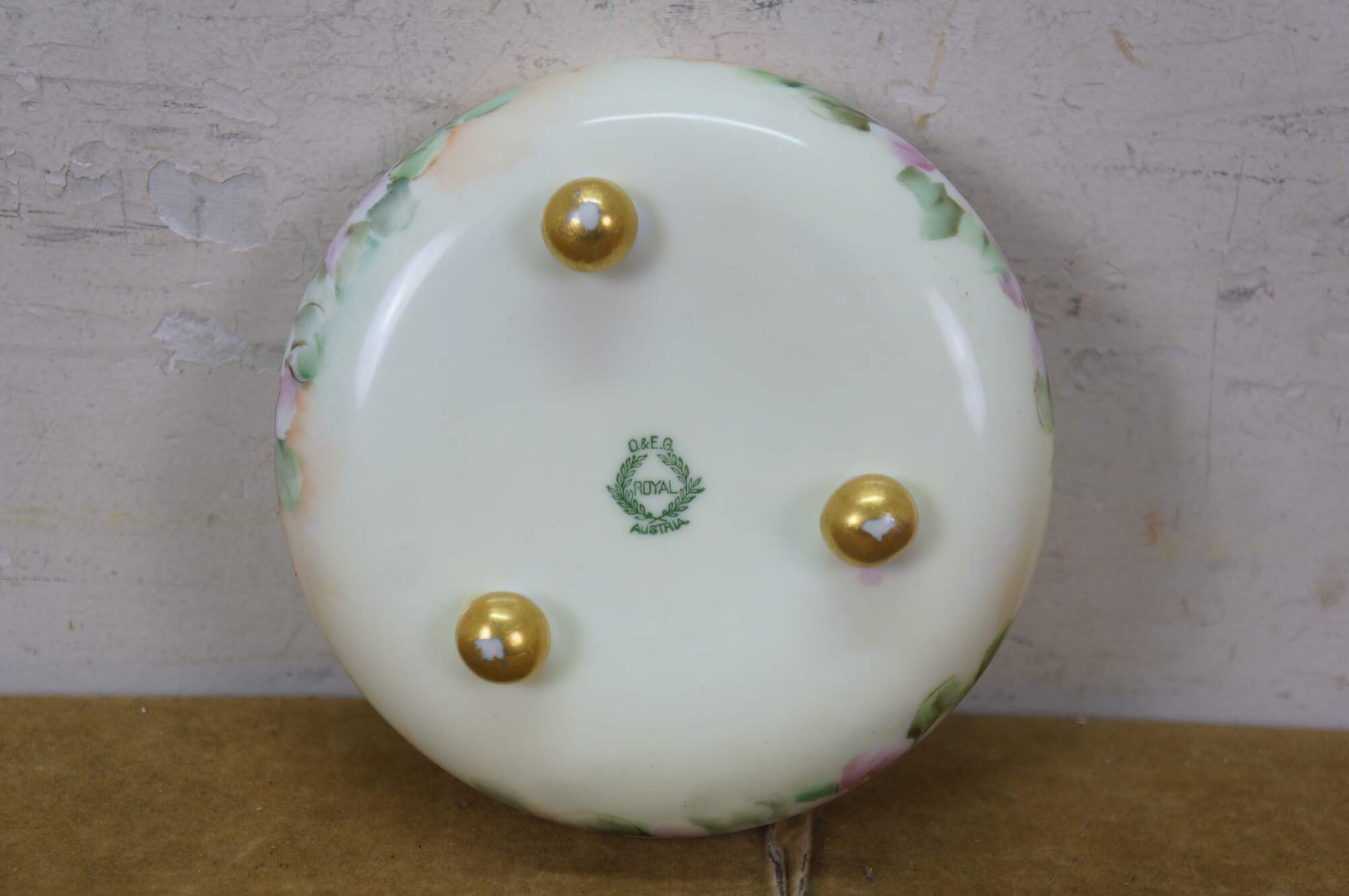 Antique O&EG Royal Austria hand painted floral porcelain footed vanity compote / key dish / change bowl.